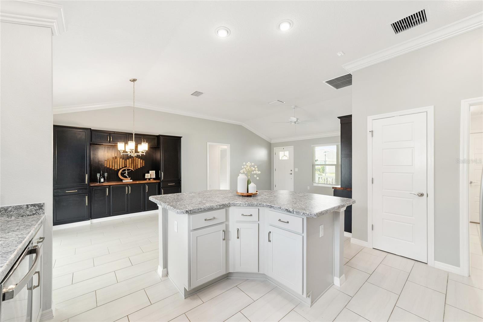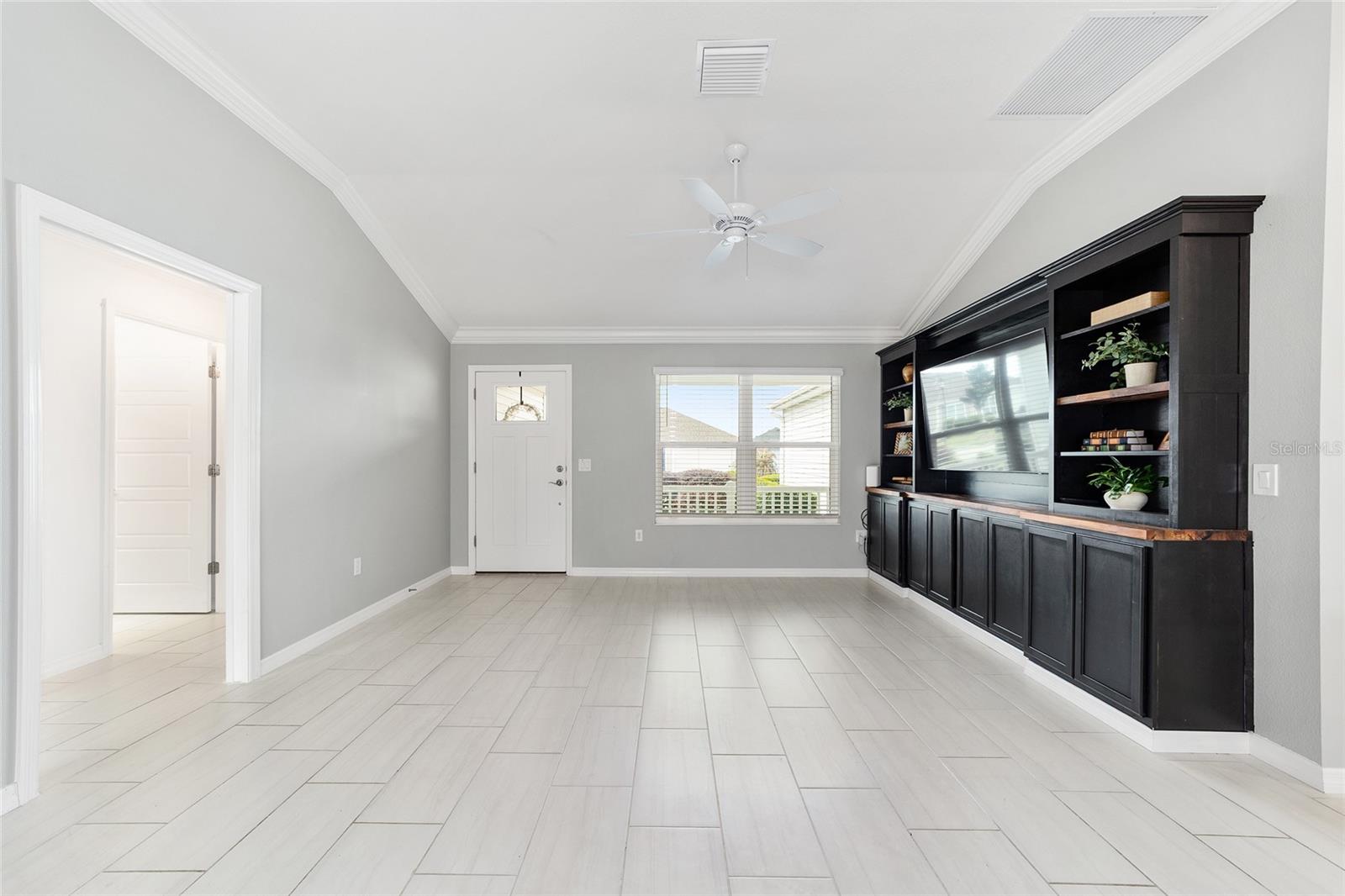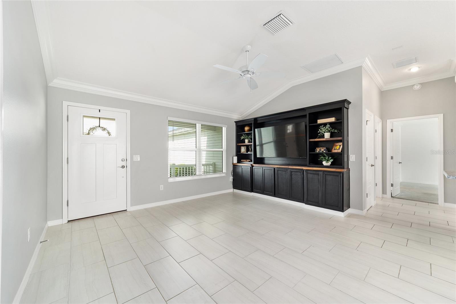 One or more photo(s) has been virtually staged. Discover this beautifully upgraded Bougainvillea model in the Village of Citrus Grove, offering a perfect blend of style, comfort, and thoughtful design. Step inside to an OPEN-CONCEPT layout enhanced with CROWN MOLDING, a spacious KITCHEN ISLAND, STAINLESS STEEL APPLIANCES, and a convenient WHOLE HOUSE FILTER AND WATER SOFTNER SYSTEM. The primary suite delivers a true spa-inspired experience, complete with a CUSTOM CLOSET SYSTEM and a serene, luxurious bathroom. CUSTOM BUILT-INS elevate the living room, dining room, and office, adding both elegance and functionality throughout the home. Enjoy peaceful mornings on the charming FRONT PORCH and added PRIVACY with a backyard that backs to a wall and ROOM FOR POOL. A GOLF CAR GARAGE provides extra convenience and storage. Located just minutes from Sawgrass Grove, you’ll have quick access to entertainment, restaurants, the Ezell Recreation Center with its sports pool, put-n-play, neighborhood pool, and the exciting new Eastport Town Square.