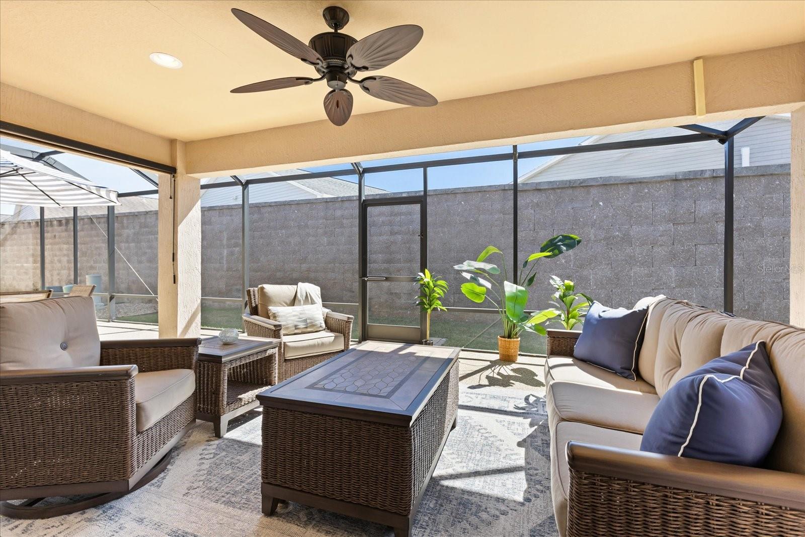 NEARLY NEW!! That is the first impression — and it only gets better from there. This exceptional 2014 JASMINE model is located in the quiet Village of Lake Deaton near highly desirable Brownwood Square, offering solid Concrete Block/Cement Finish construction, thoughtful upgrades, and meticulous care throughout. Upgraded landscaping and manicured curb appeal create a warm welcome, with pride of ownership evident inside and out. Step into a bright, open layout designed for comfortable living and effortless entertaining. The kitchen — truly the heart of the home — features stainless steel appliances, additional cherry cabinetry with under-mount lighting for generous storage, and beautifully updated quartz countertops (2025), complemented by new sinks and modern faucets (2025) in both the kitchen and baths, plus a new dishwasher (12/24). A reverse osmosis system provides purified drinking water, while the Kinetico whole-house water filtration and softener system enhances water quality throughout. The spacious primary suite offers a peaceful retreat with a large walk-in closet and an ensuite bath featuring dual sinks and a walk-in shower. A thoughtful split floor plan includes a pocket door separating the guest bedrooms for added privacy and comfort. You will love the additional light from the solar tubes located in the kitchen and in the living rooms. Outdoor living shines with the fully screened, extended lanai — the perfect space to relax and enjoy Florida’s beautiful weather. A privacy wall creates discreet outdoor living, ideal for intimate evenings and elegant entertaining, with plenty of room to add a hot tub for relaxing under the stars. The patio floors were professionally coated in 2024 with a Polyaspartic/Polyurea finish by Shark Coatings for durability and easy maintenance. The extended 24-foot garage provides ample space for vehicles, storage, or a golf cart. AN epoxy-coated garage floor adds a clean, finished look, and the motorized garage door screen allows fresh airflow while maintaining privacy — perfect for Florida living. Additional improvements include full gutters and a 2024 Roof Maxx roof treatment designed to help extend the life of the roof. Enjoy tropical resort-style living every single day!