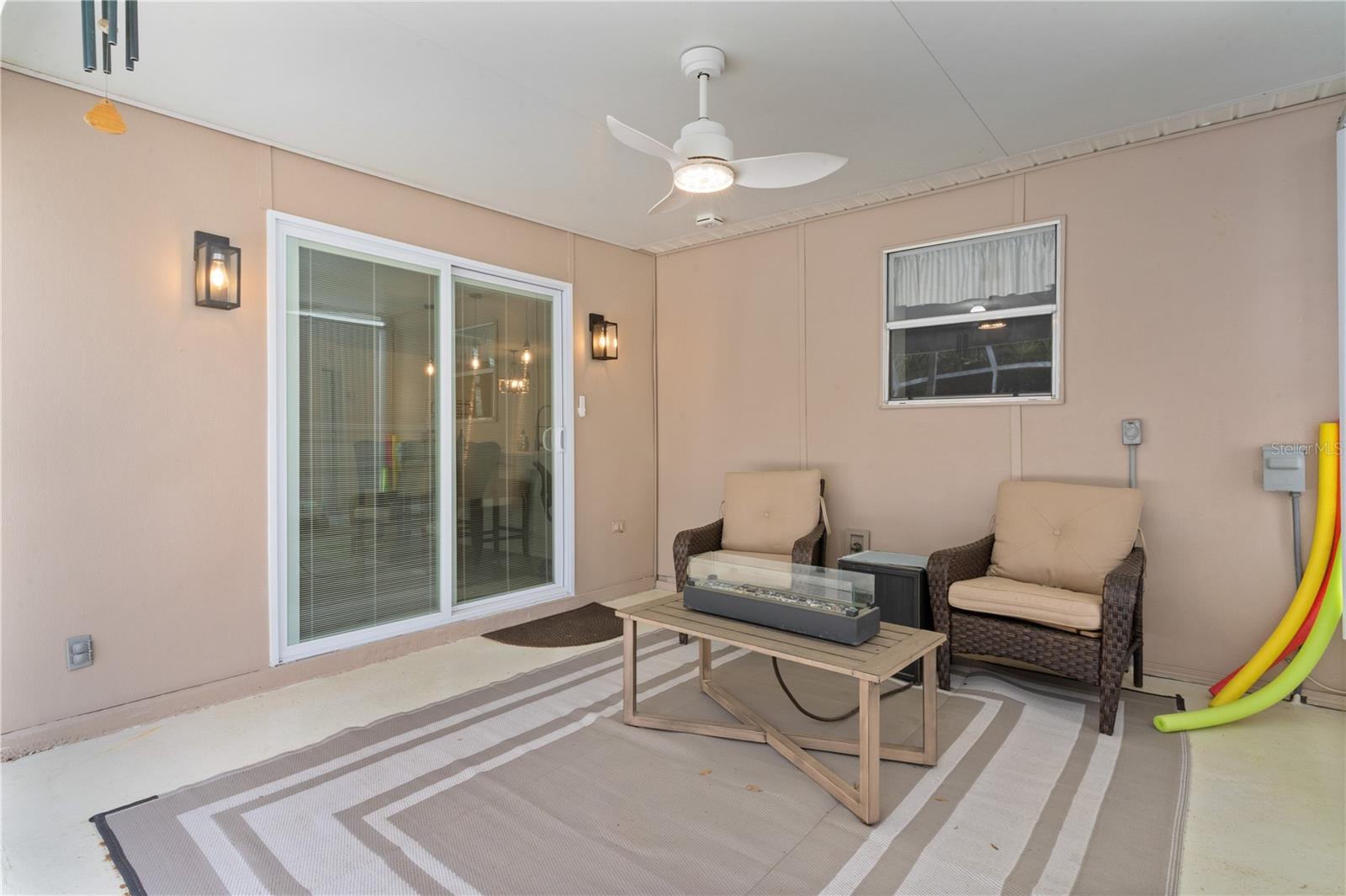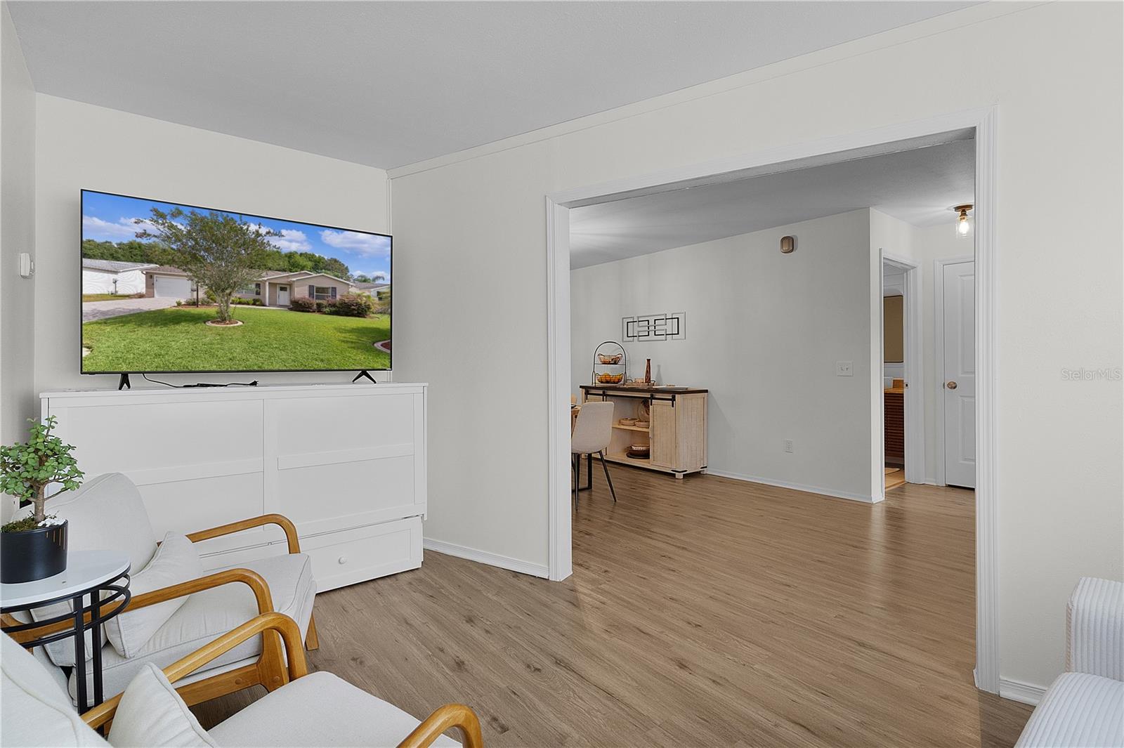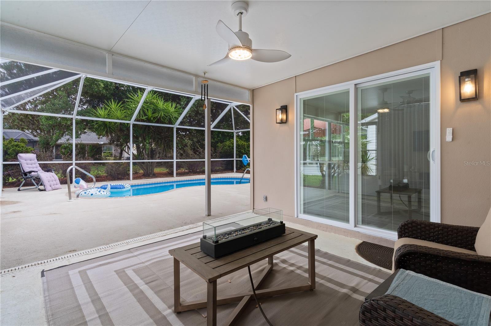 Rare 3/2 POOL HOME under $500k. NO BOND & TURNKEY (Flat Screen Smart T.V.'s Included). Newly Furnished and Decorated. Great location for Owner Occupied, 2nd Home or for Rental Income. Short cart ride to Spanish Springs (4 Minutes) or Sumter Landing (Less than 10 Minutes). NEW ROOF 2024, No Popcorn Ceilings, NEW Granite Countertops in Kitchen (10 Foot Counter with 3 Barstools) and Bathrooms, New 42 inch to the ceiling Kitchen cabinets, NEW Tile Floors in Kitchen and Bathrooms, NEW Luxury Vinyl Plank Flooring throughout, Master has NEW Tile surround with Sliding Doors, NEW Sliding Doors to the Lanai, NEW Living Room Windows overlooking the Pool that is Screen Enclosed (Birdcage) and freshly resurfaced Pool Deck. New Pool Electric Heater 2026Exterior painted 2024, Paver Driveway and upgraded Landscaping.