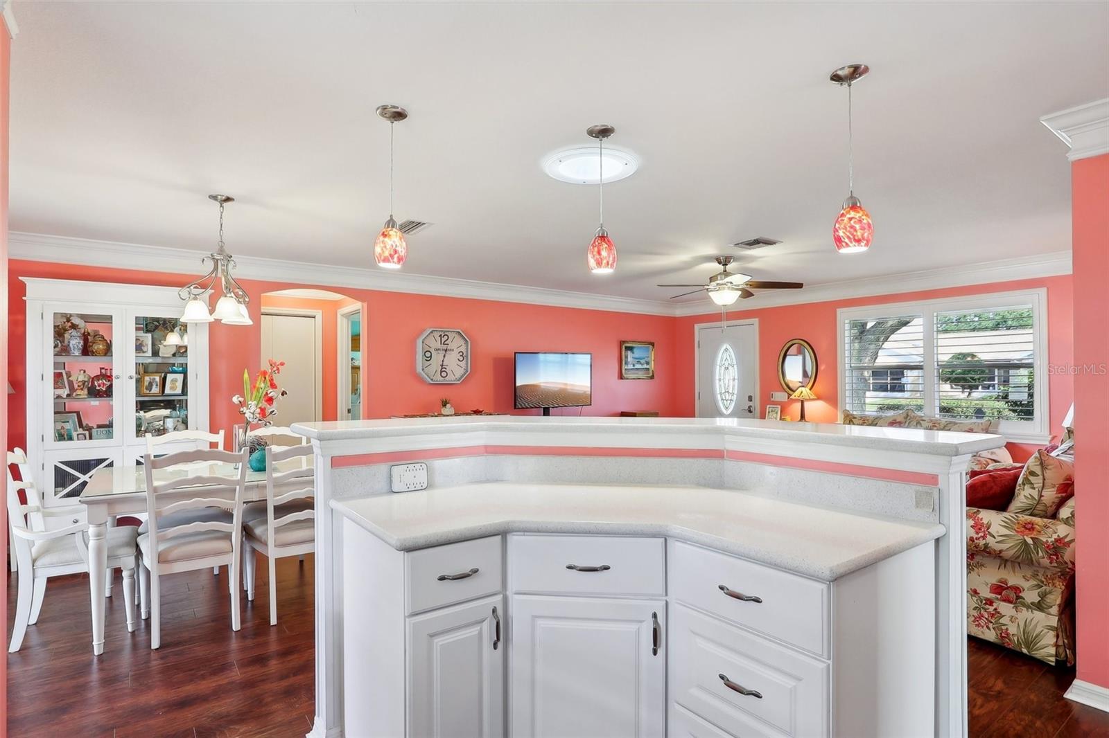 Motivated Sellers!!! SELLERS SAID SELL!!! Welcome to your dream retreat in The Villages! This beautifully remodeled 2-bedroom, 2-bathroom home in the premier 55+ community in Mira Mesa offers both charm and convenience. Located just minutes from Spanish Springs and Sumter Landing, you’ll enjoy easy access to abundant shopping, restaurants, banks, medical facilities, and so much more. Nearby, the Mira Mesa pool offers a refreshing escape just around the corner. This area does not have a municipal bond or annual CDD maintenance fee, drastically reducing the overall cost of living in The Villages! Inside, the inviting open floor plan highlights a remodeled kitchen featuring sleek quartz countertops, new cabinetry, and stainless steel appliances. The home’s bright coastal-inspired colors and plantation shutters on each window create a vibrant, welcoming atmosphere. The master bathroom is tastefully remodeled, and crown molding throughout—including in both bathrooms—adds a refined touch. All lighting and fan fixtures have been replaced with remote-control functionality for added convenience. The spacious guest bedroom includes a walk-in closet. Additional features include engineered hardwood flooring throughout, tile in the bathrooms, and solar tubes in the kitchen and bathrooms, flooding the space with natural light. Outdoors, the painted driveway, walkway, and back patio create a custom, polished look, complemented by fencing around the front porch and rear patio. Enjoy low-maintenance living with new 6" gutters and guards, plus a G-14 garage ventilation system, insulated garage door, and a 10' Formica work countertop in the garage. Topped off with a new roof installed in 2022, this home is move-in ready for you to enjoy the vibrant lifestyle of The Villages. Don’t miss this gem in the heart of it all!