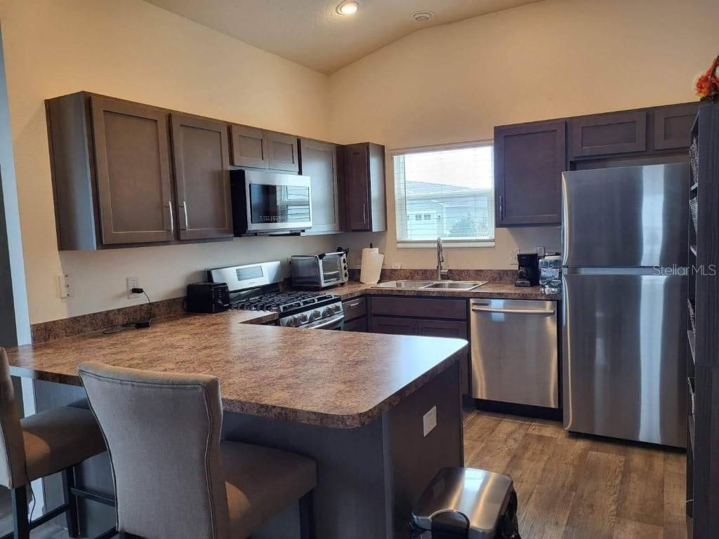 Location! location! location! Built in 2019 The Village of Monarch Grove Blake Villas. Cottage patio villa. 1.1 house. Immaculate condition. Low maintenance. All maintenance up to date. 1 mile to shopping!! golf cart available! Transferable termite bond. New lightning rods and whole house surge protectors. Whole house is lightning proof!!. New storm door, New very easy maintenance whole house water purify system, Bedroom furniture available. Sink in garage. 1.5 car garage with keypad, Like new LG appliances, Whirlpool stackable washer and dryer stays. Luxury Vinyl, Kolher taller toilet, handles in all cabinetry and light dimmer in kitchen, sprayer in shower, fans with remote and lights. New kitchen pantry. Near bike trails, trails, 2 pools in sub, tennis, pickleball, rec center...Short ride by golf cart to squares. Wall mounted bike rack. Enhanced landscaping with barkstone and edging for easy maintenance, new solar lights, sprinkler system with timer. This is better than a new house.
