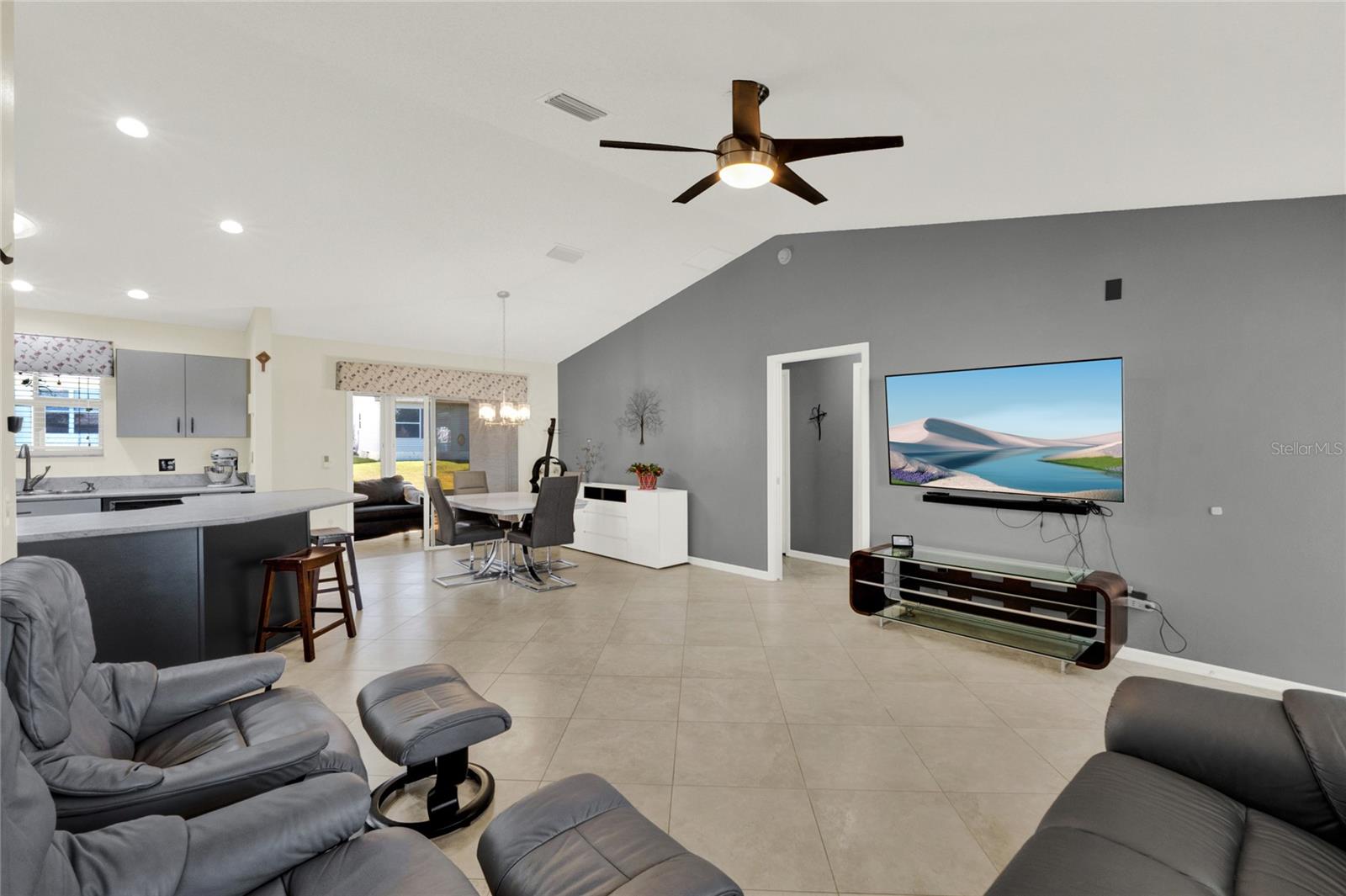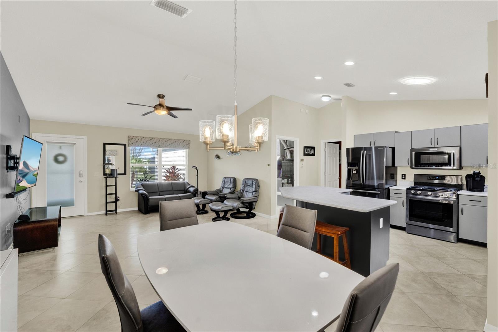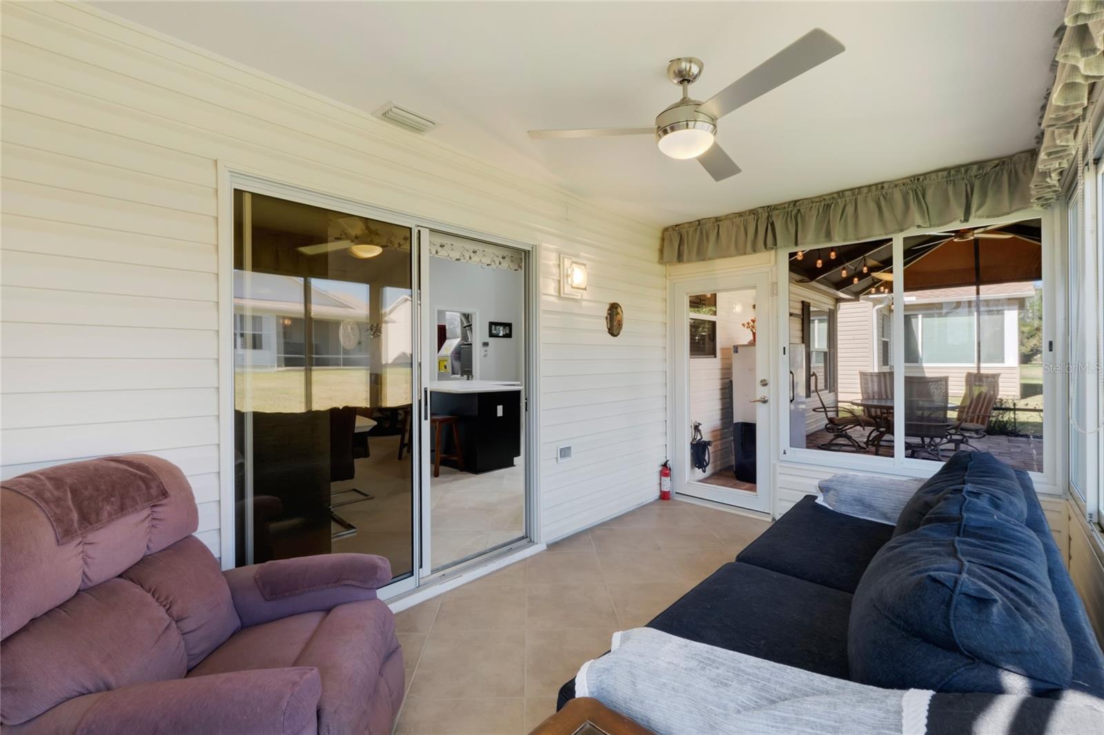 Welcome to your dream home with NO BOND, nestled in the highly sought after VILLAGE OF DUVAL! With 3 spacious bedrooms and 2 full bathrooms, this stunning AMARILLO model home has been meticulously maintained and is ready for its new owners to enjoy! Boasting over 1,500 square feet of living space, this stunning property was thoughtfully designed for comfort and convenience. 1-YEAR AMERICAN HOME SHIELD WARRANTY INCLUDED! Step inside this spacious and inviting residence and prepare to be captivated by a tastefully updated, open-concept floorplan. With stainless steel appliances and ample cabinet space, the well-appointed kitchen effortlessly connects to the adjoining dining area, fostering a seamless and inclusive environment for entertaining and everyday living. Featuring 3 solar tubes, the vaulted ceilings allow natural light to flood through the home, creating a bright and cheerful atmosphere. Showcasing a delightful combination of coziness and practicality, this exceptional property offers beautiful ceramic tile flooring throughout the entire home, enhancing its natural radiance. The free-flowing living and dining area provides the perfect space for hosting gatherings or unwinding after a long day. From the living area to the fully enclosed lanai, prepare to fall in love with the warm and welcoming atmosphere in the outdoor oasis. The oversized birdcage with a canvas cover invites you and your loved ones to relax outdoors, regardless of the elements. Boasting an attractive curb-appeal, a two-car garage, two recently remodeled bathrooms, a screened-in front porch, accessible features, and so much more, this exquisite home is the perfect blend of timeless charm and functionality. The primary suite is a true retreat, complete with dual walk-in closets and a luxurious en-suite bathroom equipped with accessible features, and an amazing glass-enclosed shower. The split floor-plan design allows guests to have their own privacy, with direct access to the lanai from the second bedroom. Located in one of The Villages’ most desirable neighborhoods, this home is perfect for those seeking a vibrant, active lifestyle. Enjoy access to world-class amenities, golf courses, recreation centers, and social activities just moments from your doorstep. Whether you’re relaxing indoors or exploring the community, this home offers the ideal balance of style, convenience, and fun. Don’t miss the opportunity to make this home yours! Schedule a showing today and experience all this home and The Villages lifestyle have to offer.