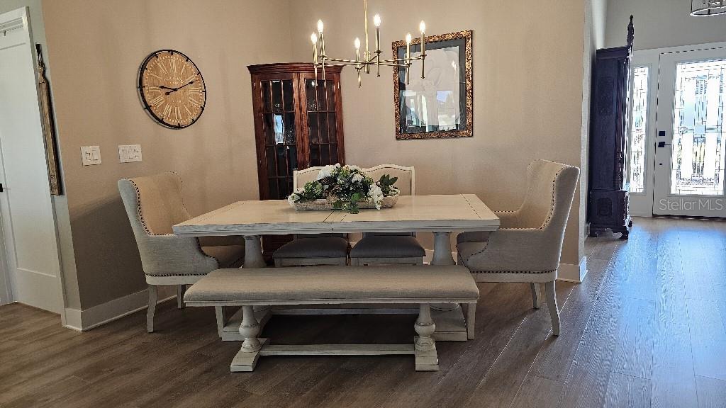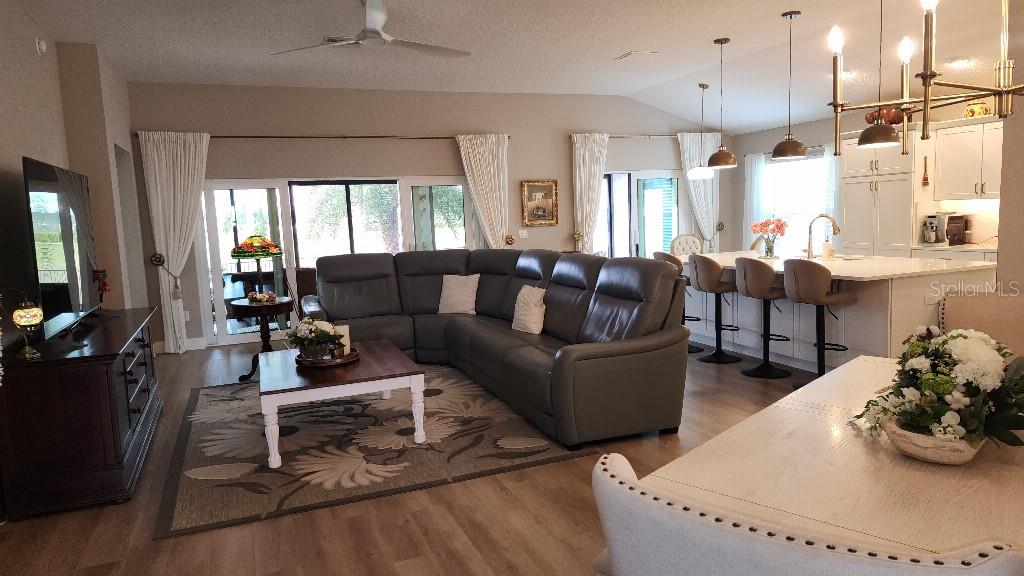 Golf Course View! Don't miss out on this gorgeous Veranda (3 Bed, 3 Bath) - Isabella with 2 primary suites with 3 full bathrooms. Located in The Village of Moultrie Creek, convenient to Middleton and 1.5 miles from the new Eastport Down Town. This beautiful home greets you with enhanced landscaping, glass entry door & sidelights & grand foyer. Champagne Gold fixtures throughout the home. Luxury Vinyl Plank throughout the entire home - No carpet. You will love the large island kitchen with storage cabinets, roll out trays, a pantry cabinet, all accented with quartz counters & stainless-steel appliances. Updated Induction Range. The primary suite has a tray ceiling, dual sinks, a custom closet & a tiled walk-in Roman shower. The front guest wing boasts a pocket door for privacy & features a tiled step-in shower & a walk-in closet. The 3rd bedroom also has a separate guest bath with a tub/shower combo. The 2 car plus golf car garage floor is epoxied & includes a whole home water filtration. The garage has storage container built inns. The fenced backyard is perfect for those pet lovers & even has room for a large pool. This is a great home in a great location. Pool shown is a conceptual rendering for illustration purposes only and does not represnt an existing structure.