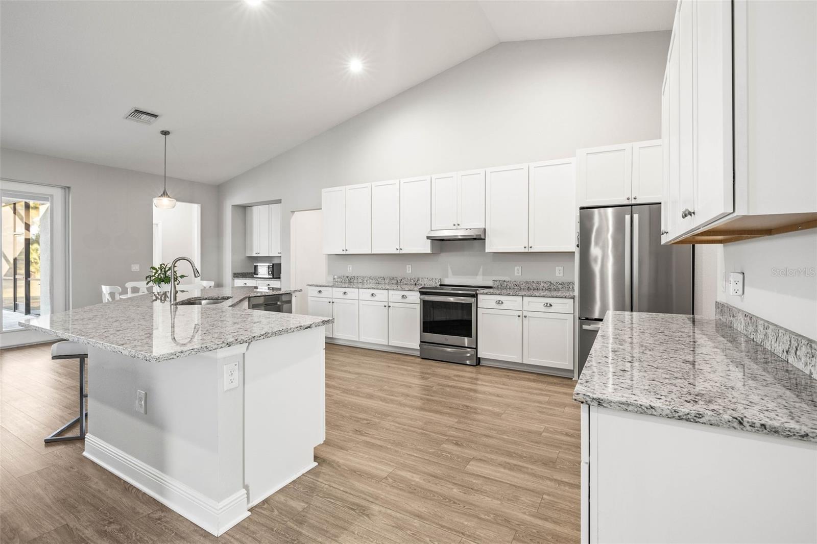 One or more photo(s) has been virtually staged. Welcome to this breathtaking POOL HOME in Thonotosassa, thoughtfully crafted in 2022 to offer luxurious living, versatile spaces, and exclusive access to Lake Thonotosassa—an 839-acre ski lake and the largest natural lake in Hillsborough County. As you enter through the grand foyer, you are greeted by soaring high ceilings and an abundance of natural light that seamlessly flows into the OPEN-CONCEPT living room, kitchen, and dining areas. Adorned with luxury vinyl plank flooring throughout the common areas, with no steps. The bright white kitchen is a chef’s dream, with an INDUCTION COOKTOP. This highlight of the home also features gleaming GRANITE COUNTERTOPS, a massive center island perfect for meal preparation, casual dining, and entertaining, and an abundance of cabinetry. Two pantry closets provide even more storage space, ensuring everything has its place. The adjacent living room is both cozy and elegant, with an electric fireplace as the centerpiece. FRENCH DOORS open directly to the SCREENED-IN PATIO and sparkling in-ground HEATED POOL, creating an ideal space for relaxation and hosting gatherings. A versatile, separate family room offers endless opportunities for customization. Transform it into a movie theater, playroom, craft space, home office, or even an additional bedroom to suit your lifestyle needs. It has extra insulation to ensure movie nights or jam sessions on the drums stay within the walls. The master suite is a private retreat, boasting dramatic high tray ceilings and French doors that provide direct access to the patio and pool area. The suite includes TWO WALK-IN CLOSETS, ensuring ample storage. The ensuite bathroom is complete with a spacious WALK-IN SHOWER, bidet toilet, and double vanity with sleek finishes and granite counters. A pocket door leads to the conveniently located office, which is also accessible from the home’s entryway—a perfect setup for those who work from home. The home’s split floor plan offers privacy and functionality, with two generously sized bedrooms situated along a separate hallway. These bedrooms share a beautifully appointed full bathroom, making them ideal for family members or guests. Outside, on this 1-ACRE LOT you'll find the screened-in patio and pool area serving as the ultimate oasis, perfect for enjoying Florida’s sunshine and serene evenings. Whether you’re swimming, lounging, or dining al fresco, this outdoor space enhances the home’s appeal. The spacious land also gives room for gardening, the property is already adorned with producing fruit trees, lemon, orange, lime, grapefruit, cherry and avocado. This property offers more than just a home; it provides a lifestyle. Deeded access to Lake Thonotosassa means you can enjoy boating, fishing, water sports, and breathtaking lake views just moments away. If country living just minutes from city amenities is your search, then look no further, Flint Estates Drive has it all! New built in 2022 this CUSTOM HOME is built to outstanding guidelines and includes HURRICANE PROTECTION for all windows and doors and pool alarms for additional safety. Experience the perfect blend of modern design, luxurious amenities, and natural beauty. Don’t miss your opportunity to own this exquisite home. Schedule your private showing today!