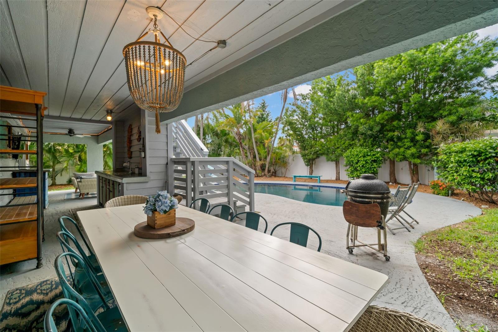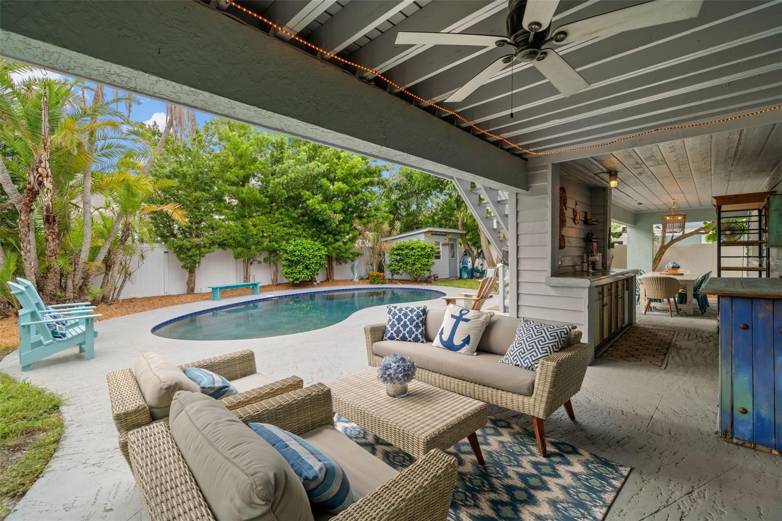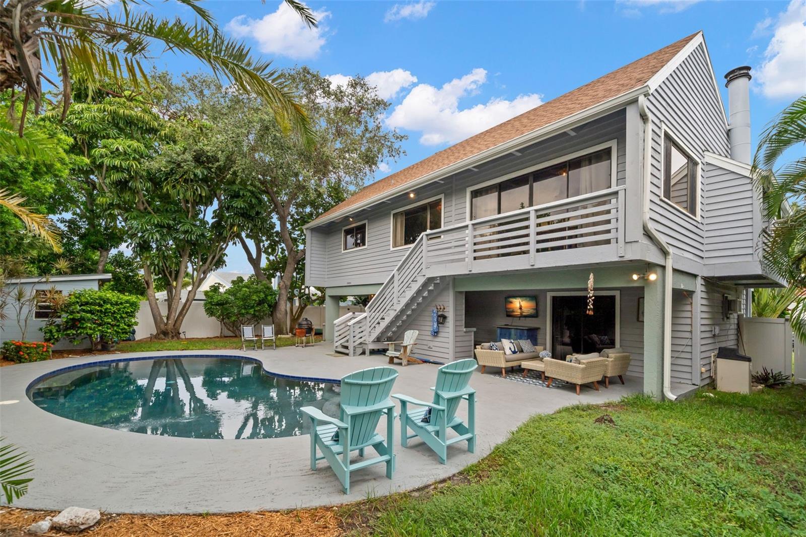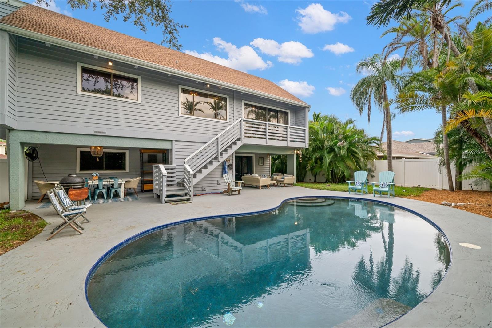 HUGE price improvement! A massive $25,000 seller incentive is being offered to the buyer to be used for updates, rate buydown, or closing costs. Experience Florida Island Living at its Finest in This Stunning High and Dry Two-Story Home in Tierra Verde. Nestled in the heart of picturesque Tierra Verde, this one-of-a-kind, two-story home is perfectly designed for comfort, privacy, and convenience. Located in a quiet neighborhood, the elevated living area provides peace of mind from potential storm waters and offers substantial savings on insurance. Step inside to an open-concept living space bathed in natural light from large windows and sliding glass doors. The main level features a spacious living room with serene views of the lush backyard and sparkling inground pool. The fully updated kitchen is a chef’s dream, featuring abundant cabinetry, a modern KitchenAid appliance package, and a large breakfast bar, perfect for family meals or entertaining. Upstairs, you’ll find two generous bedrooms, including a tranquil master suite complete with a private bath and a luxurious walk-in shower. The master bedroom has been extended with a fully permitted addition, adding even more space and comfort. On the lower level, enjoy a cozy family room, an additional bedroom, and a full bathroom—perfect for a mother-in-law suite, guest quarters, or a teen’s private retreat. The family room opens up to a covered outdoor kitchen and expansive pool deck, creating the ideal space for outdoor gatherings or soaking up the Florida sun. This home is packed with updates, including a custom gourmet kitchen with sleek white quartz countertops, wood plank flooring throughout the main level, updated interior and exterior paint, and a modern PebbleTec pool finish. The master bath and common area bath on the main level have been beautifully upgraded to evoke peace and tranquility. Ideally located just minutes from the pristine beaches of Fort De Soto, downtown St. Petersburg, and an array of shopping and dining options, this home is a rare gem. If you're looking for a relaxing, quiet island home, away from the hustle and traffic of city life, this is it! Don’t miss out on the opportunity to own this exceptional residence, ready and waiting for its new owners!