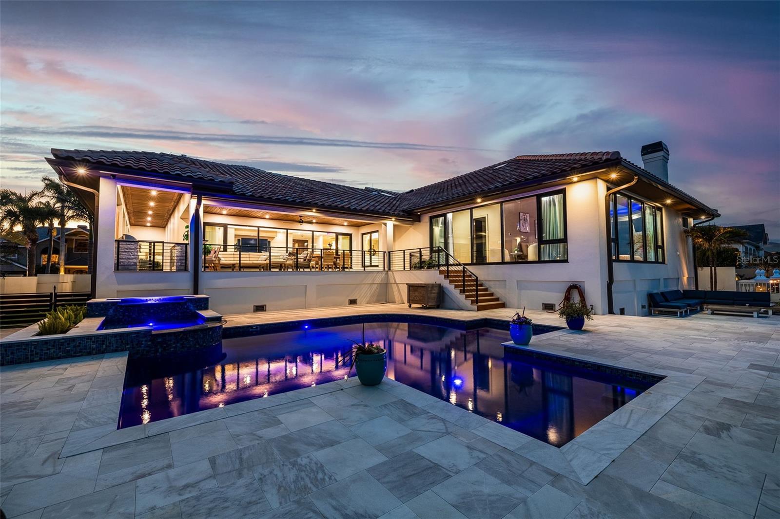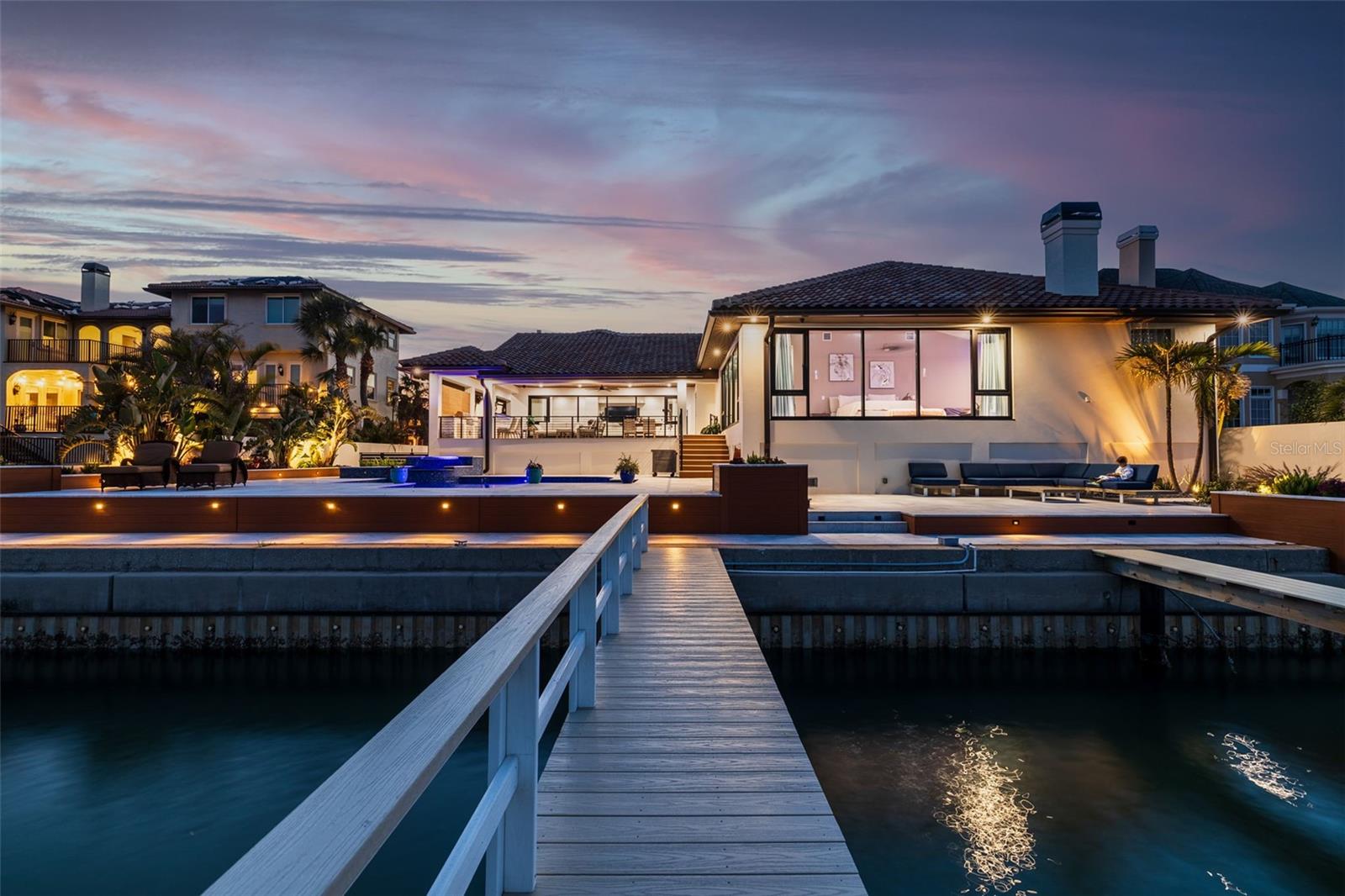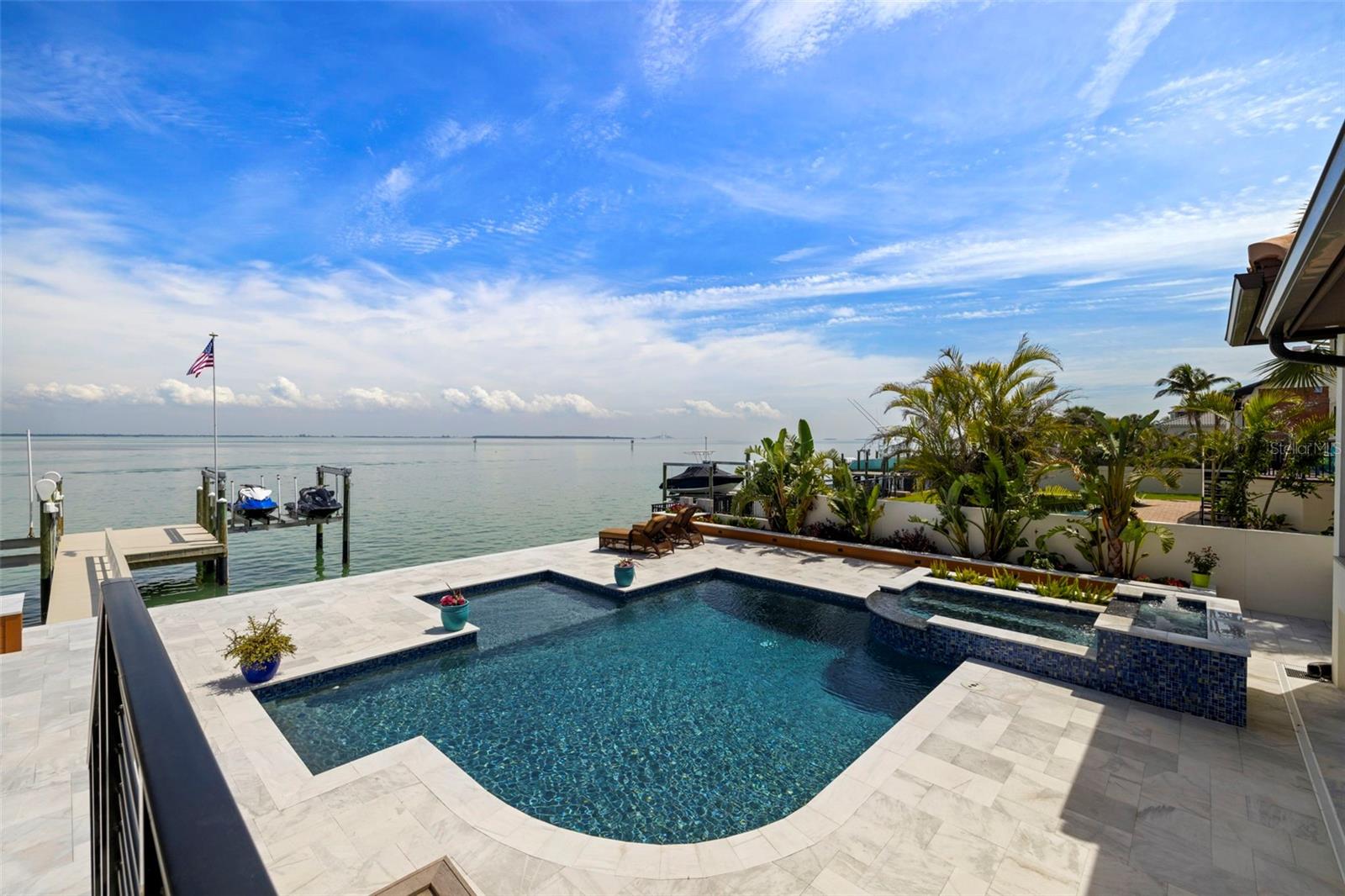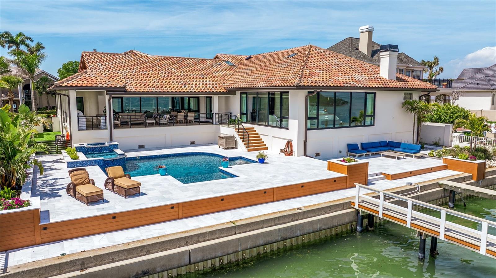 Located on one of Tierra Verde's most coveted streets, this home offers unparalleled panoramic views of the Skyway Bridge and the Downtown St. Petersburg Skyline, making it a rare gem. In 2022, a local luxury home builder undertook a complete renovation, on this as his personal residence, stripping the property down to its exterior concrete walls and replacing all upgraded wiring and panels to 400 amps, HVAC systems, ducts and thermostats, Framing with new modern layout, Spray foam Insulation, all new Plumbing, Drywall and Commercial Grade impact Windows and Doors, to meet current building codes, making it almost indistinguishable from new construction. The complete renovation was finished in early 2023. The open-concept living area seamlessly transitions to a spacious outdoor patio, perfect for entertaining guests or enjoying peaceful sunsets over the water. This home has prominent views of the skyway bridge and Downtown ST Petersburg from almost every room. As a Havensmart smart home, lighting, security, cameras, A/C, Enhanced LED lighting inside and outside, whole home audio, surround sound and in-home theatre can be controlled remotely via smartphone. Inside, the home boasts impressive ceiling heights ranging from 10 to 14 feet, a stunning 60-inch gas linear fireplace as well as 2 wood-burning fireplaces. Each room features exquisite California mahogany doors and custom cabinetry adding a touch of elegance. The completely custom kitchen is a chef's dream, equipped with top-of-the-line Thermador appliances, a professional gas Range with professional steamer, a jumbo waterfall-style custom white granite countertop, and a built-in Wolf coffee maker, and microwave drawer. The home is fully designer grade incorporating lighting, and Plumbing fixtures from Fergusson Design Gallery. The master suite acts as a private sanctuary, highlighted by floor-to-ceiling impact windows and a palatial, custom, walk-in closet complete with all your discerning custom cabinetry and display desires. The luxurious en-suite bathroom includes dual vanities, a freestanding soaking tub, and a frameless glass shower. Unwind in the new lavish pool and spa, complete with a sun shelf and outdoor LED lighting, surrounded by tropical landscaping and vibrant turfgrass. For those who love to entertain, the outdoor space includes a gourmet summer kitchen with a built-in grill, refrigerator, and ample seating, ensuring gatherings are both memorable and enjoyable. This prime location not only offers breathtaking views but also convenient access to nearby shopping, dining, and recreational activities. Additional upgrades comprise marble flooring, solid engineered hardwood flooring, along with new plumbing, insulation, electrical wiring and panels, and updated HVAC ductwork and systems. The newly constructed composite dock accommodates both a 13,000-pound and a 30,000-pound lift, featuring new electrical systems, motors, and cables. Whether you're searching for a peaceful retreat or a lively space for entertaining friends and family, this home perfectly blends elegance and comfort, making it an exceptional choice for discerning buyers. Don't let the chance to own this piece of paradise slip away, complete with every modern luxury at your fingertips.