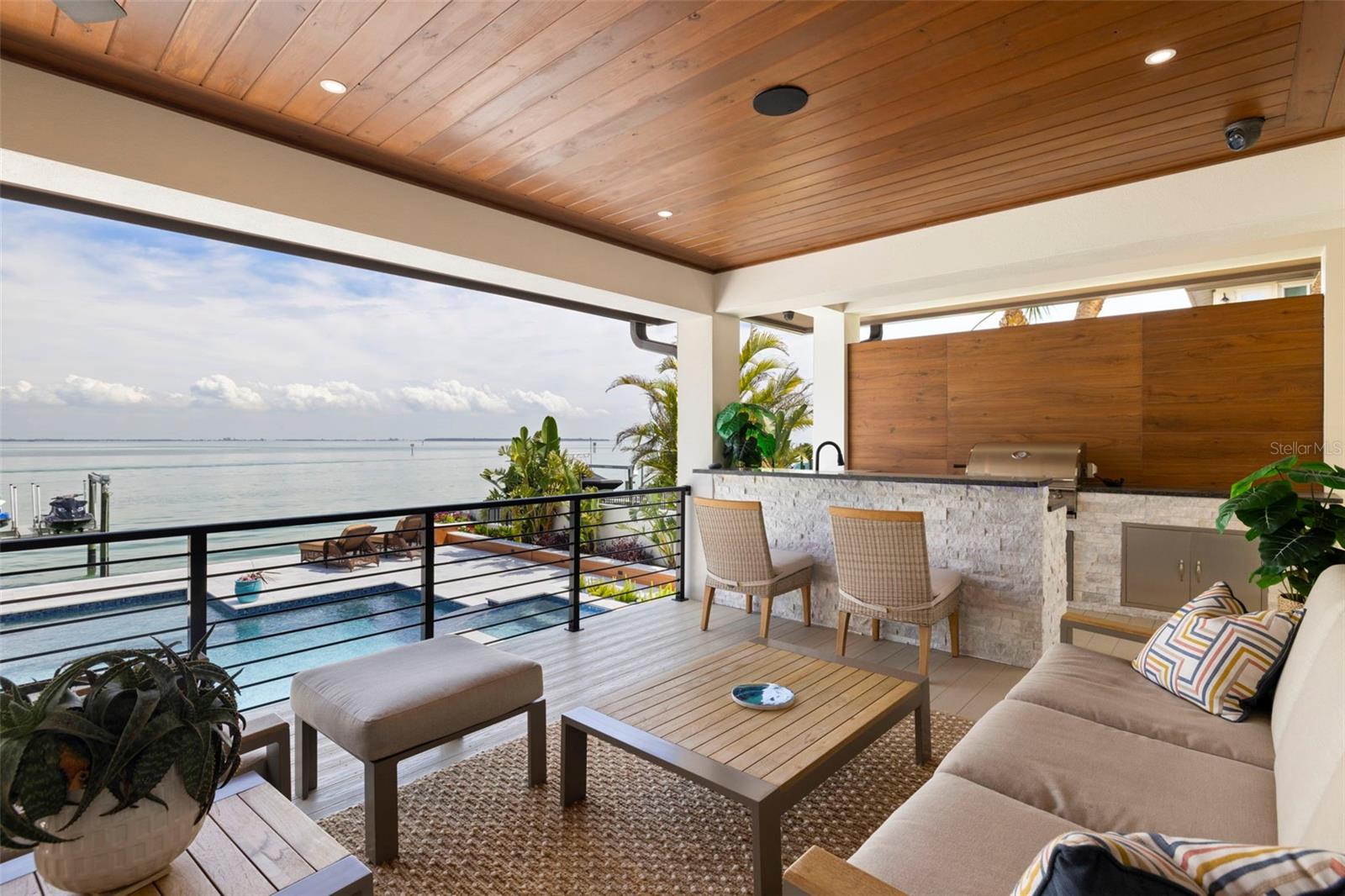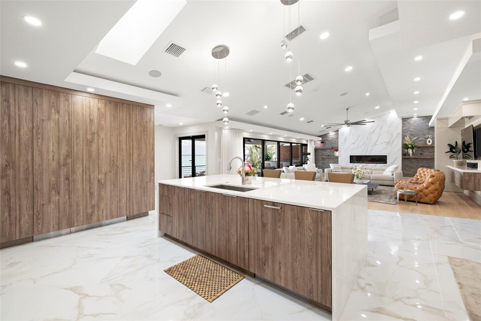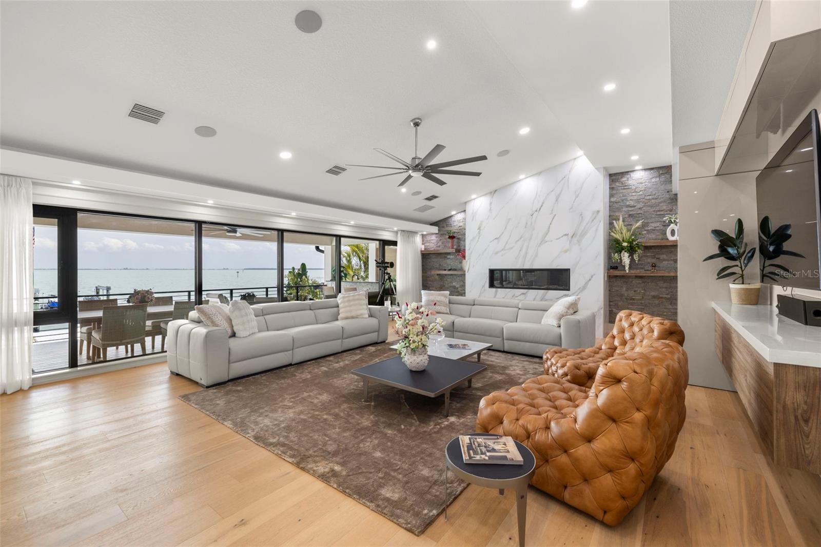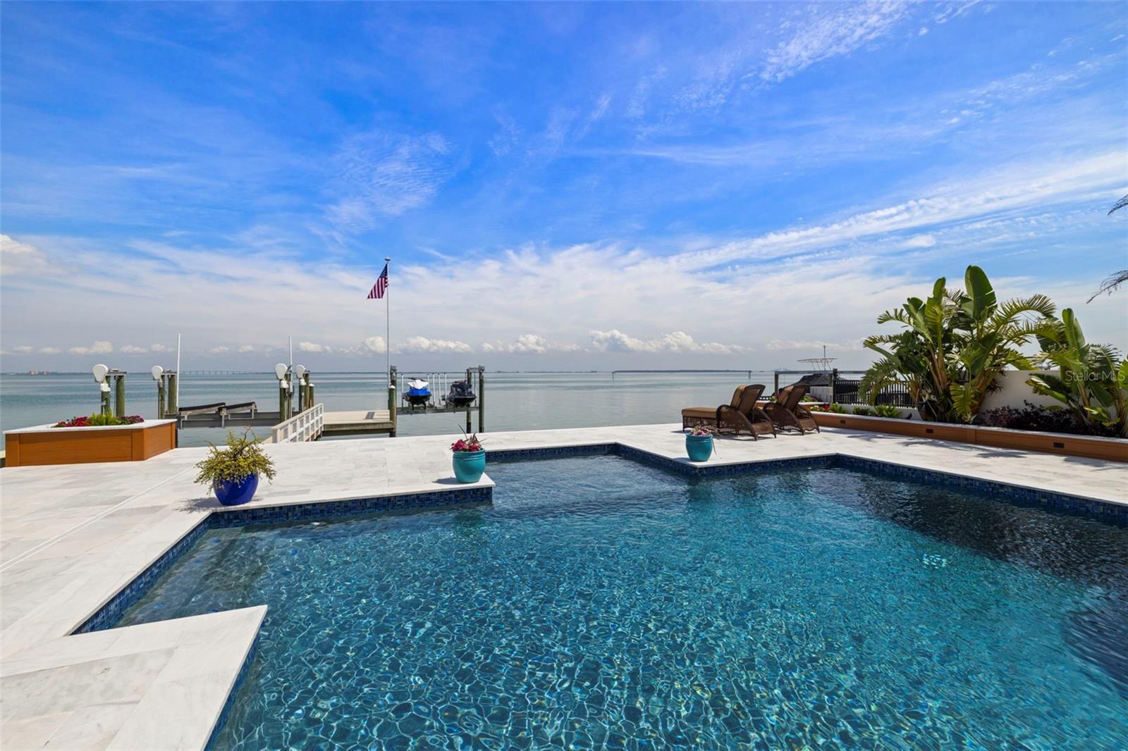 Located on one of Tierra Verde's most coveted streets, this home offers unparalleled panoramic views of the Skyway Bridge and the Downtown St. Petersburg Skyline, making it a rare gem. In 2022, a local luxury home builder undertook a complete renovation, on this as his personal residence, stripping the property down to its exterior concrete walls and replacing all upgraded wiring and panels to 400 amps, HVAC systems, ducts and thermostats, Framing with new modern layout, Spray foam Insulation, all new Plumbing, Drywall and Commercial Grade impact Windows and Doors, to meet current building codes, making it almost indistinguishable from new construction. The complete renovation was finished in early 2023. The open-concept living area seamlessly transitions to a spacious outdoor patio, perfect for entertaining guests or enjoying peaceful sunsets over the water. This home has prominent views of the skyway bridge and Downtown ST Petersburg from almost every room. As a Havensmart smart home, lighting, security, cameras, A/C, Enhanced LED lighting inside and outside, whole home audio, surround sound and in-home theatre can be controlled remotely via smartphone. Inside, the home boasts impressive ceiling heights ranging from 10 to 14 feet, a stunning 60-inch gas linear fireplace as well as 2 wood-burning fireplaces. Each room features exquisite California mahogany doors and custom cabinetry adding a touch of elegance. The completely custom kitchen is a chef's dream, equipped with top-of-the-line Thermador appliances, a professional gas Range with professional steamer, a jumbo waterfall-style custom white granite countertop, and a built-in Wolf coffee maker, and microwave drawer. The home is fully designer grade incorporating lighting, and Plumbing fixtures from Fergusson Design Gallery. The master suite acts as a private sanctuary, highlighted by floor-to-ceiling impact windows and a palatial, custom, walk-in closet complete with all your discerning custom cabinetry and display desires. The luxurious en-suite bathroom includes dual vanities, a freestanding soaking tub, and a frameless glass shower. Unwind in the new lavish pool and spa, complete with a sun shelf and outdoor LED lighting, surrounded by tropical landscaping and vibrant turfgrass. For those who love to entertain, the outdoor space includes a gourmet summer kitchen with a built-in grill, refrigerator, and ample seating, ensuring gatherings are both memorable and enjoyable. This prime location not only offers breathtaking views but also convenient access to nearby shopping, dining, and recreational activities. Additional upgrades comprise marble flooring, solid engineered hardwood flooring, along with new plumbing, insulation, electrical wiring and panels, and updated HVAC ductwork and systems. The newly constructed composite dock accommodates both a 13,000-pound and a 30,000-pound lift, featuring new electrical systems, motors, and cables. Whether you're searching for a peaceful retreat or a lively space for entertaining friends and family, this home perfectly blends elegance and comfort, making it an exceptional choice for discerning buyers. Don't let the chance to own this piece of paradise slip away, complete with every modern luxury at your fingertips.
