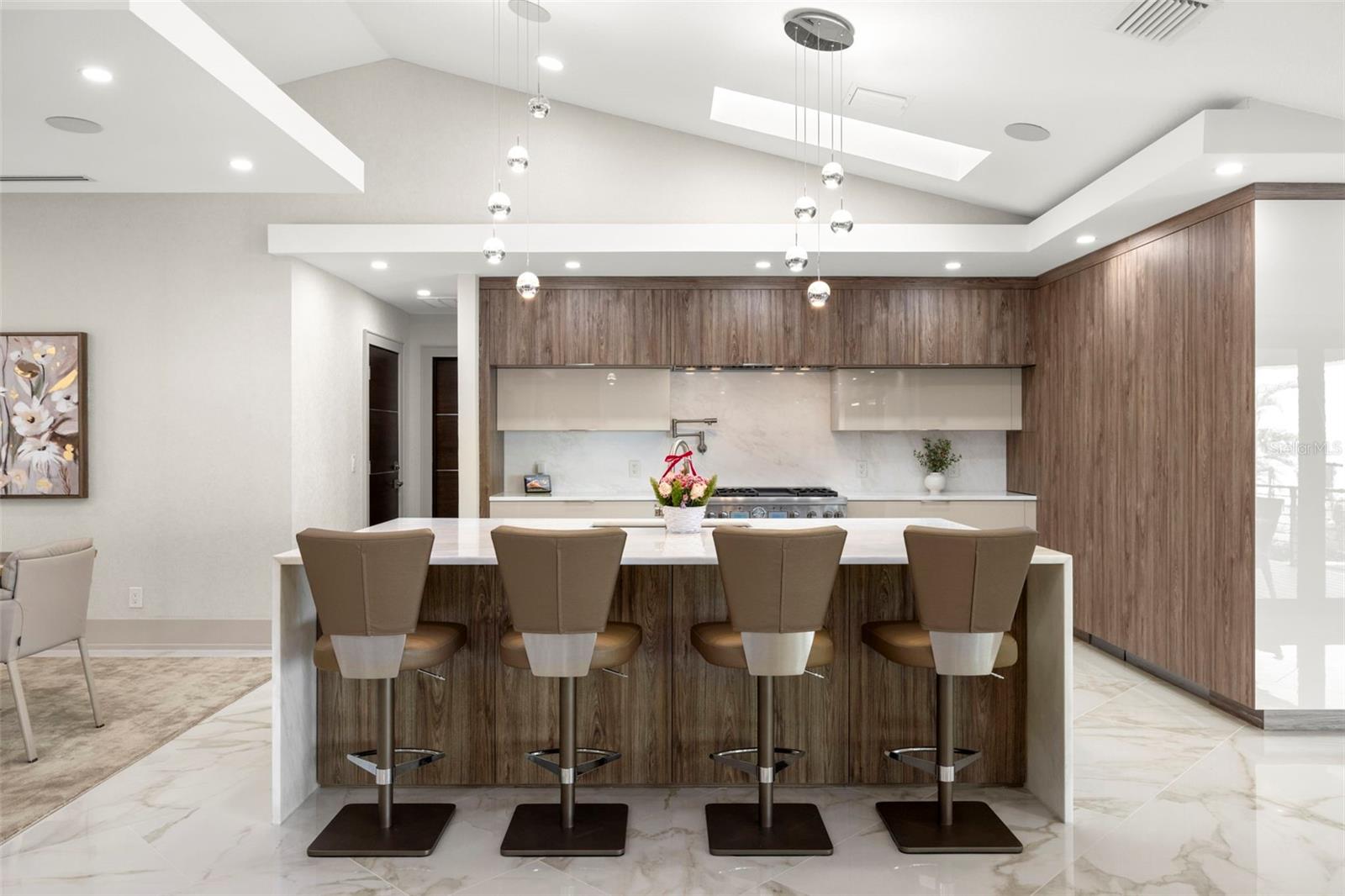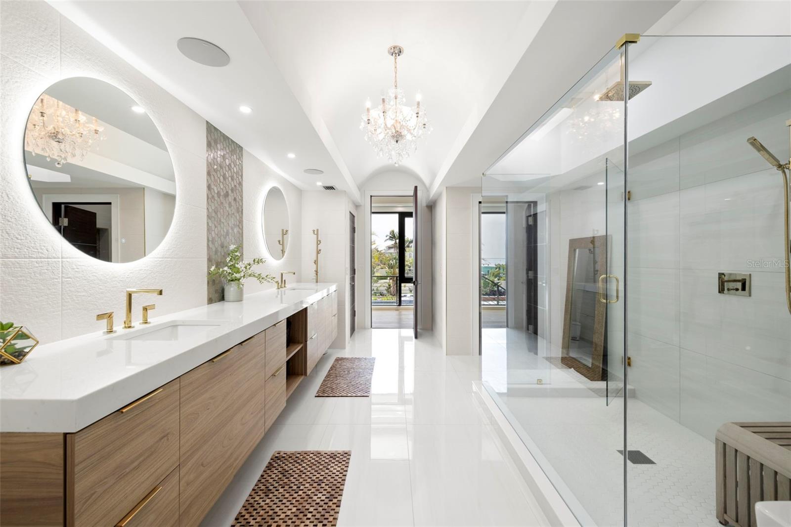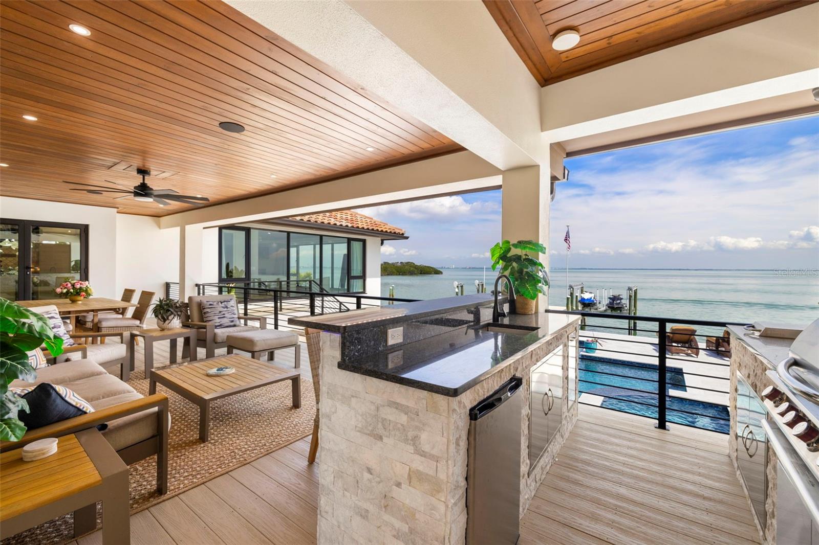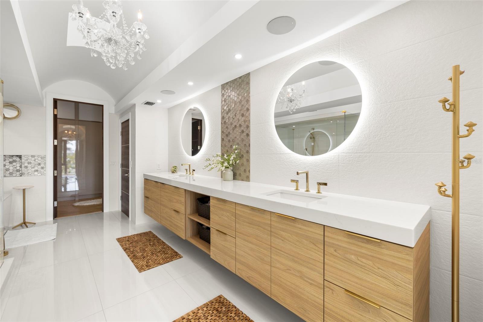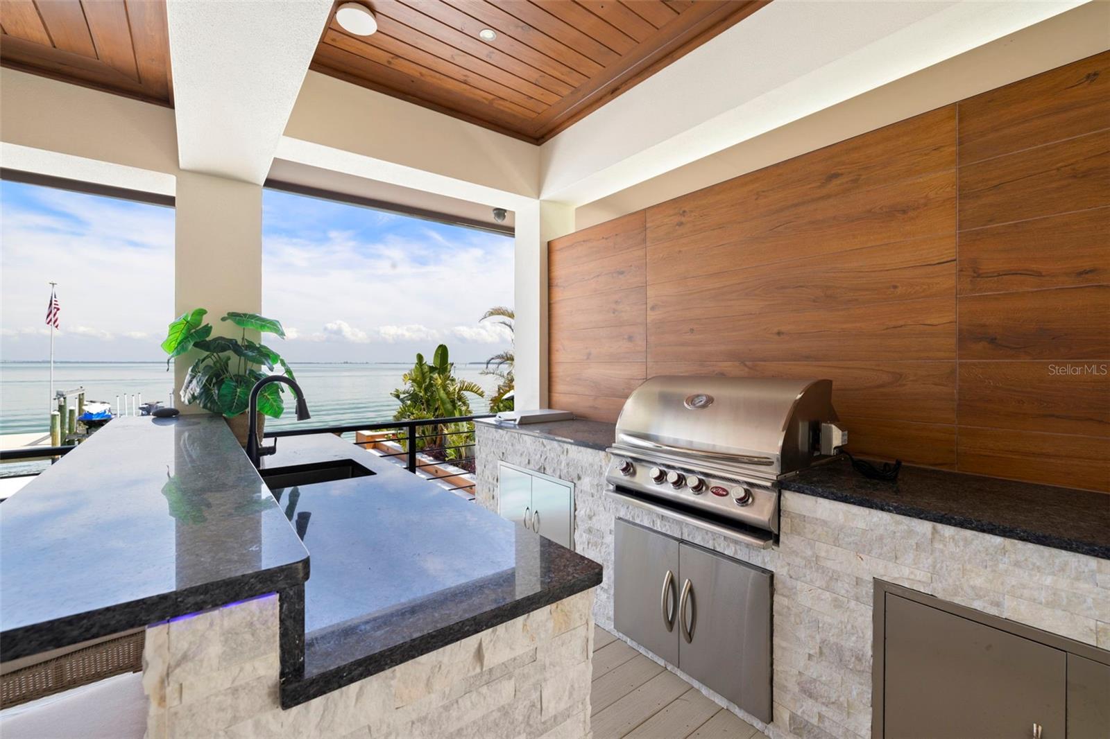 Located on one of Tierra Verde's most coveted streets, this home offers unparalleled panoramic views of the Skyway Bridge and the Downtown St. Petersburg Skyline, making it a rare gem. In 2022, a local luxury home builder undertook a complete renovation, on this as his personal residence, stripping the property down to its exterior concrete walls and replacing all upgraded wiring and panels to 400 amps, HVAC systems, ducts and thermostats, Framing with new modern layout, Spray foam Insulation, all new Plumbing, Drywall and Commercial Grade impact Windows and Doors, to meet current building codes, making it almost indistinguishable from new construction. The complete renovation was finished in early 2023. The open-concept living area seamlessly transitions to a spacious outdoor patio, perfect for entertaining guests or enjoying peaceful sunsets over the water. This home has prominent views of the skyway bridge and Downtown ST Petersburg from almost every room. As a Havensmart smart home, lighting, security, cameras, A/C, Enhanced LED lighting inside and outside, whole home audio, surround sound and in-home theatre can be controlled remotely via smartphone. Inside, the home boasts impressive ceiling heights ranging from 10 to 14 feet, a stunning 60-inch gas linear fireplace as well as 2 wood-burning fireplaces. Each room features exquisite California mahogany doors and custom cabinetry adding a touch of elegance. The completely custom kitchen is a chef's dream, equipped with top-of-the-line Thermador appliances, a professional gas Range with professional steamer, a jumbo waterfall-style custom white granite countertop, and a built-in Wolf coffee maker, and microwave drawer. The home is fully designer grade incorporating lighting, and Plumbing fixtures from Fergusson Design Gallery. The master suite acts as a private sanctuary, highlighted by floor-to-ceiling impact windows and a palatial, custom, walk-in closet complete with all your discerning custom cabinetry and display desires. The luxurious en-suite bathroom includes dual vanities, a freestanding soaking tub, and a frameless glass shower. Unwind in the new lavish pool and spa, complete with a sun shelf and outdoor LED lighting, surrounded by tropical landscaping and vibrant turfgrass. For those who love to entertain, the outdoor space includes a gourmet summer kitchen with a built-in grill, refrigerator, and ample seating, ensuring gatherings are both memorable and enjoyable. This prime location not only offers breathtaking views but also convenient access to nearby shopping, dining, and recreational activities. Additional upgrades comprise marble flooring, solid engineered hardwood flooring, along with new plumbing, insulation, electrical wiring and panels, and updated HVAC ductwork and systems. The newly constructed composite dock accommodates both a 13,000-pound and a 30,000-pound lift, featuring new electrical systems, motors, and cables. Whether you're searching for a peaceful retreat or a lively space for entertaining friends and family, this home perfectly blends elegance and comfort, making it an exceptional choice for discerning buyers. Don't let the chance to own this piece of paradise slip away, complete with every modern luxury at your fingertips.