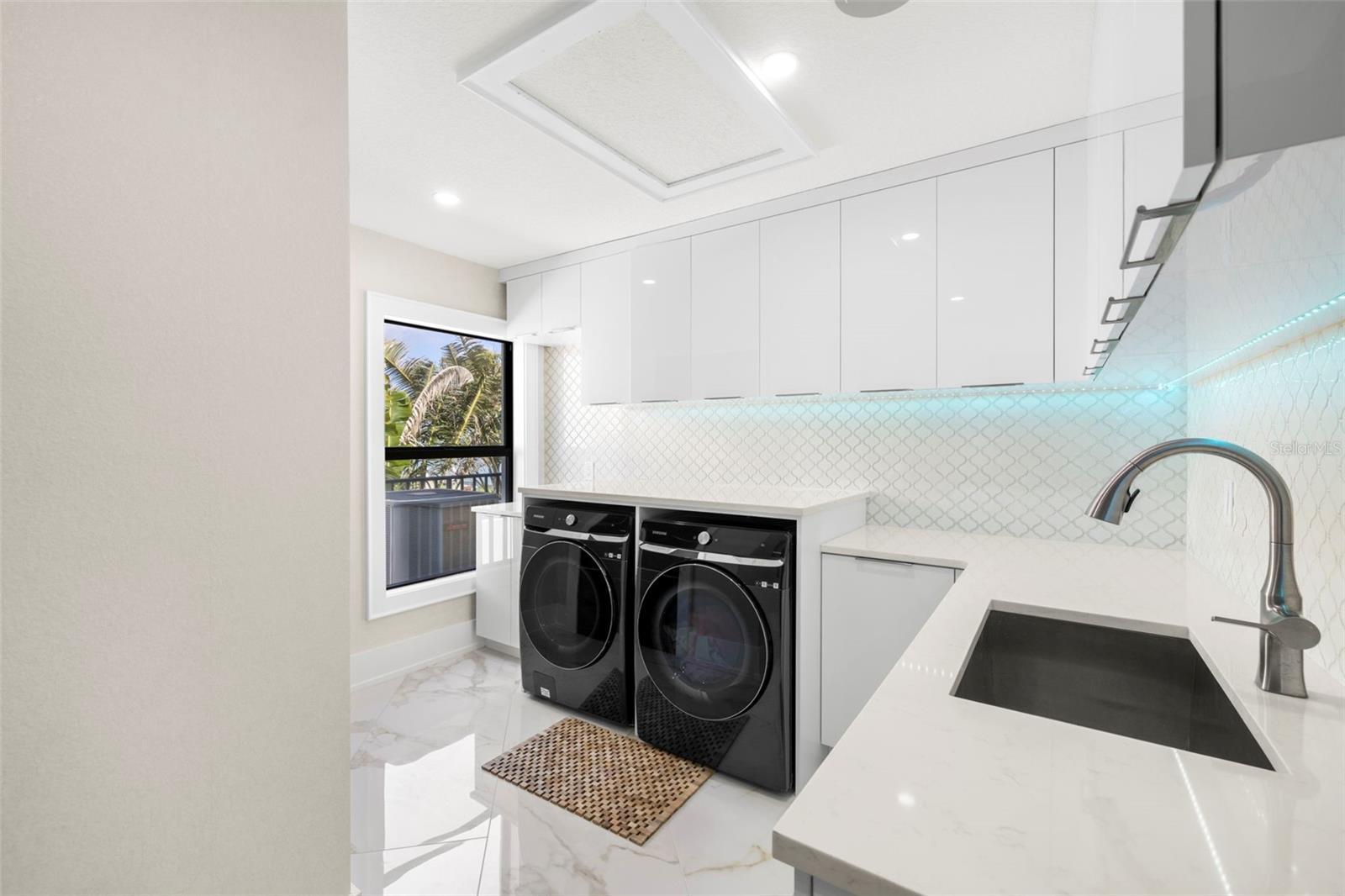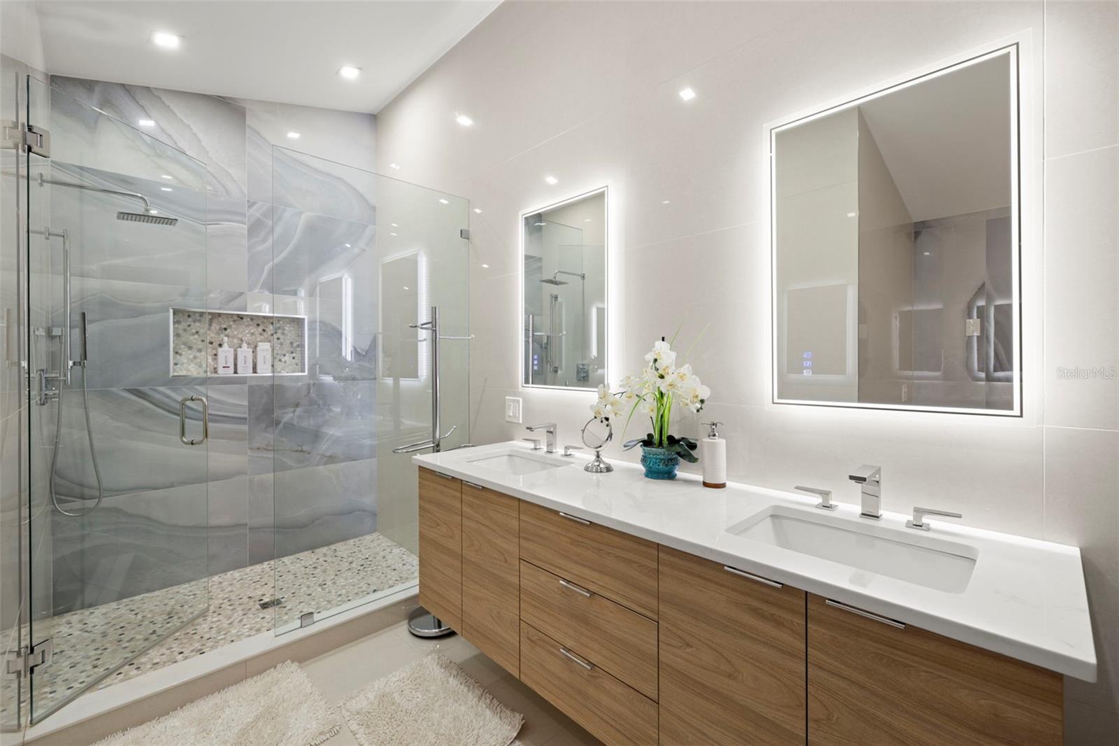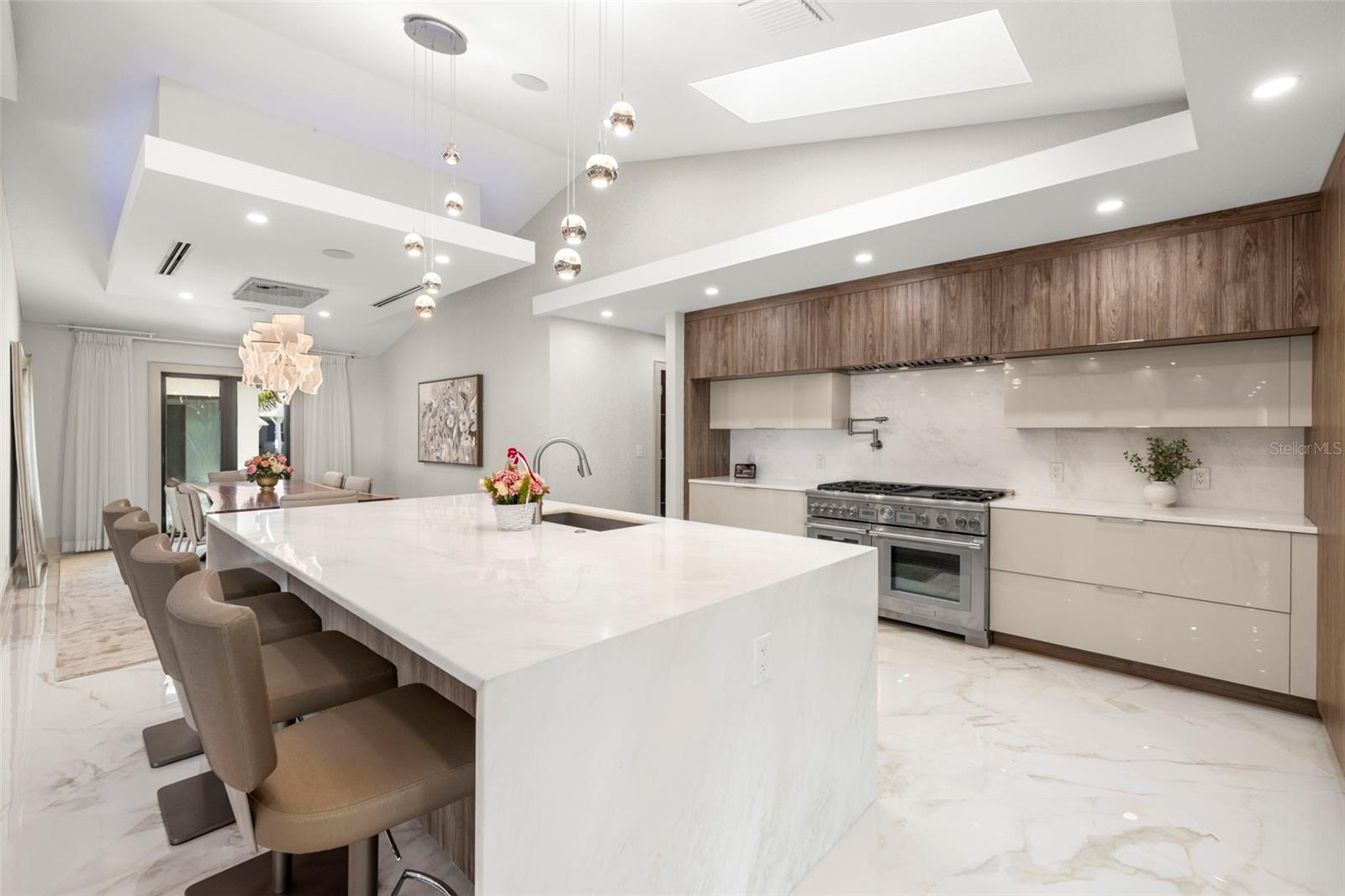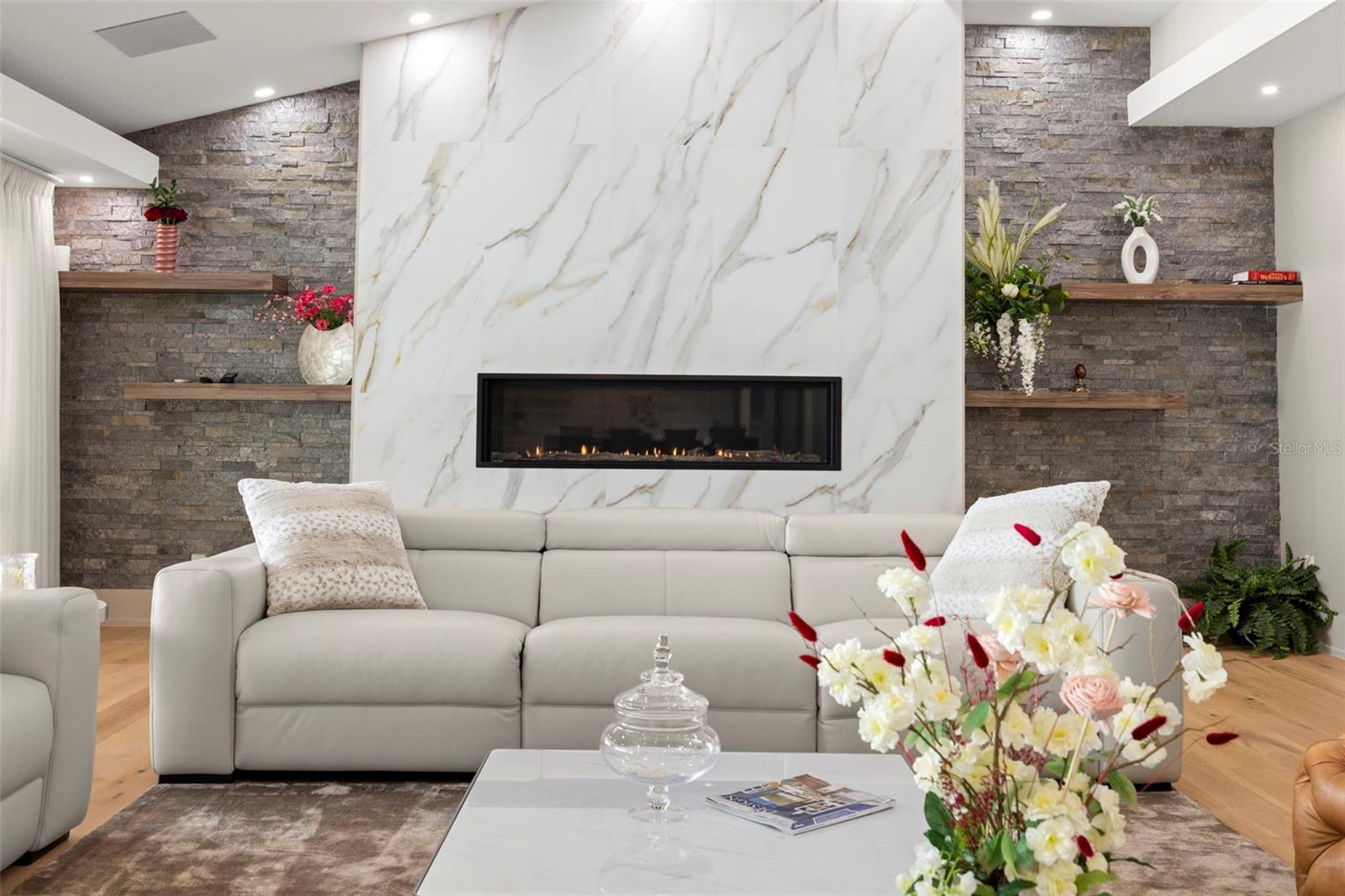 Located on one of Tierra Verde's most coveted streets, this home offers unparalleled panoramic views of the Skyway Bridge and the Downtown St. Petersburg Skyline, making it a rare gem. In 2022, a local luxury home builder undertook a complete renovation, on this as his personal residence, stripping the property down to its exterior concrete walls and replacing all upgraded wiring and panels to 400 amps, HVAC systems, ducts and thermostats, Framing with new modern layout, Spray foam Insulation, all new Plumbing, Drywall and Commercial Grade impact Windows and Doors, to meet current building codes, making it almost indistinguishable from new construction. The complete renovation was finished in early 2023. The open-concept living area seamlessly transitions to a spacious outdoor patio, perfect for entertaining guests or enjoying peaceful sunsets over the water. This home has prominent views of the skyway bridge and Downtown ST Petersburg from almost every room. As a Havensmart smart home, lighting, security, cameras, A/C, Enhanced LED lighting inside and outside, whole home audio, surround sound and in-home theatre can be controlled remotely via smartphone. Inside, the home boasts impressive ceiling heights ranging from 10 to 14 feet, a stunning 60-inch gas linear fireplace as well as 2 wood-burning fireplaces. Each room features exquisite California mahogany doors and custom cabinetry adding a touch of elegance. The completely custom kitchen is a chef's dream, equipped with top-of-the-line Thermador appliances, a professional gas Range with professional steamer, a jumbo waterfall-style custom white granite countertop, and a built-in Wolf coffee maker, and microwave drawer. The home is fully designer grade incorporating lighting, and Plumbing fixtures from Fergusson Design Gallery. The master suite acts as a private sanctuary, highlighted by floor-to-ceiling impact windows and a palatial, custom, walk-in closet complete with all your discerning custom cabinetry and display desires. The luxurious en-suite bathroom includes dual vanities, a freestanding soaking tub, and a frameless glass shower. Unwind in the new lavish pool and spa, complete with a sun shelf and outdoor LED lighting, surrounded by tropical landscaping and vibrant turfgrass. For those who love to entertain, the outdoor space includes a gourmet summer kitchen with a built-in grill, refrigerator, and ample seating, ensuring gatherings are both memorable and enjoyable. This prime location not only offers breathtaking views but also convenient access to nearby shopping, dining, and recreational activities. Additional upgrades comprise marble flooring, solid engineered hardwood flooring, along with new plumbing, insulation, electrical wiring and panels, and updated HVAC ductwork and systems. The newly constructed composite dock accommodates both a 13,000-pound and a 30,000-pound lift, featuring new electrical systems, motors, and cables. Whether you're searching for a peaceful retreat or a lively space for entertaining friends and family, this home perfectly blends elegance and comfort, making it an exceptional choice for discerning buyers. Don't let the chance to own this piece of paradise slip away, complete with every modern luxury at your fingertips.
