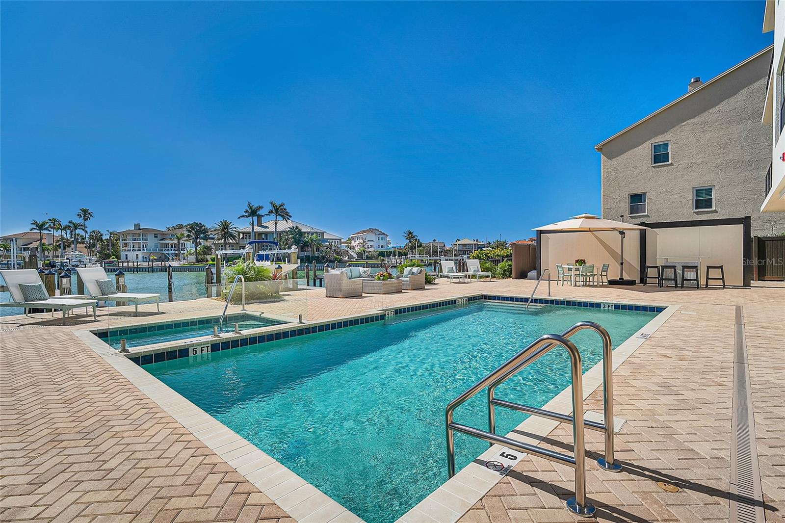 Situated in a coveted, securely gated community on Tierra Verde, Quiet Cove offers the best in waterfront living! Here, you can take advantage of an island life full of water sports, delicious restaurants close by so you're never far from a savory meal or a lively night out. For the avid mariner, boat slips are available for purchase, making those sunset cruises and Gulf adventures a daily possibility. Not to mention, the award-winning natural beauty of Ft. De Soto Park – is practically in your backyard! Quiet Cove also offers easy access to world-class beaches and the vibrant energy of Downtown St. Petersburg is just minutes away. Even Tampa Intl Airport is just a convenient 30 min cruise. Residence 2B is a 4 bedroom, 3.5 bath is a coastal sanctuary with a 2-car garage EV charger ready. Gorgeous luxury vinyl flooring flowing underfoot, the soft glow of under-cabinet lighting highlighting the brilliant coastal appeal of shaker-style cabinetry. The open-concept gourmet kitchen is a showstopper, boasting stunning quartz surfaces, an exquisite backsplash, a fantastic island bar prep center, and even a sizable hidden pantry for all your gourmet goodies. The high-end appliances and large breakfast bar are perfect for your morning coffee with a view. The inviting great room features elegant electronic window treatments, a spacious dining area, and a graceful living room that spills out onto a deep private covered waterfront terrace. Your terrace overlooks the sparkling community swimming pool. The owner's suite is a true retreat, accessible through fine double doors and featuring a waterfront sitting area, with two closets (including a spacious walk-in!), and a spa-worthy owner's bath. Think exquisite quartz surfaces, elegant cabinetry, dual vanities, a dedicated cosmetics center, a luxurious stand-alone soaking tub, and a brilliantly tiled glass-enclosed multi-head rain shower. The excellent ensuite second bedroom boasts a large walk-in closet, fabulous full bath with splendid tilework and an impressive glass shower enclosure. Bedrooms 3 and 4 are oversized and share a stylish connecting bath. This laundry room is lavish with outstanding tilework, quartz counters, matching cabinetry storage, and a charming porcelain farmhouse sink. Your Quiet Cove community offers a heated pool, separate hot tub, expansive lounging space, and a covered entertainment deck. The Clubhouse adds even more value with a fitness area, social center, mini-kitchen/wet bar, and a well-appointed restroom. An exceptional value and includes a $25,000 decorator allowance, put your personal touch on this already stunning Tierra Verde waterfront condo. It's secure, it's stunning, and it's perfectly positioned in the heart of Tierra Verde, a premier waterfront community! Inquire about our preferred lender's special incentives!