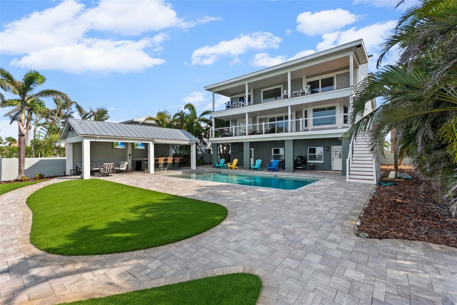 Simply stunning! Spend every single day relishing the sweeping, panoramic views of Boca Ciega Bay from this impeccably remodeled high-and-dry waterfront sanctuary on the exclusive island paradise of Tierra Verde. By day, sunlight dances across expansive waters; by night, the twinkling lights of the Don CeSar, St. Pete Beach, and Isla del Sol illuminate the horizon, creating an enchanting backdrop for island living at its finest. The gracefully designed interior reflects coastal sophistication and casual elegance, with no element left untouched. This home is ready for you to move in and enjoy in the highest of style, no further work required. The gourmet kitchen and primary bath feature luxurious Cambria quartz countertops paired with custom cabinetry, while the guest bath charms with classic marble accents. Original hardwood floors add timeless warmth and character, beautifully refinished to complement the home’s graceful aesthetic. An absolute delight for both the chef and the entertainer, the kitchen boasts premier Wolf, Sub-Zero, and KitchenAid appliances, an RO water purification system, a wine cooler, and a giant, gorgeous island, flowing effortlessly into outdoor spaces ideal for relaxed gatherings or festive celebrations, making it easy to enjoy every day of your new, elevated waterfront lifestyle. Adjacent to the main living area, the built-in bar is the perfect place to prepare your favorite libations, complete with quarts countertops, beverage refrigerator, and stylish wood shelving. The master bath is a sumptuous and elegant, with a large slipper tub perched in front of a massive window overlooking the open water. Simply dreamy. The walk in shower with frameless glass surround, gorgeous dual-sink vanity, and tremendous walk-in closet complete the extravagance. Outdoor living here is extraordinary. Beside the sparking Pebble-Tec pool, you’ll find a large, covered lounge area with an expansive outdoor kitchen, featuring a Wolf gas grill and a True beverage refrigerator, providing alfresco dining in front of breathtaking waterfront views. It’s impossible to overstate the excellence this super cool outdoor space, which will certainly become your outdoor living room. Launch into Boca Ciega Bay and the Intracoastal directly from your backyard—complete with a substantial seawall and a Trex-clad dock featuring a convenient 10,000 lb boat lift. Positioned within a minimum wake zone, the home perfectly balances the incomparable beauty of open water living with manageable boating and access to an amazing array of exceptional boating water. Impact-rated glass throughout and a brand new roof provide security in waterfront living, while a giant garage (with room for three cars and the requisite golf cart) and large bonus room provide space for all of the toys necessary to take advantage of supreme Tierra Verde living. Tierra Verde is renowned for its refined, yet relaxed island lifestyle, with its vibrant boating culture, acclaimed dining options, and quick access to the both the cultural heartbeat of nearby downtown St. Petersburg and the pristine white sands of Ft. DeSoto and St. Pete Beach. This remarkable property isn’t merely a home; it’s your personal invitation to savor life on one of Florida’s most desirable locales. All measurements are approximate, buyer to verify at their discretion. You must see inside of this property to appreciate it. You won't be disappointed.
