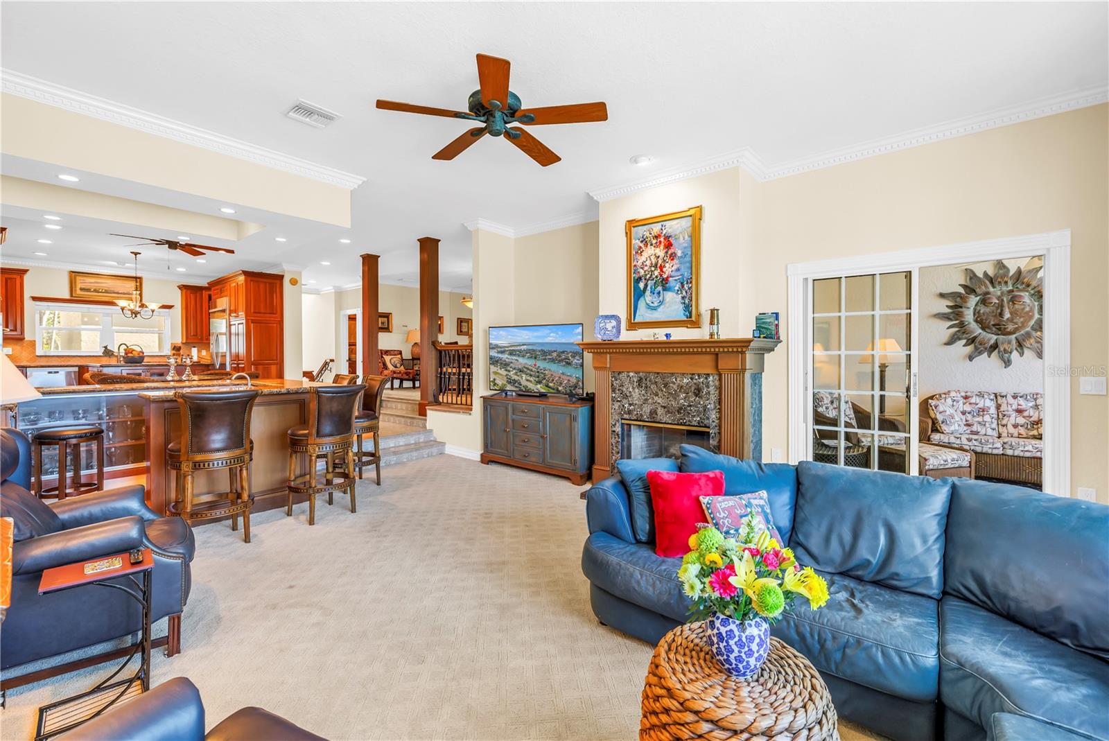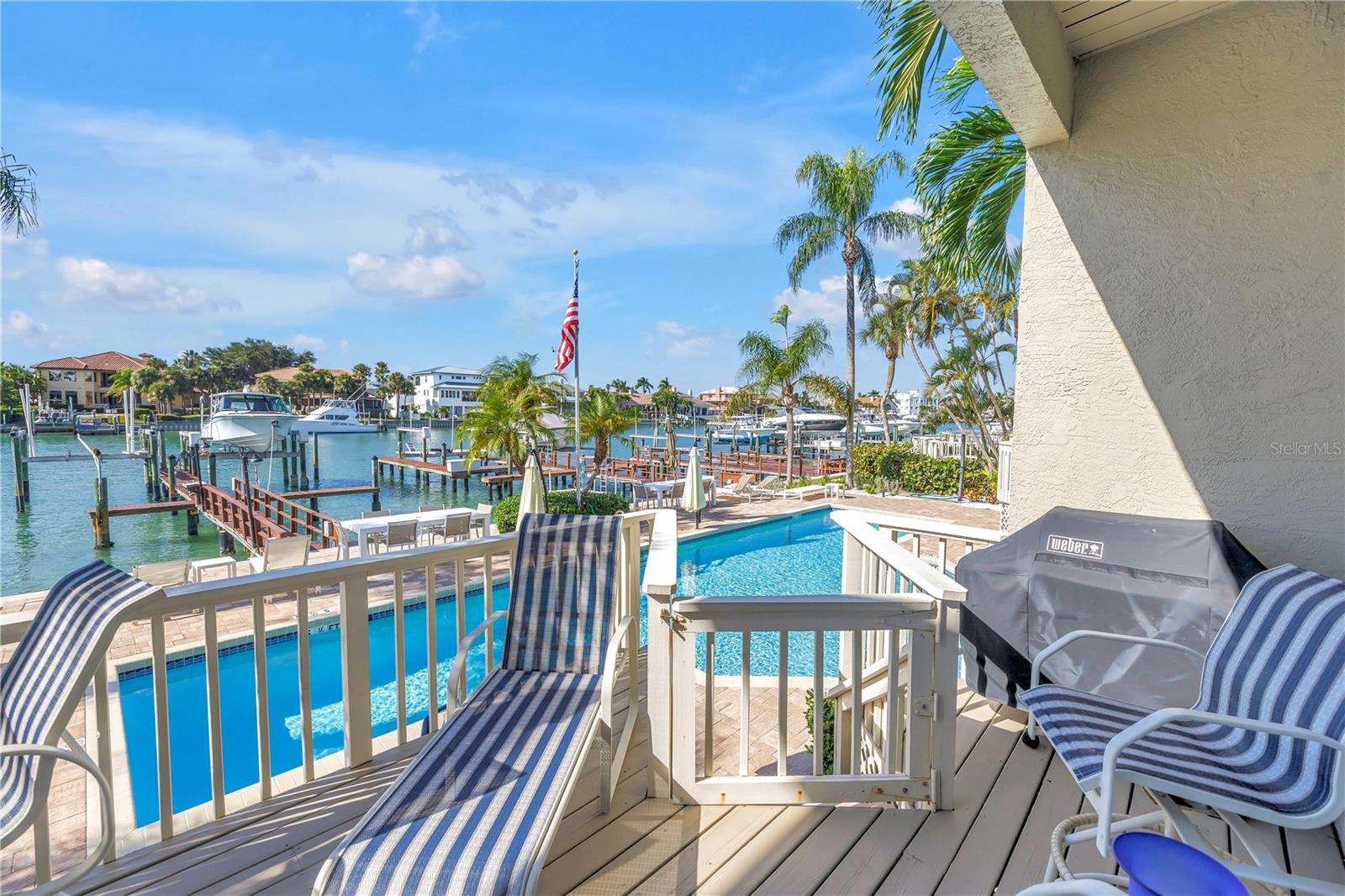 Price Reduced on this amazing townhouse. Luxury waterfront living on Tierra Verde’s Grand Canal in an intimate community of only seven Townhomes with a sparkling community pool overlooking the water. This rare offering includes a 3-bedroom, 2.5-bath main residence PLUS a separate private guest apartment above the garage featuring 1 bedroom, 1 bath, living room and kitchenette—ideal for extended guest stays, multi-generational living or a private retreat. A welcoming courtyard entry sits between the main home and guest house, creating the perfect outdoor space for evening gatherings or quiet mornings. Inside the main residence, enjoy a formal Living Room with wood-burning fireplace and built-in bar, an elegant formal dining room, and a bright enclosed sun porch with gorgeous natural light. The gourmet Kitchen offers a center island, stainless steel appliances, solid wood cabinetry and granite countertops. Upstairs, the spacious Primary Suite features a sitting area, luxurious bath with large walk-in shower, and a private balcony overlooking the Grand Canal. Two additional bedrooms, a full bath, and laundry complete the upper level. The entire property is enhanced with impact windows and doors for peace of mind. Step outside to your private dock with boat lift, offering immediate access to open Gulf waters—truly a boater’s paradise. Located on the coveted island of Tierra Verde, you’re just minutes from Fort De Soto Park, St. Pete Beach, award-winning dining, downtown St. Petersburg, I-275, and Tampa International Airport. Experience refined coastal living, exceptional convenience, and breathtaking waterfront beauty in one of Tierra Verde’s most special settings.