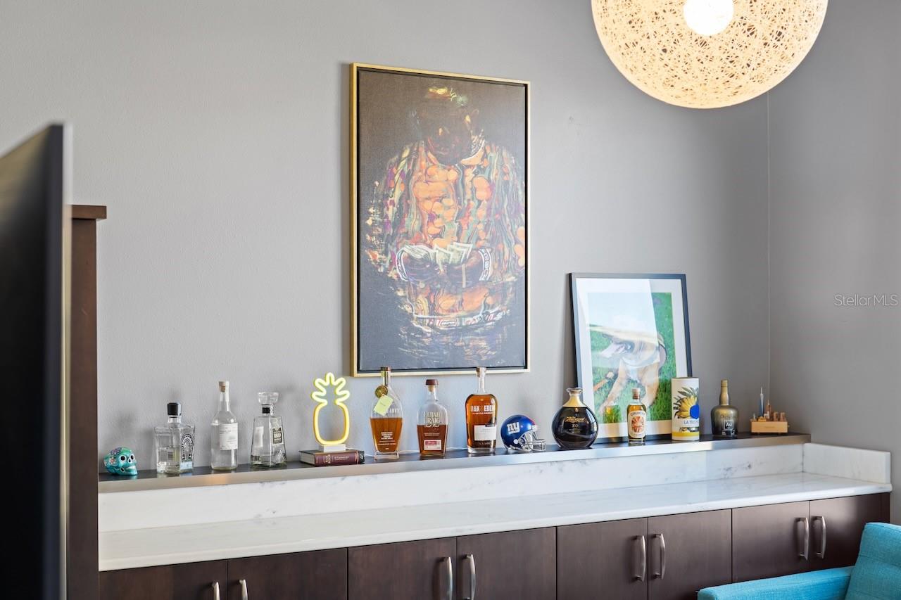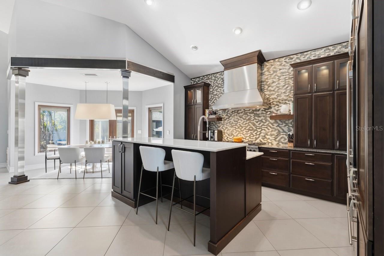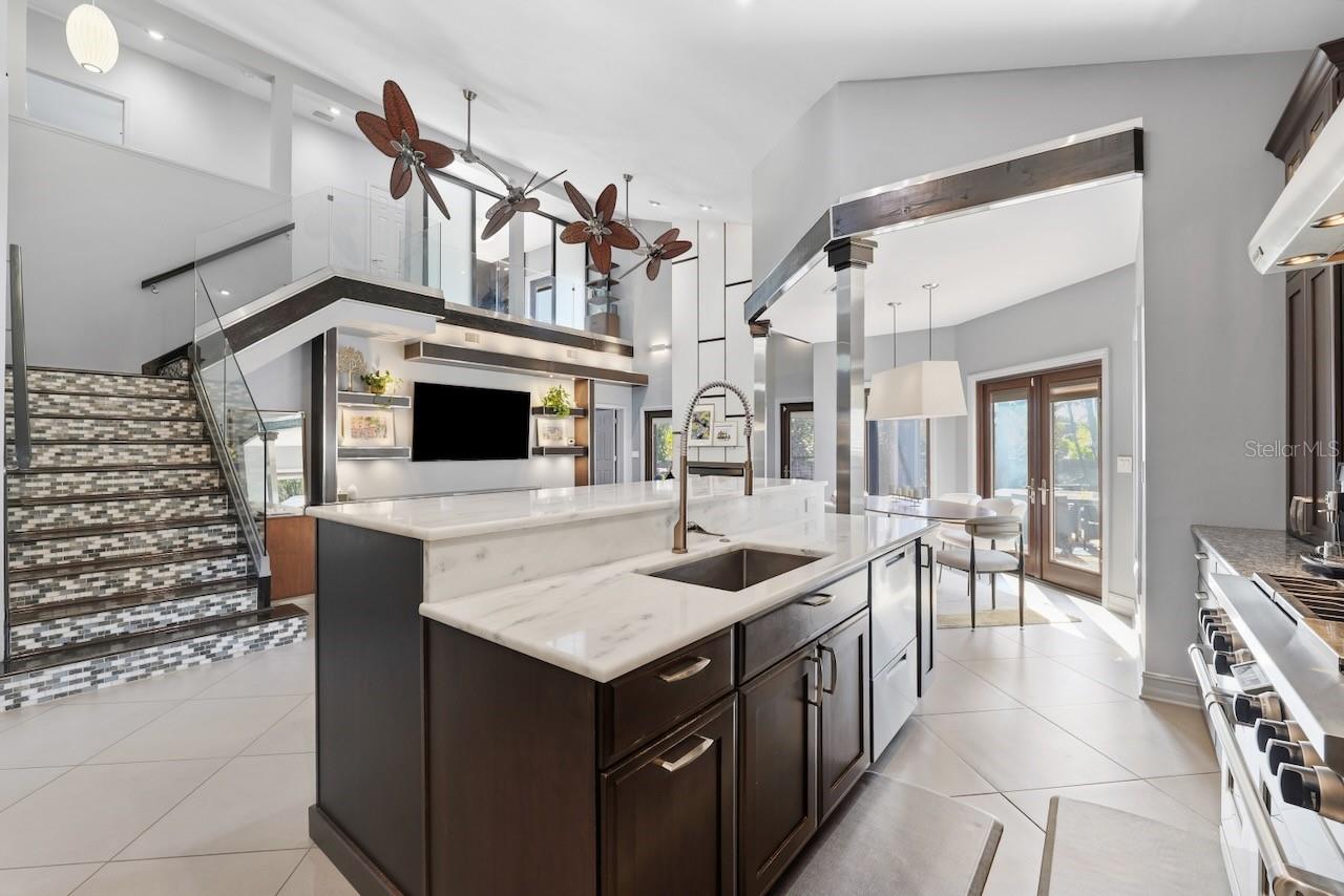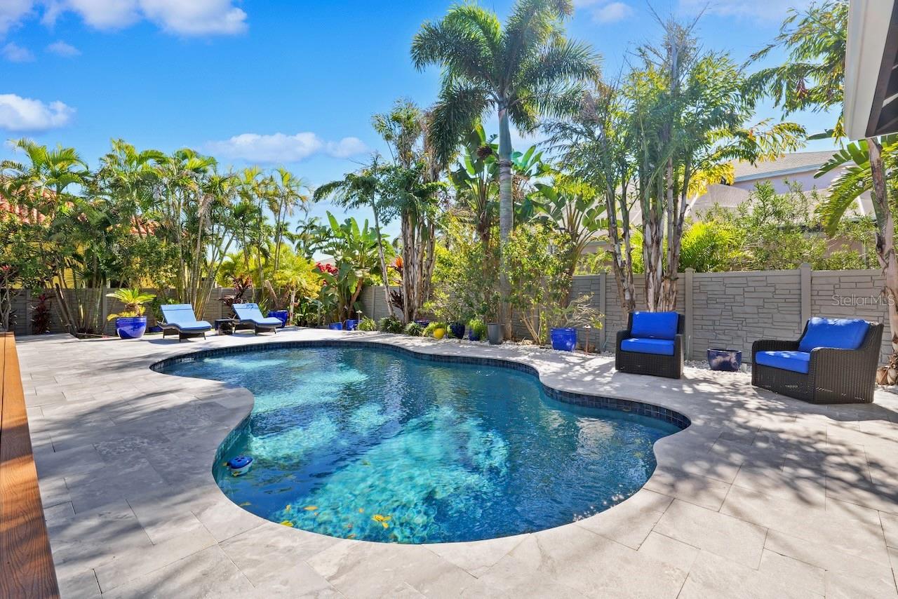 This exceptional Tierra Verde residence is a true masterpiece, thoughtfully designed to impress at every turn—both indoors and out. The versatile and well-conceived floor plan offers a spacious first-floor primary suite along with a refined office that serves a dual purpose as a stunning wine room, complete with custom built-ins and a 250-bottle wine refrigeration system. From the moment you enter the light-filled foyer, the open-concept design showcases exceptional quality, attention to detail, and top-of-the-line custom appointments, including exquisite custom cabinetry throughout. The heart of the home is a true chef’s kitchen, appointed with Sub-Zero refrigeration, a Wolf commercial-grade propane six-burner range with grill and oven, solid wood Omega cabinetry, and elegant Italian marble countertops. The kitchen flows effortlessly into the contemporary living room, where a custom entertainment wall and electric fireplace create an inviting space for everyday living and entertaining. Upstairs, a thoughtfully converted loft provides a second beautiful office or an optional fourth bedroom, featuring sliding doors that open to an expansive upper deck. Finished with low-maintenance composite decking and sleek stainless-steel cable railing, the deck overlooks the private backyard resort—an outdoor sanctuary you may never want to leave. The open dining area offers beautiful views of the spectacular backyard and outdoor kitchen—perfectly designed for hosting memorable gatherings, from intimate dinners to your next Super Bowl party. Large-format porcelain tile flooring and upgraded lighting throughout the first floor ensure a seamless and welcoming transition between spaces. The first-floor primary suite is a private retreat, featuring custom-designed walk-in closets, a built-in bed and cabinetry, and a luxurious en-suite bath with dual sinks and Omega cabinetry. A guest bath and a separate laundry room complete the main level. A striking staircase with custom commercial-grade glass railing leads to the second floor, where you’ll find two spacious bedrooms and a beautifully remodeled bathroom featuring frameless glass and custom cabinetry. This home offers peace of mind with a new roof (2023), complete security system, impact-rated windows and doors, a whole-house generator, and dual propane tanks. Step outside and discover that the attention to detail continues. The fully equipped Kitchen Pavilion boasts an exquisite marble deck, outdoor air conditioning with misters, fans, a SunBrite TV, Napoleon grill, refrigeration, and a Kalamazoo pizza oven—perfectly positioned beside the heated, saltwater, fully upgraded pool. All of this is surrounded by lush tropical landscaping and custom outdoor lighting. An organic outdoor bug system and a dedicated dog run complete this incredible property. This one-of-a-kind Tierra Verde home must truly be experienced in person to be fully appreciated.