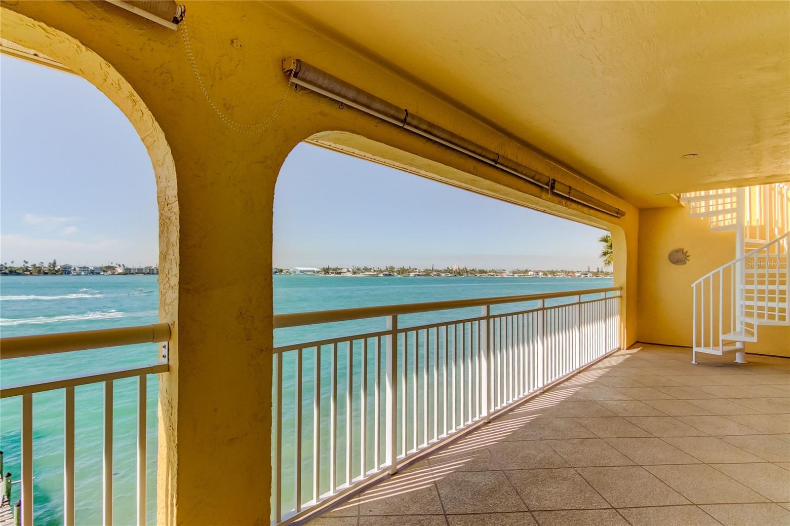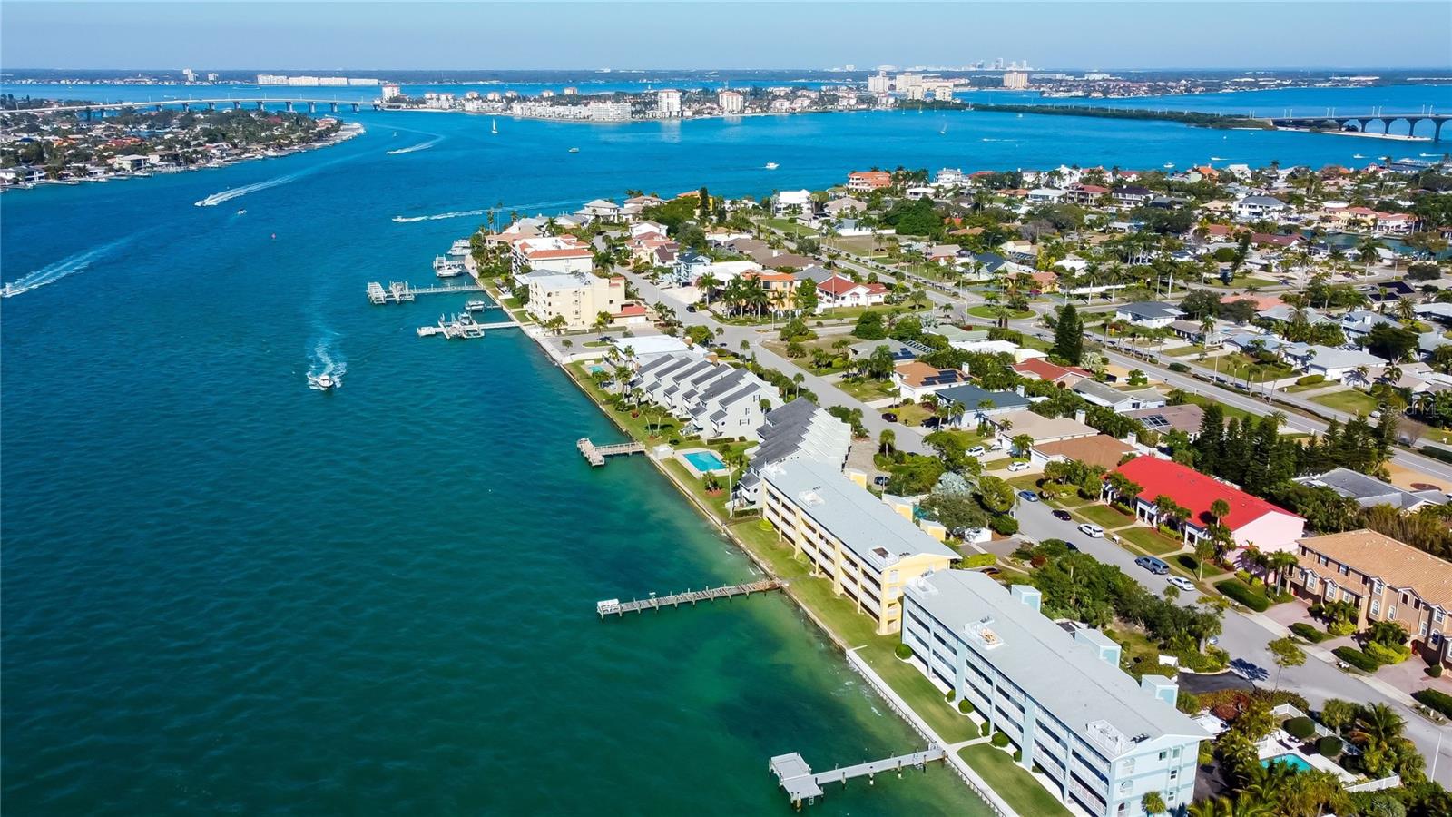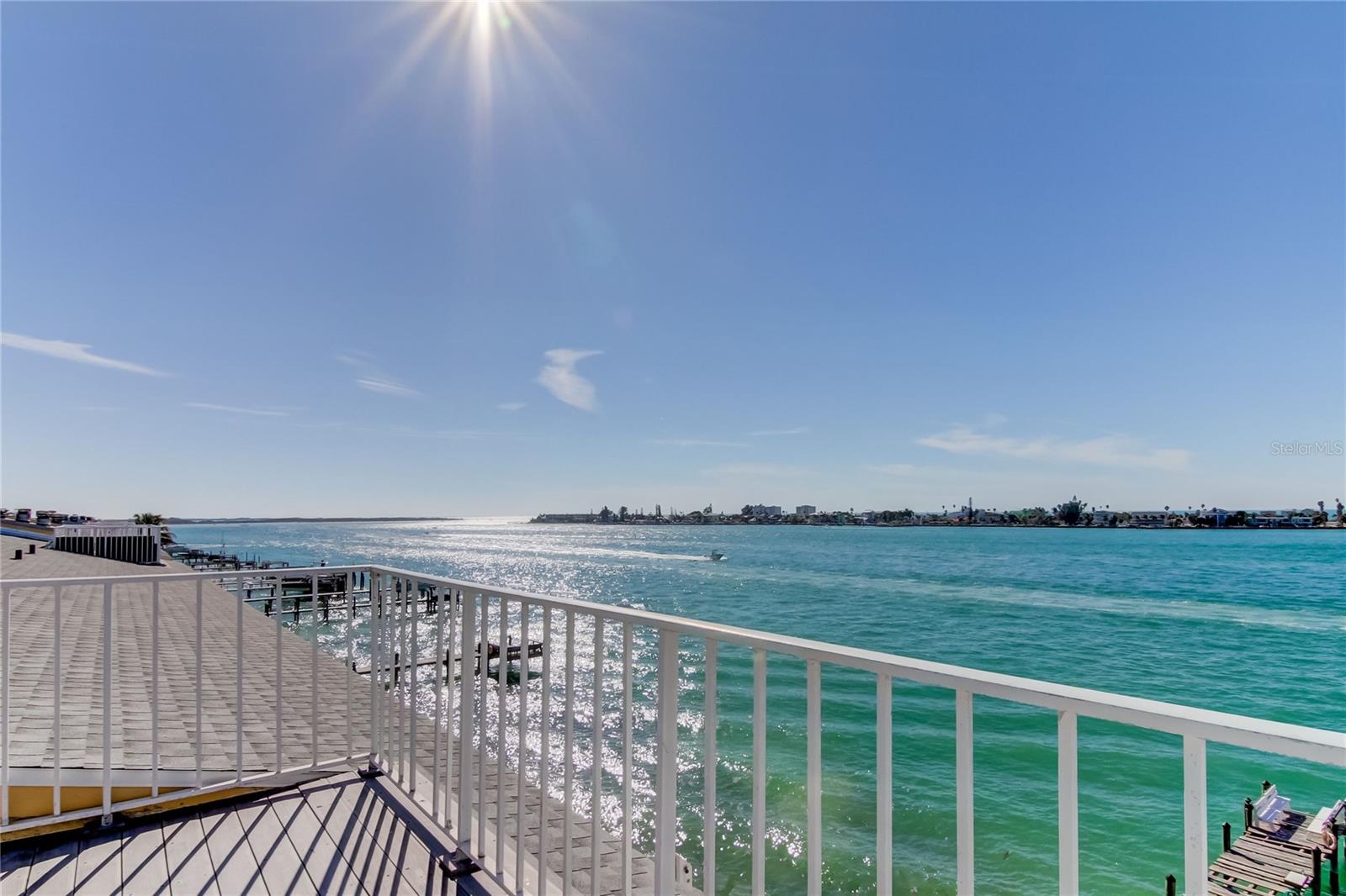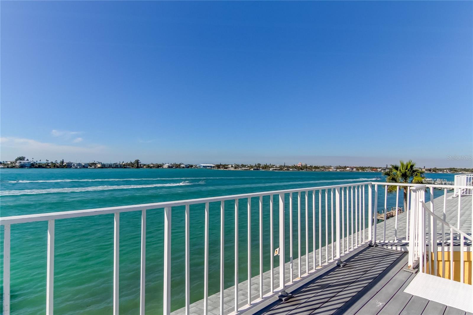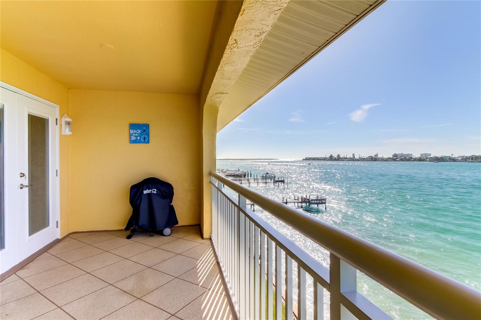 Mesmerizing views of the Pass-A-Grille Channel & Don Cesar Resort in Tierra Verde, with no bridges to the Gulf of Mexico. This is Paradise Living with evening sunset views from your westerly facing covered private 50' balcony. Much sought after Blue Water Bay top floor condo with a spiral staircase to your own private Sun Deck. You will rarely find a garage in a condo property, but this is your Lucky Day - all on one level condo AND your own garage! Your living room/dining room/kitchen open concept space has a working wood burning fireplace with double doors to the balcony. Both bedrooms have ensuite baths. The Master bedroom also has doors that open to the balcony. The Sleep Number King split bed is only 3 months old, with many features ($6000). The guest bedroom has a Queen size Murphy Bed for when your friends come to visit. Kitchen and Living Room windows have sun shades. There's a large capacity Kenmore washer/dryer off the kitchen. AC was replaced in 2019 & has an added UV light. There is an On-Demand tankless water heater. Eco Water System recently installed ($3000). Electrical panel replaced in 2019 as well. All new hurricane rated Stanek windows & doors. Community amenities include a building elevator, pool, fishing pier (which is being replaced & will be bigger & better) HOA includes basic cable & internet, water, sewer, trash removal, flood insurance. Roof was replaced in 2023. The Milestone Inspection has been completed & there are no pending assessments. All ages welcome and pet friendly. Walk or ride your bike to local restaurants, the #1 rated Ft DeSoto beaches, the Gulf Beaches or a 15 minute drive to downtown St Petersburg. Easy access to I-275 and Tampa Intl Airport. Isla Del Sol Yacht & Country Club also minutes away offering golf, tennis, pickleball and marina memberships. The Blue Water Bay community consists of 9 condominiums. Being sold furnished. Make an appointment for a private showing today - this opportunity for full-time or part-time residence is rare & once you see it, you will understand why!