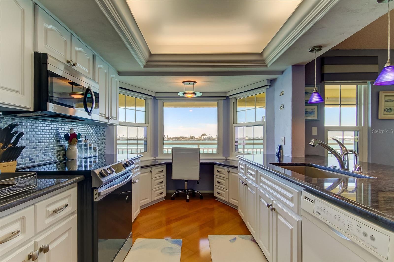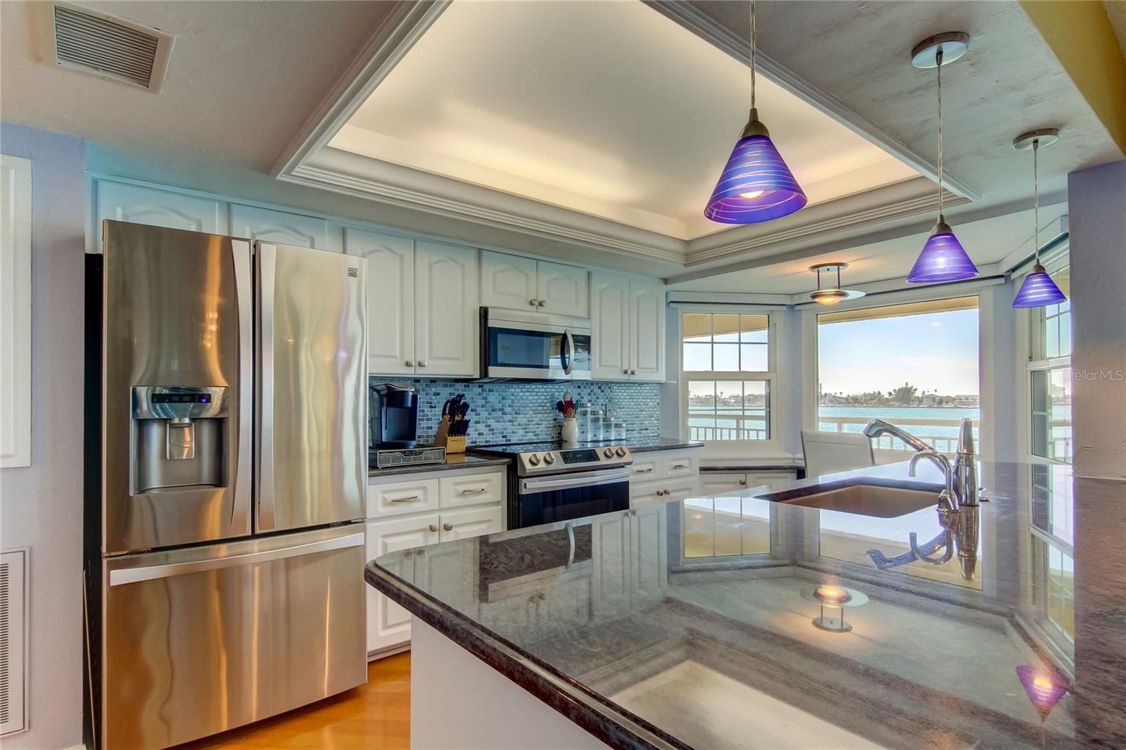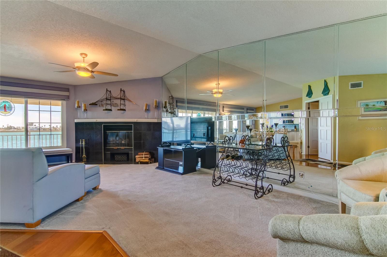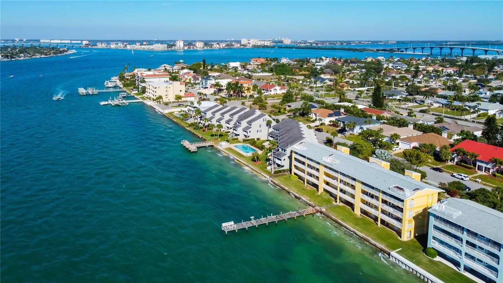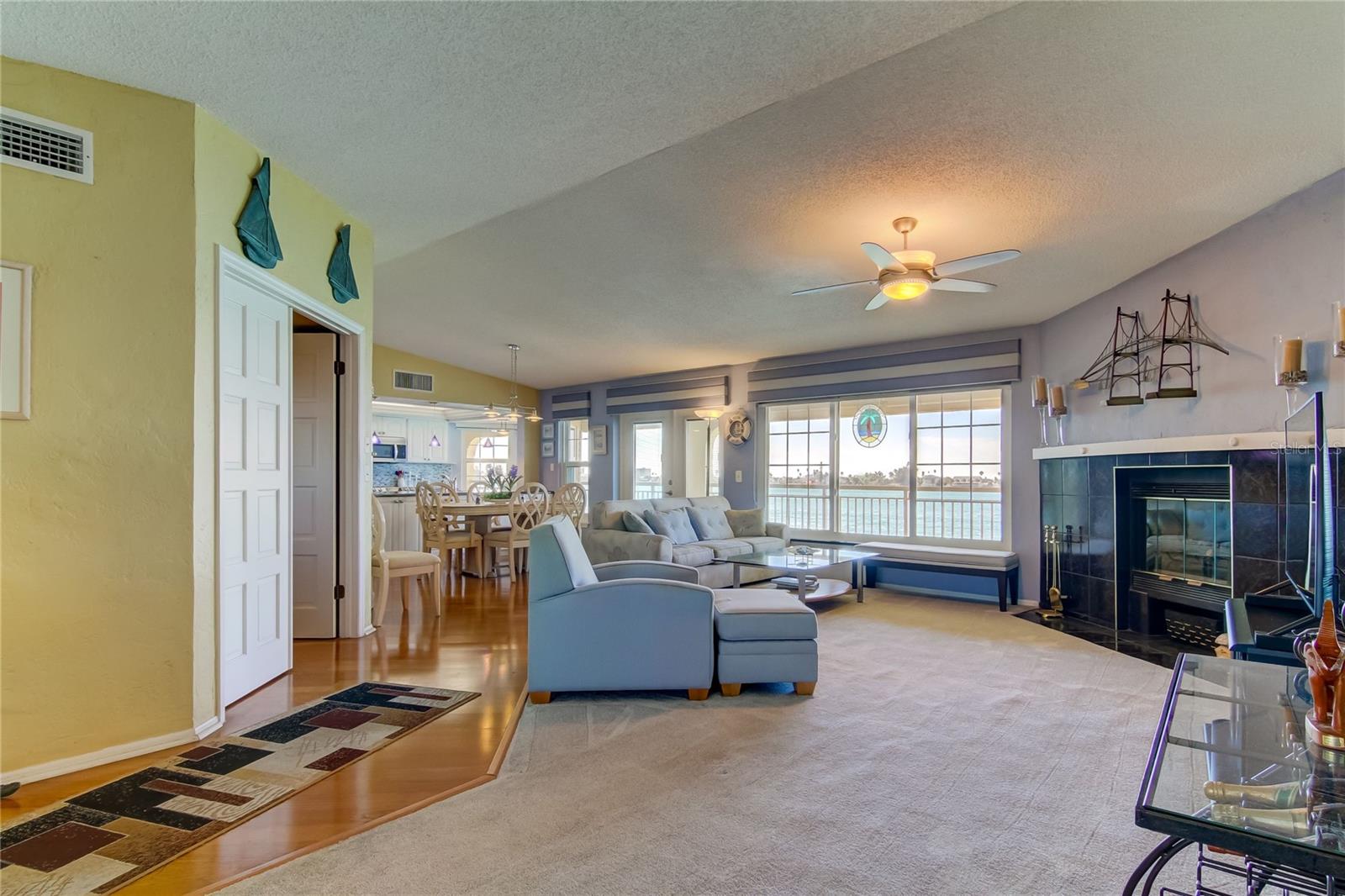 Mesmerizing views of the Pass-A-Grille Channel & Don Cesar Resort in Tierra Verde, with no bridges to the Gulf of Mexico. This is Paradise Living with evening sunset views from your westerly facing covered private 50' balcony. Much sought after Blue Water Bay top floor condo with a spiral staircase to your own private Sun Deck. You will rarely find a garage in a condo property, but this is your Lucky Day - all on one level condo AND your own garage! Your living room/dining room/kitchen open concept space has a working wood burning fireplace with double doors to the balcony. Both bedrooms have ensuite baths. The Master bedroom also has doors that open to the balcony. The Sleep Number King split bed is only 3 months old, with many features ($6000). The guest bedroom has a Queen size Murphy Bed for when your friends come to visit. Kitchen and Living Room windows have sun shades. There's a large capacity Kenmore washer/dryer off the kitchen. AC was replaced in 2019 & has an added UV light. There is an On-Demand tankless water heater. Eco Water System recently installed ($3000). Electrical panel replaced in 2019 as well. All new hurricane rated Stanek windows & doors. Community amenities include a building elevator, pool, fishing pier (which is being replaced & will be bigger & better) HOA includes basic cable & internet, water, sewer, trash removal, flood insurance. Roof was replaced in 2023. The Milestone Inspection has been completed & there are no pending assessments. All ages welcome and pet friendly. Walk or ride your bike to local restaurants, the #1 rated Ft DeSoto beaches, the Gulf Beaches or a 15 minute drive to downtown St Petersburg. Easy access to I-275 and Tampa Intl Airport. Isla Del Sol Yacht & Country Club also minutes away offering golf, tennis, pickleball and marina memberships. The Blue Water Bay community consists of 9 condominiums. Being sold furnished. Make an appointment for a private showing today - this opportunity for full-time or part-time residence is rare & once you see it, you will understand why!