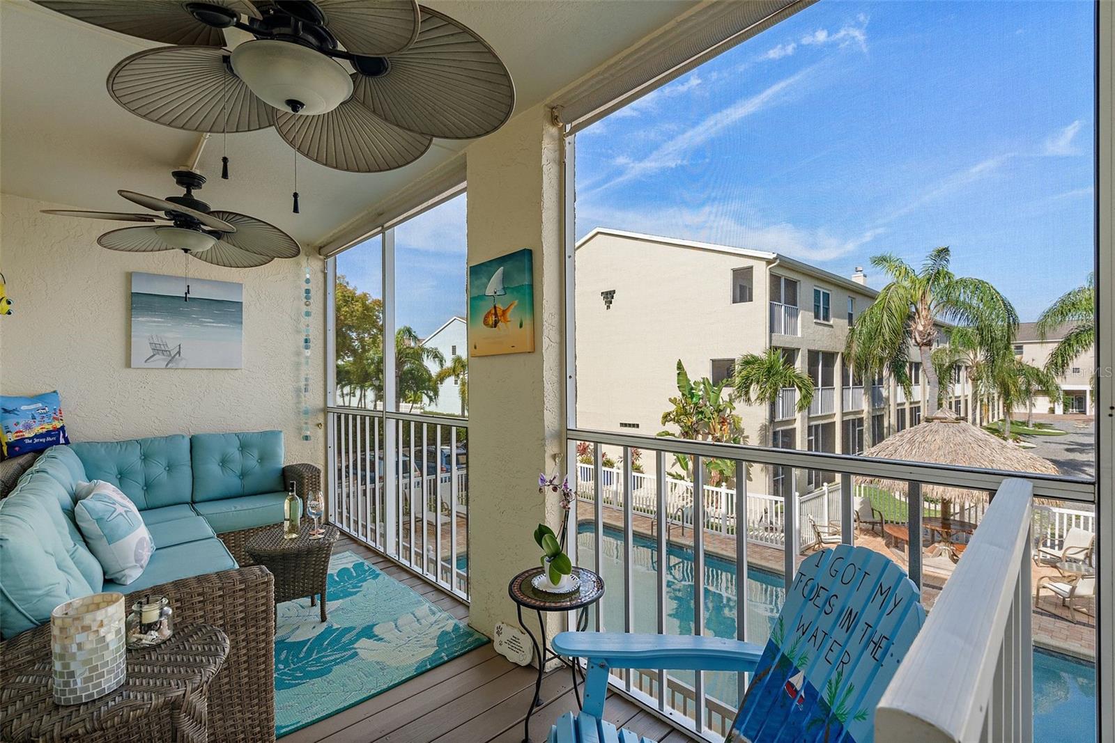 ENJOY PEACE OF MIND KNOWING THERE WAS NO WIND OR STORM DAMAGE IN HURRICAN HELENE! Welcome to Your Slice of Paradise! Step into island living at its finest with this charming FULLY FURNISHED 2-bedroom townhome in the heart of Tierra Verde! ONE OF THE LOWEST HOA FEES ON THE ISLAND. From the moment you walk through the door, you'll be greeted by the warm embrace of coastal elegance and comfort. Picture-perfect floors lead the way through the airy and open living space, creating the ideal setting for both relaxation and entertaining. Cozy up by the fireplace with its electric insert on cooler evenings, or whip up your favorite dishes in the chef-inspired kitchen complete with modern appliances and plenty of counter space. Let the sunshine in through HURRICANE IMPACT windows and doors that not only flood the home with natural light but also offer peace of mind. Upstairs, you'll find two spacious bedrooms offering plush carpeting, ample closet space, and serene views. Outside, a tropical oasis awaits! Step onto the balcony overlooking the sparkling pool, complete with a charming tiki hut that's straight out of Jimmy Buffett's Margaritaville. Whether you're hosting a gathering with friends or simply unwinding after a long day, this is the ultimate spot to relax and enjoy the good life. Plus, with a huge 2-car garage featuring a fun bonus area currently used for entertaining, you'll have plenty of space for storage or even your own personal workshop. And let's not forget the convenience of being within walking distance to a variety of restaurants – perfect for satisfying those cravings for delicious island cuisine! The pristine beaches of Fort DeSoto and St. Pete Beach are just a quick drive and Tampa International Airport is only 30 minutes making this the ideal location for a permanent island residence or vacation getaway home.