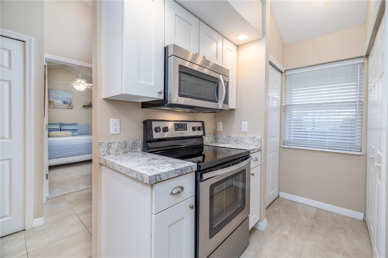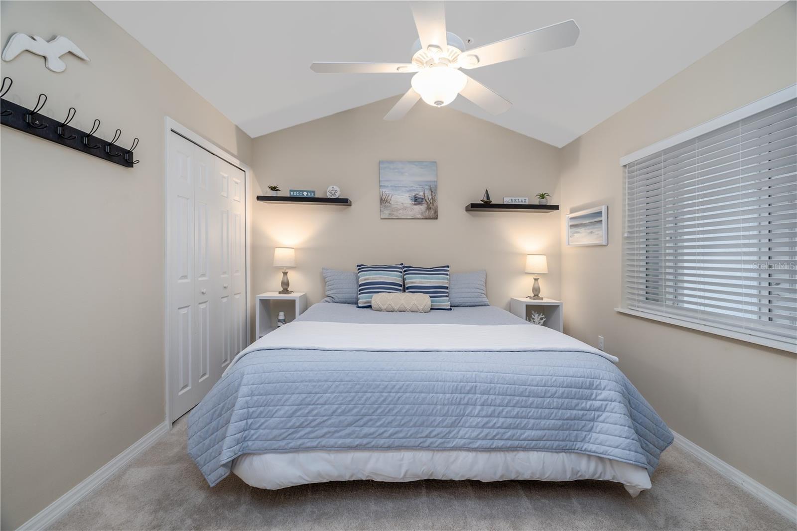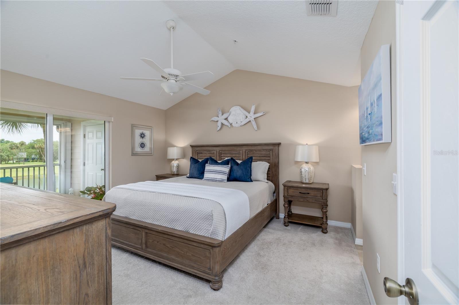 A MUST SEE Top floor, 2 bedroom, 2 full bathroom, middle unit with very quiet & infrequently used elevator. Enjoy your coffee on your screened in porch taking in the tranquil view of the pond with exotic birds playing as well as views of the 16th and 17th course fairways. Catch the rocket launches, conveniently off the front balcony. Building updated in 2015 with accordion hurricane shutters, double pane windows/sliders, high vaulted ceilings with ceiling fans, neutral paint throughout, ceramic tile floors, and carpet. Kitchen comes with stainless steel appliances, as well as BRAND NEW washer & dryer in the laundry room. Master bedroom with water view, large custom-made, and walk-in closet. Access to screened in porch from slider door. Master bath has beautiful tile shower with glass enclosure. Storage closet, located on screened in porch with ample room for tools, beach and fishing gear, golf clubs, etc.. Whether you’re looking for a retirement home, relocation, or vacation home this is the place for you! Don’t miss out on this pristine condo a short drive to Kennedy Space Center, Orlando International Airport, and Disney World. Call today for a viewing.