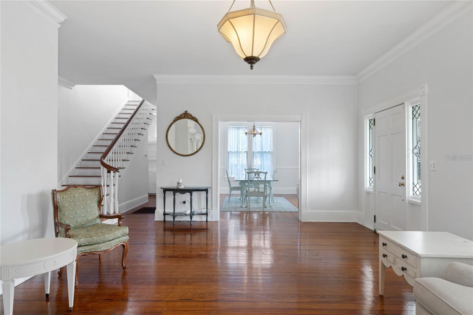 A brand new roof was replaced in January 2024. The home has been renovated, not remodeled, so rooms are ready for you to add your touches and create the home of your dreams here in this historic gem! The possibilities are endless when combining the past with the present! There is a large 24,000-gallon lap pool within a beautiful fenced-in resort-style backyard with its very own fishpond and lots of privacy, including an outdoor shower. This stunning three-story home boasts five bedrooms and three bathrooms. The third-floor sanctuary allows you to watch the rocket launches from the Cape as well as the beautiful sunrise views coming up over the Indian River. The home has a large front porch for sitting and relaxing. The original antique stained glass in the front door entrance cascades rainbows across the formal living room. Included is the large formal dining room, which has a big kitchen with an island, great for entertaining. An additional Florida room, accessible from the kitchen, leads to the pool area and an unattached workshop, catering to all your hobbies and interests. A two-car garage with a driveway and plenty of parking is attached to the home. There is always lots of beautiful light cascading through the many high-ceiling rooms, coming from the large antique windows throughout the home. The house itself and the location have a rich history! It's a fantastic location, just walking distance from the quaint downtown Titusville area, which gives you easy access to parks, shops, great food, and spirits. The great events and entertainment available will make it easy for you to choose your favorites. This gives you a little taste of everything, and with the Merritt Island Wildlife Refuge, you are close to nature at its finest within 10 minutes. Drive another 10 miles, and you can enjoy the 24 miles of undeveloped land along the East Coast of Florida and see the beautiful sandy beaches in the Cape Canaveral National Seashore, Playalinda Beach. Incredible wildlife always surrounds the area, making it a magnificent location! The central location makes it an easy drive into the bigger cities of Orlando, Daytona, Viera, and the two major airports, under an hour the majority of the time. This place has it all! LOCATION! LOCATION! LOCATION!!! Holiday parties and events always provide the most memorable experiences for family and friends in this grand home because of its size and versatility. This is a wonderful neighborhood. We know whoever lives in this home will have rich experiences and enjoy the many fabulous aspects of living life. This home promises not just a residence, but a lifestyle enriched by community, history, and natural beauty. Ideal for hosting unforgettable gatherings and creating lasting memories, it offers a truly exceptional living experience.