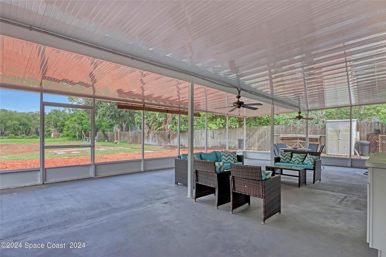 Cape Cod style home located in North Titusville. Close to all major roads leading to wherever you want to go. You may want to just stay here on your .72 acre...so close to 3/4 acre...with a backyard that seems to go on forever. The back criss cross wooden fence offers a beautiful view of majestic oaks and if you look really close...a view of the waters of South Lake. Tranquil and serene! The home itself offers 5 bedrooms and 2 1/2 baths. There is a an extra accessible shower and pedestal sink in the garage. Foyer leads to a small stair area which opens up to a Great Room with Custom Island area. Custom banquette with storage gives room to many seats at the table. Sitting area off the kitchen could also be a formal dining area. Laundry and the 1/2 bath leads to an expansive screen porch 22'x36'. Great for entertaining, TV or just plain relaxing. 700 sf basement is not included in living area.. a Bonus! Generac whole home generator stays with this home.