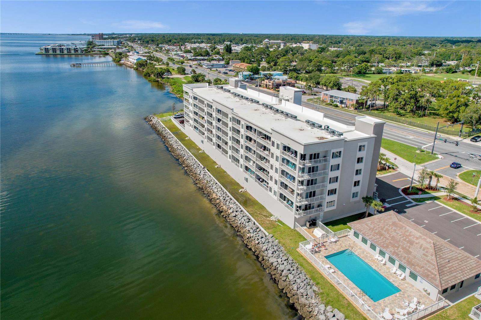 Sunrises have never looked so good from your private balcony OVERLOOKING THE INTRACOASTAL and directly across the water from the KENNEDY SPACE CENTER! Enjoy front row seats for the launches from the Kennedy Space Center and SpaceX, watching the family of manatee that have taken up residence in the water just in front of the pool deck, or the dolphin often seen cruising the !waterways This 2 bedroom 2 bath condo in the River Palm Condominiums was built just a few years ago in 2022! Relax at the refreshing community pool or entertain in the community club house. Feel secure with the keyed & keypad only lobby entry and under building assigned parking. Schedule your private showing today, you won’t want to miss out on the opportunity to live the maintenance free waterfront lifestyle!