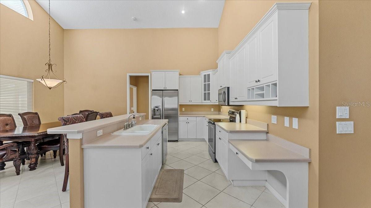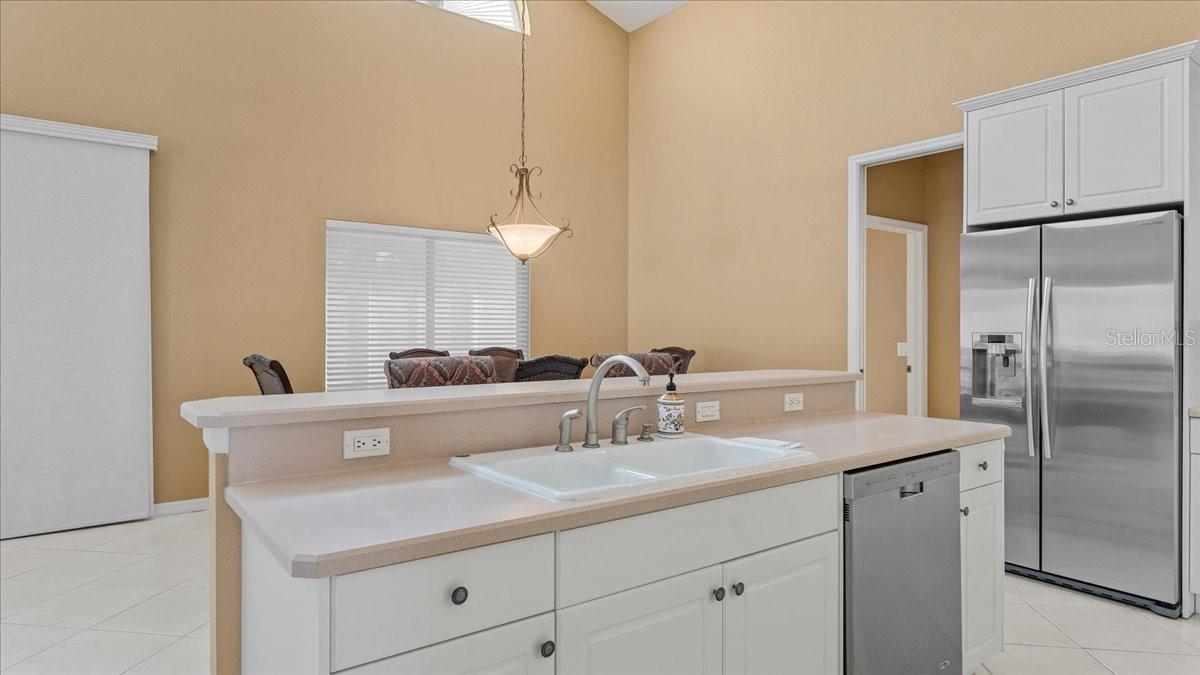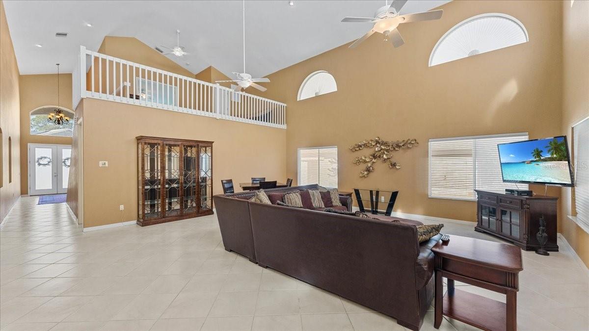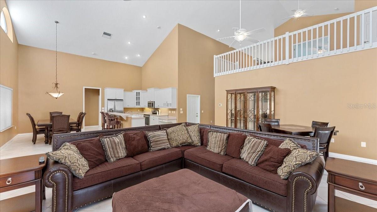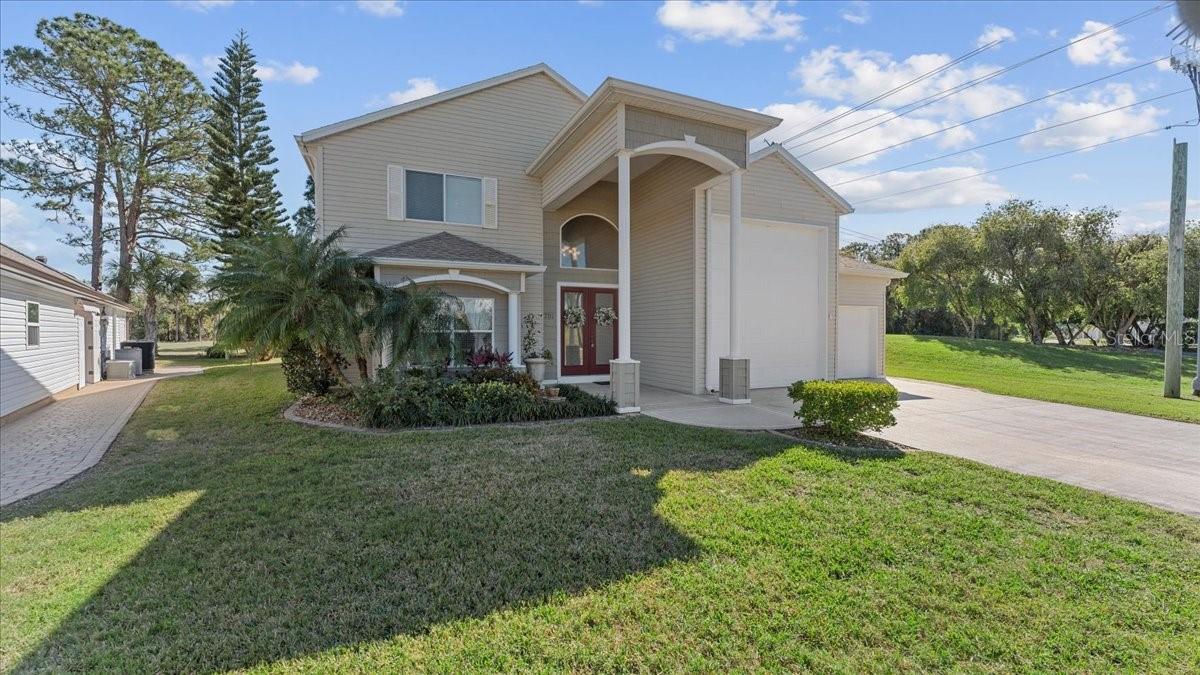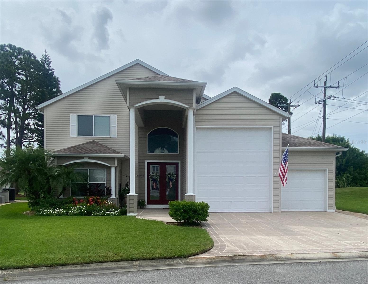 Experience the perfect blend of elegance and functionality in this 3-bedroom 3-bathroom home nestled along the golf course on an exclusive corner lot. The soaring 22ft high ceilings in the main living area create an inviting light-filled spaced while the loft provides a flexible bonus area for relaxation and entertainment. The 50ft enclosed Sunroom with its nature views comes with its own cooling/heating unit while the 48ft enclosed garage with RV hookups is ideal for RV enthusiasts and/or several personal vehicles. Amongst recent updates is a new roof in August of 2023! All furnishings pictured (including washer, dryer and TVs!) make your move a smooth turnkey transition into your ''dream come true'' resort living!