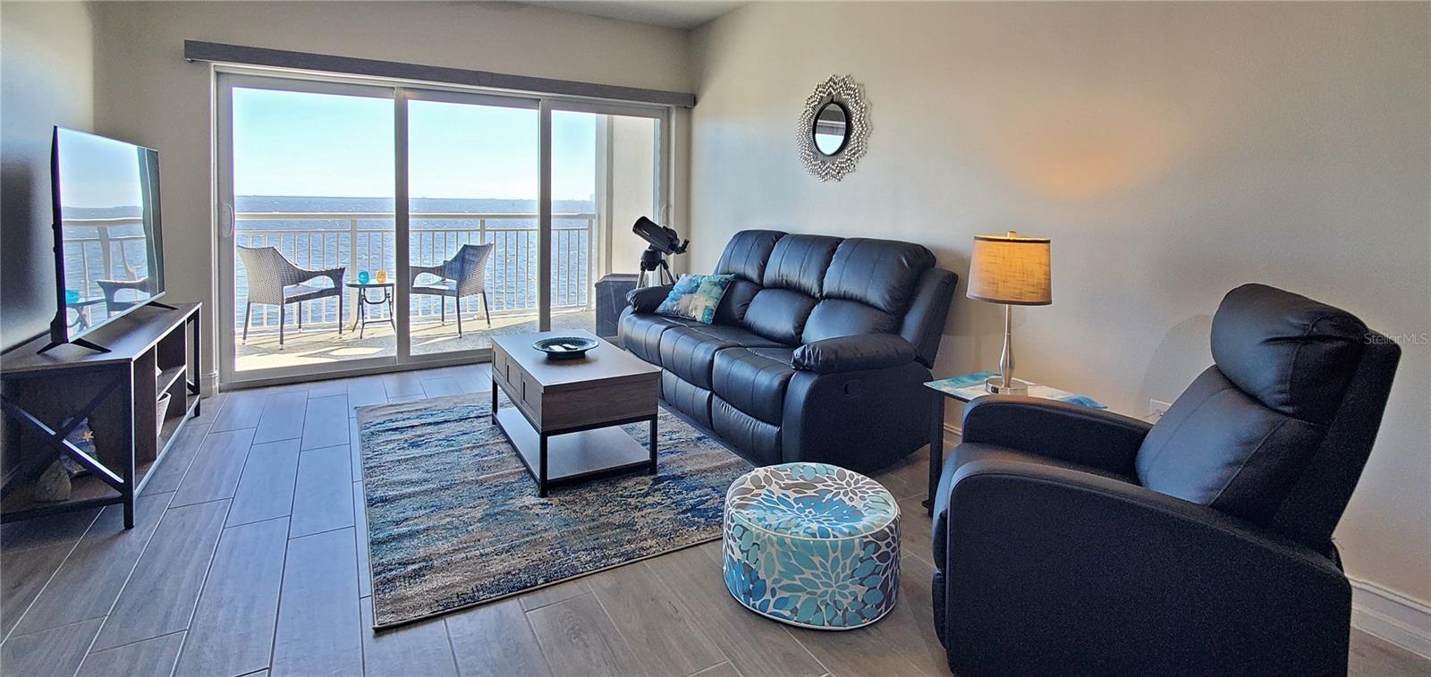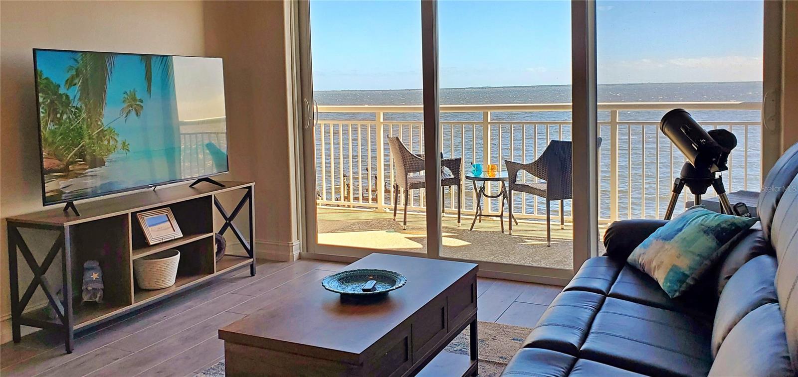 Best 3 Bedroom Direct Waterfront Value in the New River Palms Riverfront Luxury Condominium • Stunning Panoramic Indian River- Intracoastal Waterway Views from Master and Living Areas • Enjoy Unforgettable Sunrises from the Private Waterfront Balcony with VIP Seats to all the Kennedy Space Center NASA, Blue Origin and SpaceX Rocket Launches • Rare 'E' Model 3 Bed 2 Bath Floor Plan built in 2023 with only Part-time Occupancy • Light Bright Kitchen with White Shaker Cabinetry, Granite and Upgraded GE Stainless Appliance Package • Spacious Master Suite with River View and Luxury Bath • Effortless Remote Power Blinds • Driftwood Style Plank Tile Flooring Throughout • In Unit Laundry Room with Washer and Dryer • 8'8" Ceilings • Furnishings Available • Heated Community Pool with Ample Decking Overlooks the Indian River • Community Clubroom with Kitchen • Fitness Room • Secured Lobby Entrance with 2 Elevators • EZ Walk-up to Second Floor • Enclosed Parking Garage with Dedicating Parking • Reasonable Association Fee with Cable, Internet and Water Included!