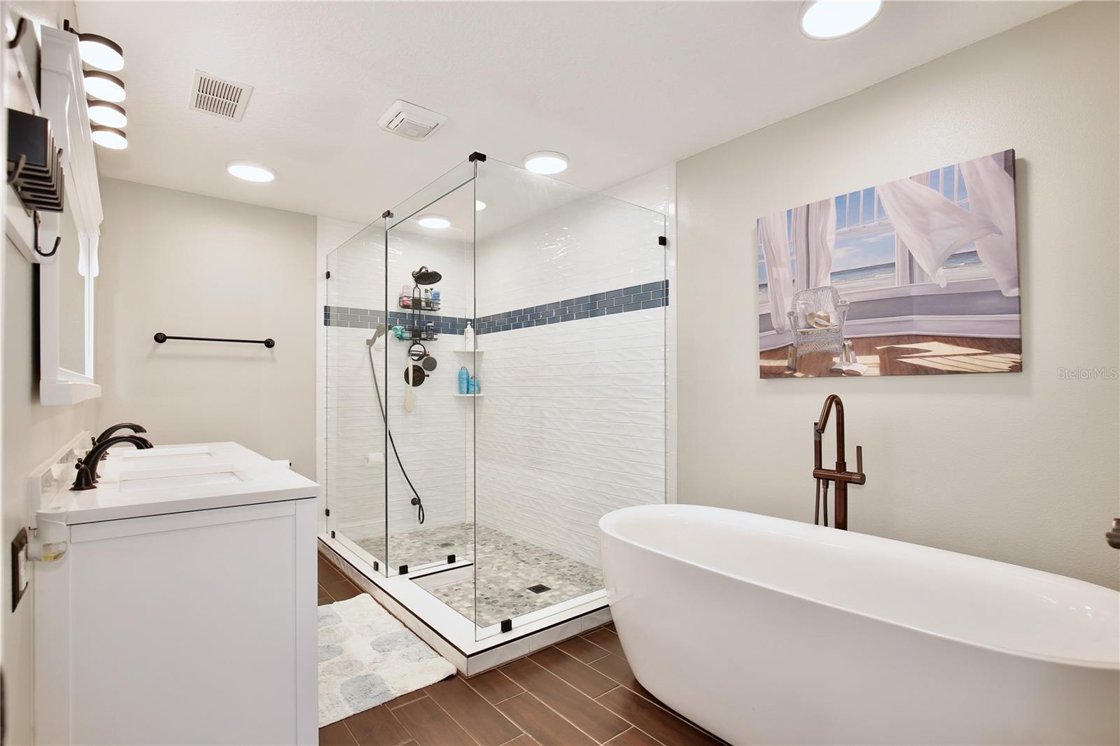 Introducing an exceptional opportunity to own a meticulously maintained townhome nestled at the edge of a serene green belt. Boasting 3 bedrooms and 2 bathrooms. This end unit residence is just what you have been looking for. The entire home recently underwent a stunning transformation, featuring wood plank tile floors that exude warmth throughout. As you enter the gated private courtyard, you have separate access to a private laundry room connected to an oversized two car garage. The main entrance opens up to the kitchen, which showcases new upgraded appliances including all new cabinet. Every detail has been reimagined with the chef in mind, from solid wood soft-close drawers to butcher block countertops. The living room and dining room all. Flow seamlessly to the back screened in patio. The primary suite is a peaceful sanctuary with an updated bathroom. Second bedroom surprises with 3 windows allowing plenty of natural light. The second bathroom was also remodeled with a contemporary look. All 3 bedrooms are large and can accommodate long sized beds. This carefully upgraded townhome offers you the chance to experience luxury living at an affordable price.