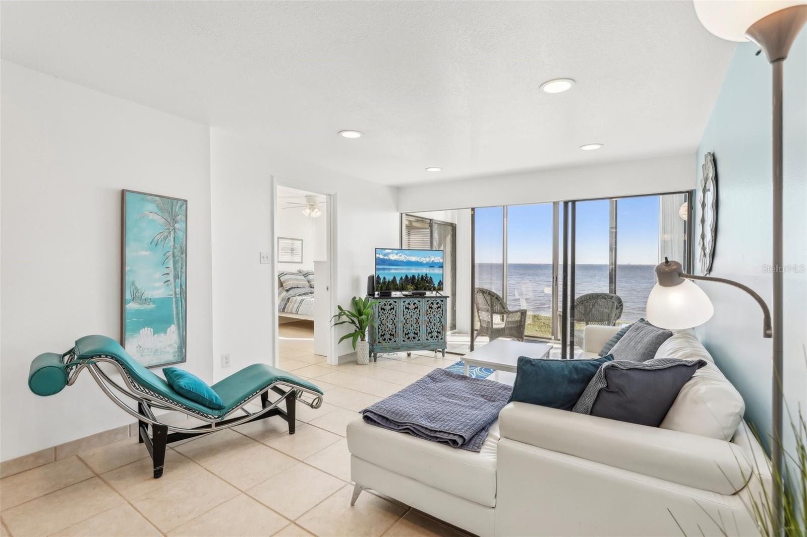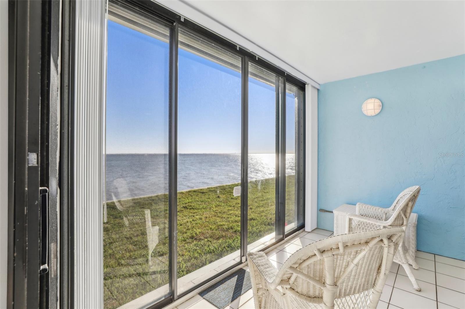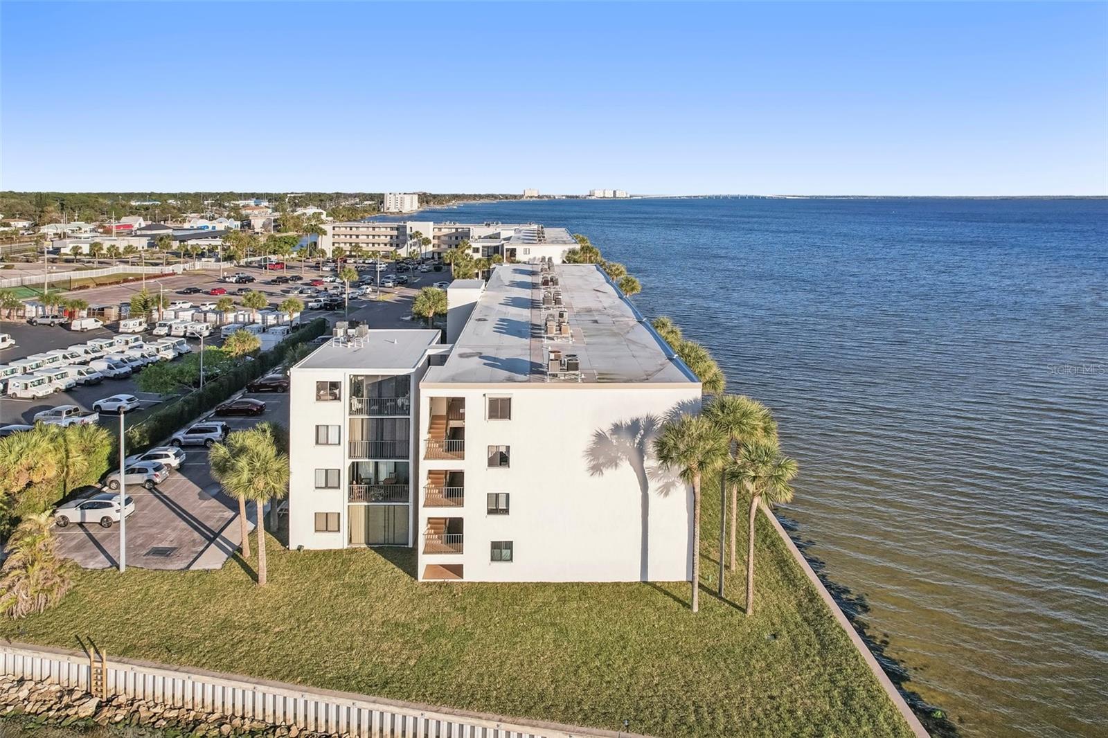 Enjoy the serene beauty of waterfront living in this charming 2-bedroom, 2-bathroom condo at Pelican Point. Situated on the Indian River, this home offers picturesque views where you can watch dolphins play, shorebirds soar, and even rocket launches in the distance—all from the comfort of your own wicker-furnished sunroom. Inside, the condo boasts a fully updated kitchen with sleek stainless steel appliances and modern fixtures throughout. The kitchen and bathrooms were thoughtfully upgraded in 2025, blending modern style with everyday functionality. For added peace of mind, this home is equipped with power roll-down hurricane shutters, providing extra security and protection during storm season. Community amenities ensure a lifestyle of relaxation and convenience, with Wi-Fi, cable, and water included. Take advantage of the laundry facilities just across the hall—like having your own laundry room! Also, enjoy your own assigned parking space and the added security of gated access. For outdoor enthusiasts, enjoy the heated pool, tennis courts, and pickleball courts. This condo combines comfort, convenience, and stunning views, making it the perfect place to call home. Don't miss out on this rare opportunity to live in Pelican Point—schedule your showing today!