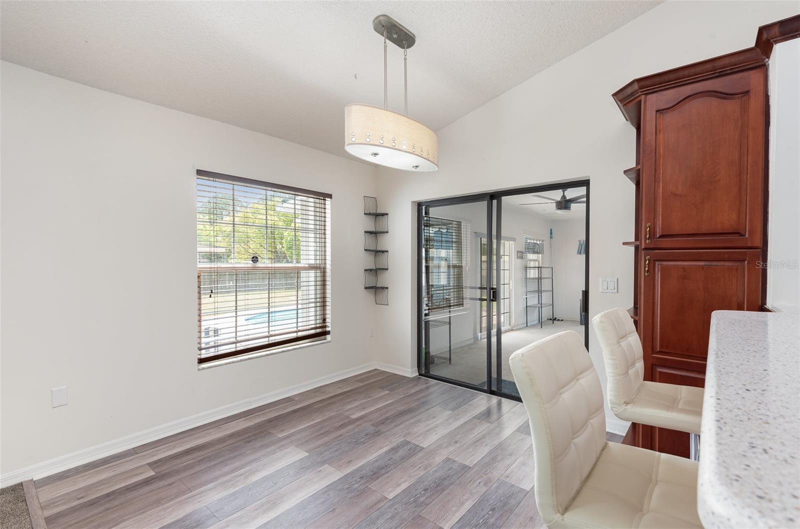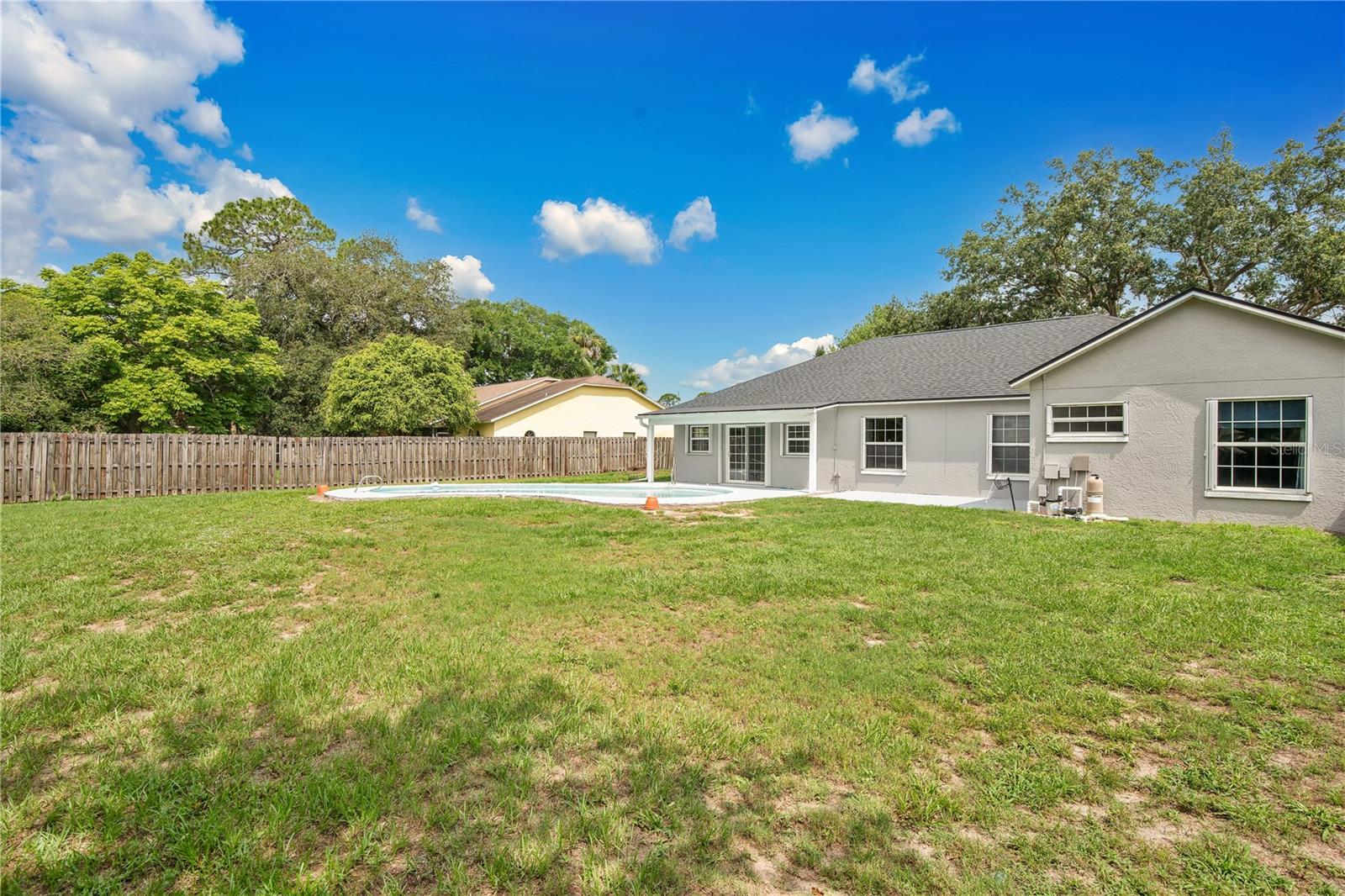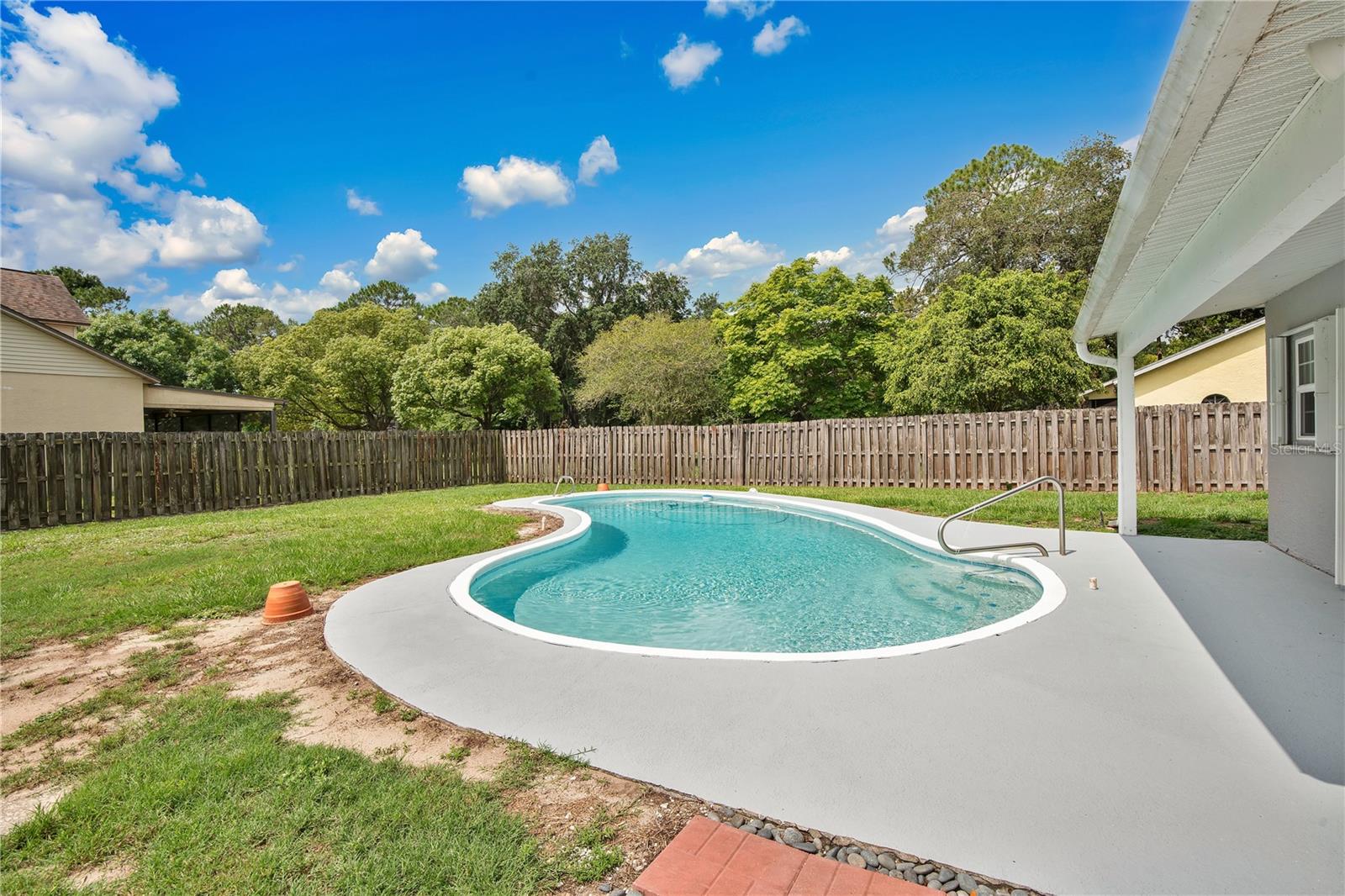 *** Motivated Seller *** Brand New Price!! Spacious 3 Bedroom 2 bathroom 1 story 1985 sqft Titusville home with large fenced in back yard on a corner lot with a pool in a sought-after neighborhood. Close to the coast and I-95. Open floor plan eat-in kitchen with engineered wood flooring and Silestone counters and attached family room. Formal dining room with engineered wood flooring and new light fixture connects to living room with bay windows. Split design with 2 bedrooms and a bath on one side of the house, great for guests. Large primary bedroom has an ensuite, tile shower with double vanity. Chlorine pool with large pool deck has southern exposure for maximum sun. Backyard is fenced completely. Hurricane shutters all around to protect your investment. New Roof in 2023. Newer AC. Water heater is 1 year old. Washer and Dryer is staying. TVs in bedrooms stay. Watch rocket launches from your new home!