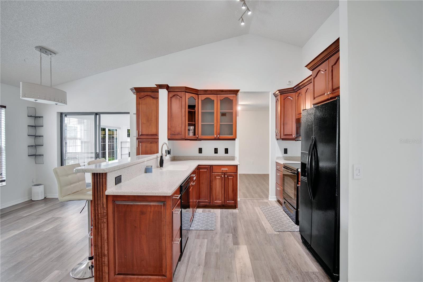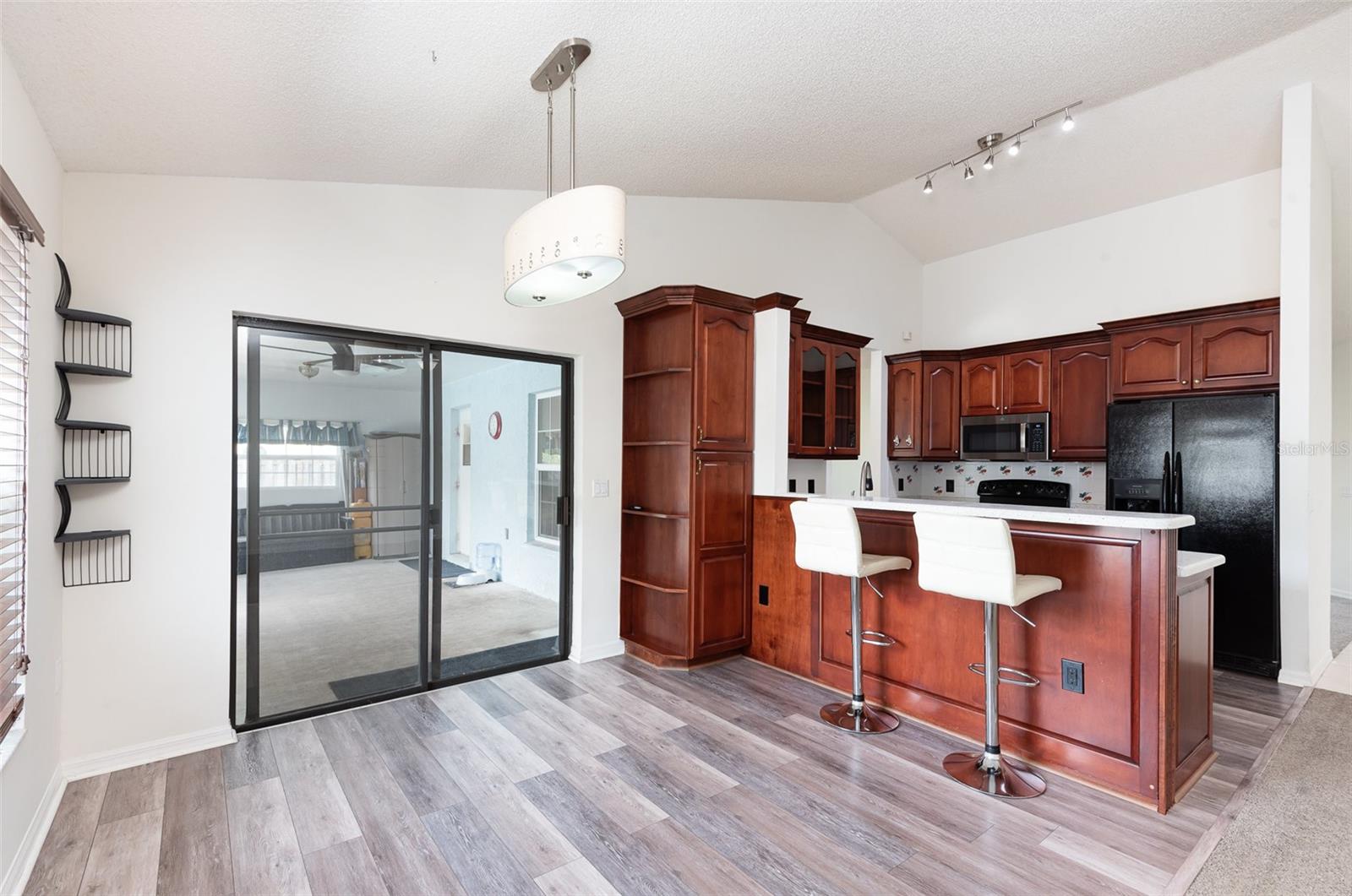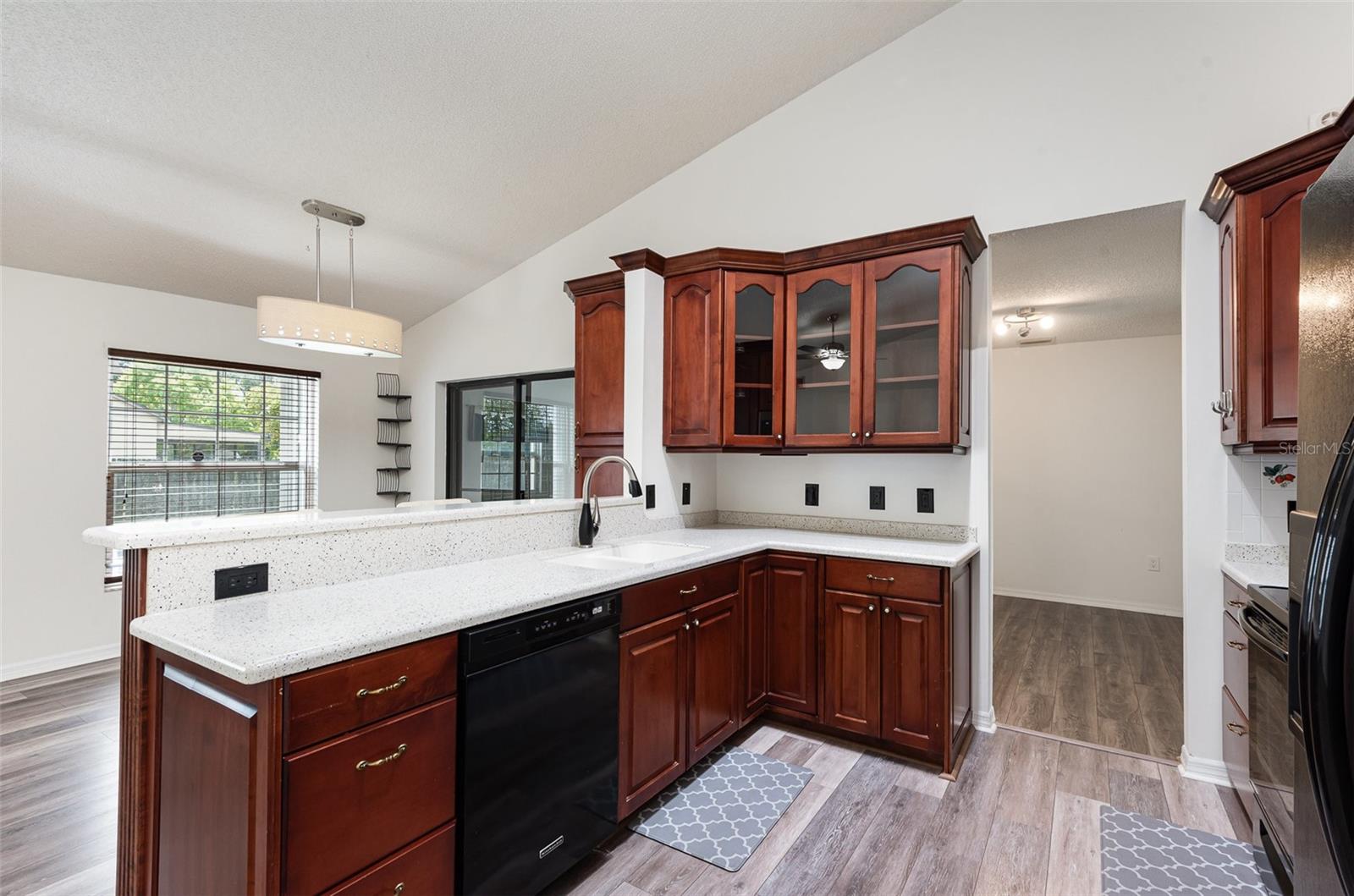 *** Motivated Seller *** Brand New Price!! Spacious 3 Bedroom 2 bathroom 1 story 1985 sqft Titusville home with large fenced in back yard on a corner lot with a pool in a sought-after neighborhood. Close to the coast and I-95. Open floor plan eat-in kitchen with engineered wood flooring and Silestone counters and attached family room. Formal dining room with engineered wood flooring and new light fixture connects to living room with bay windows. Split design with 2 bedrooms and a bath on one side of the house, great for guests. Large primary bedroom has an ensuite, tile shower with double vanity. Chlorine pool with large pool deck has southern exposure for maximum sun. Backyard is fenced completely. Hurricane shutters all around to protect your investment. New Roof in 2023. Newer AC. Water heater is 1 year old. Washer and Dryer is staying. TVs in bedrooms stay. Watch rocket launches from your new home!