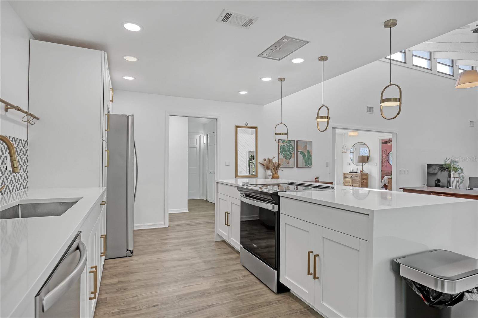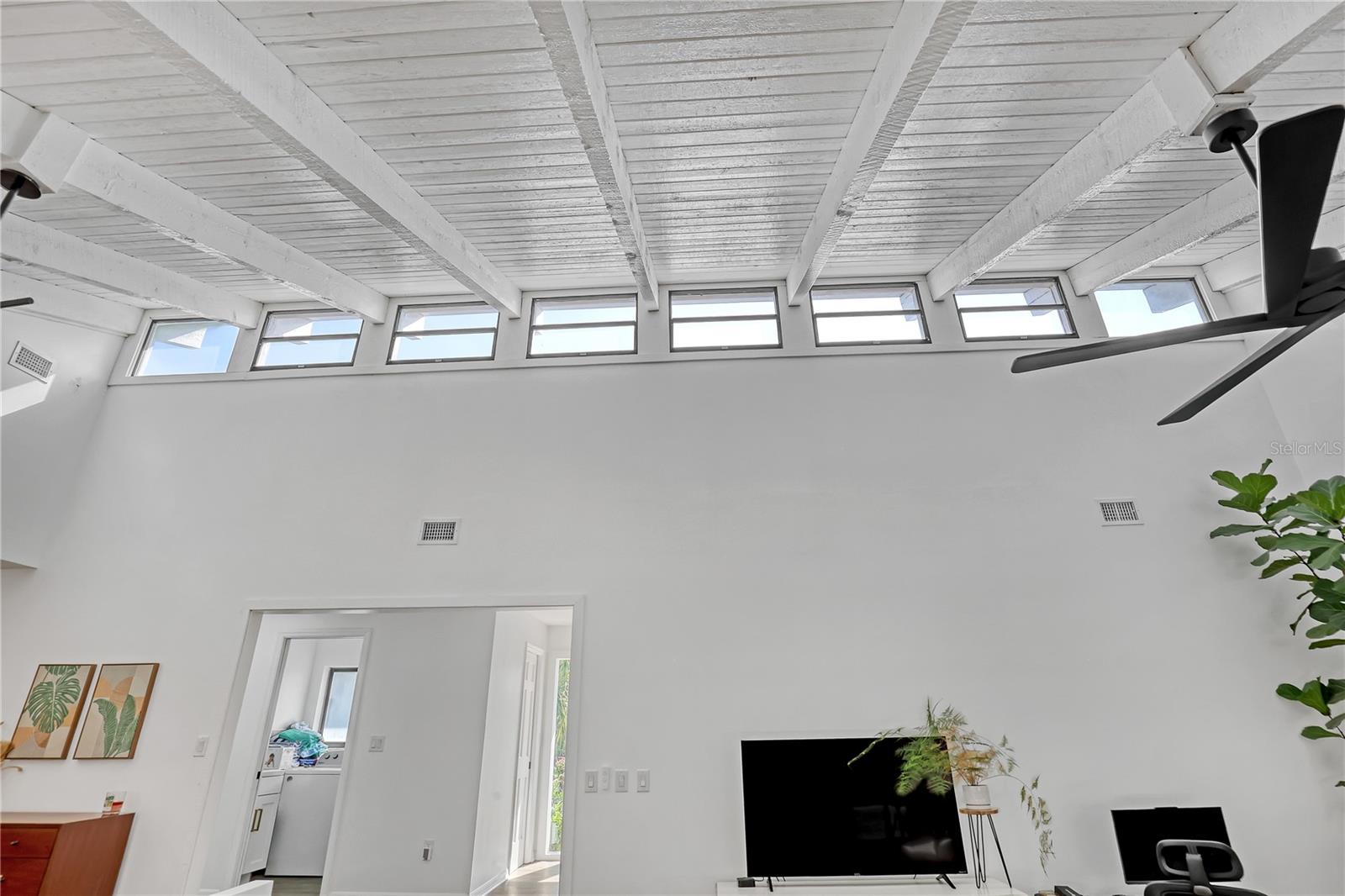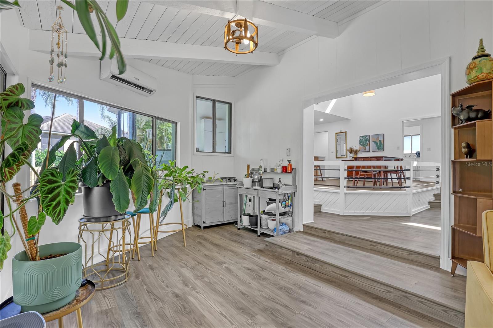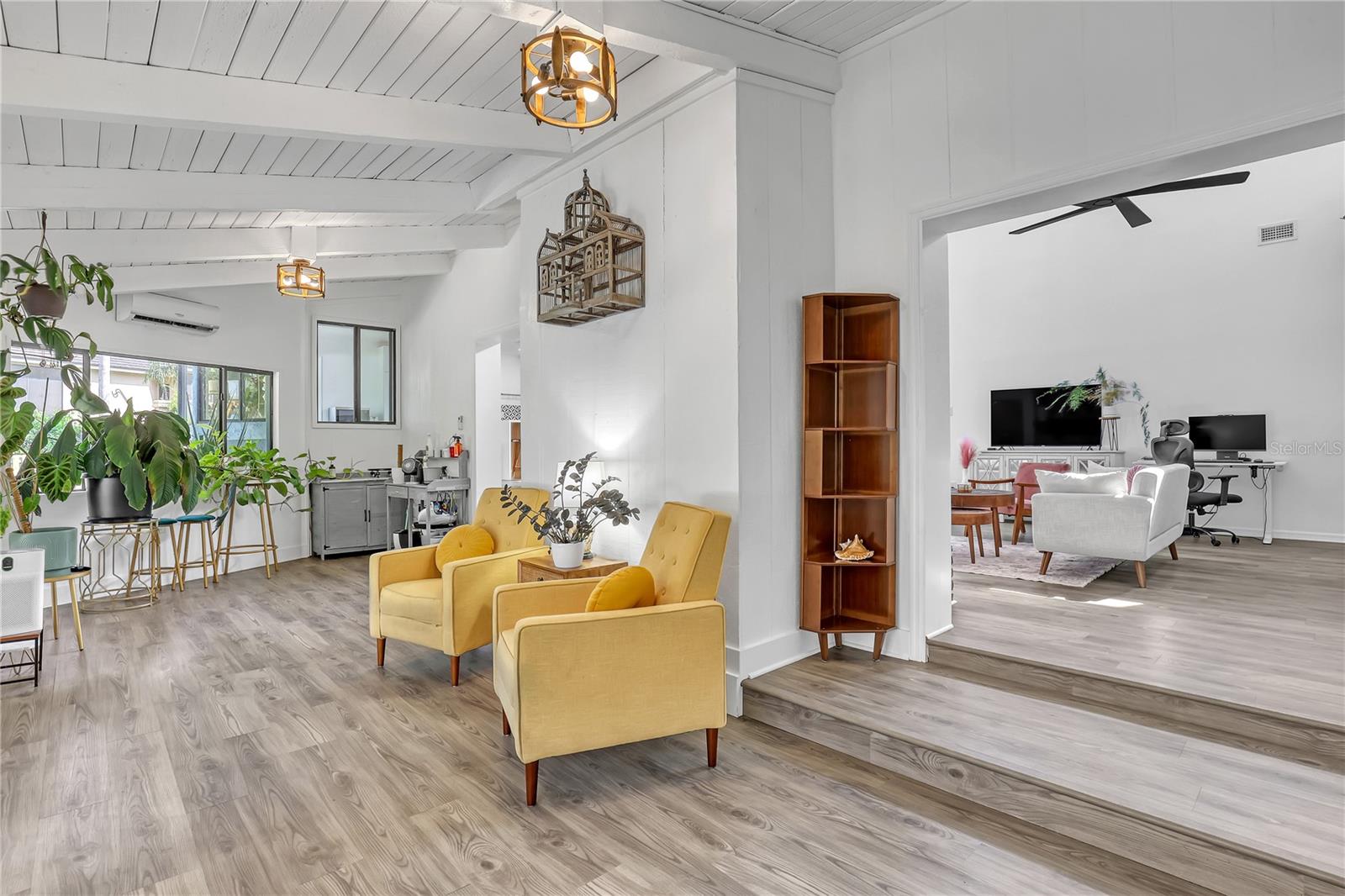 Watch live rocket launches from NASA Kennedy Space Center, relax on the beautiful beaches nearby, and explore historic Titusville! Welcome to this gorgeous, fully renovated MCM-style home featuring a newer roof (2022) and soaring vaulted ceilings, exposed wooden beams, and walls of windows that flood the space with natural light. The open floor plan offers 3 bedrooms plus a bonus room, two dining areas and a chef's kitchen with a large island, quartz waterfall countertops, modern marble backsplash, and elegant gold accents. Step outside to your private oasis: a completely refinished Saltwater pool with a tranquil waterfall feature, surrounded by a covered sitting area—perfect for entertaining or relaxing. 3-car garage with high ceilings and a spacious concrete patio—ideal for working on vehicles or extra parking 3 driveways for easy access and ample guest parking Balcony off the owner's suite with private views Newer kitchen, appliances, flooring, paint, and bathrooms. High-end finishes throughout and more!