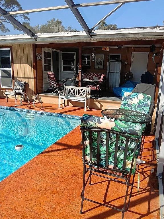 At the very end of a secluded roadway sits a private 1.61-acre retreat offering space, security, and flexibility rarely found this close to town. Surrounded by open land and mature surroundings, this solidly built concrete block residence delivers three bedrooms and three full baths with a layout designed for comfort and function. Natural light fills the main living area through expansive windows that frame wide, uninterrupted views of the property. The kitchen serves as the heart of the home with marble surfaces, updated appliances, and generous workspace. Wood flooring extends throughout, and each bathroom features modern walk-in showers for a clean, streamlined feel. Outdoors, the setting transforms into your own recreational compound. A 40' x 15' pool with dedicated heat pump allows for extended seasonal use, while the covered porch provides the perfect vantage point to enjoy the peaceful surroundings. The detached oversized garage/workshop, additional covered parking, new asphalt drive, and secure sliding gate create both convenience and privacy. Infrastructure updates include a 2018 roof, new 4" gutter system, front and back door Ring cameras primary and backup wells, and dual septic systems — offering long-term practicality and independence. The acreage provides room for expansion, additional structures, RV/boat storage, or other future possibilities (buyer to verify). Located just moments from Parrish Medical Center, Marina Park, and US-1 access, this property combines privacy, land, and accessibility in one distinctive offering.