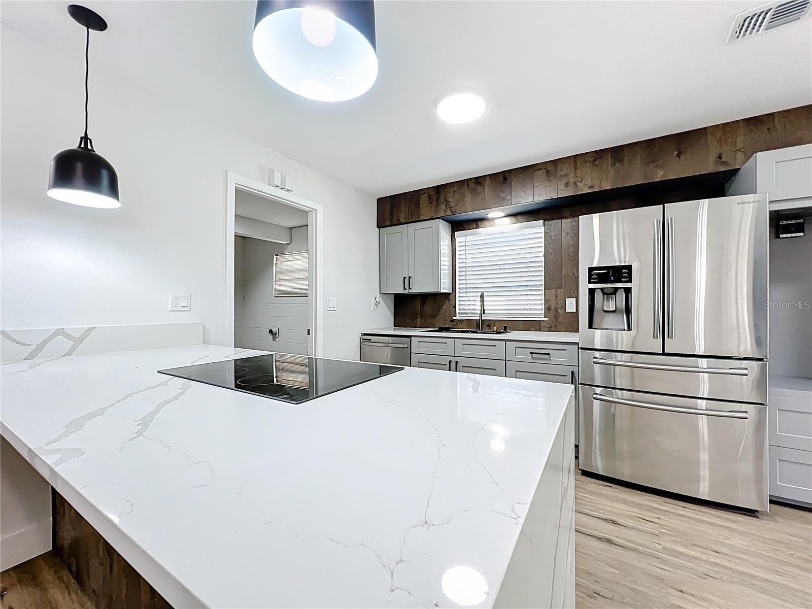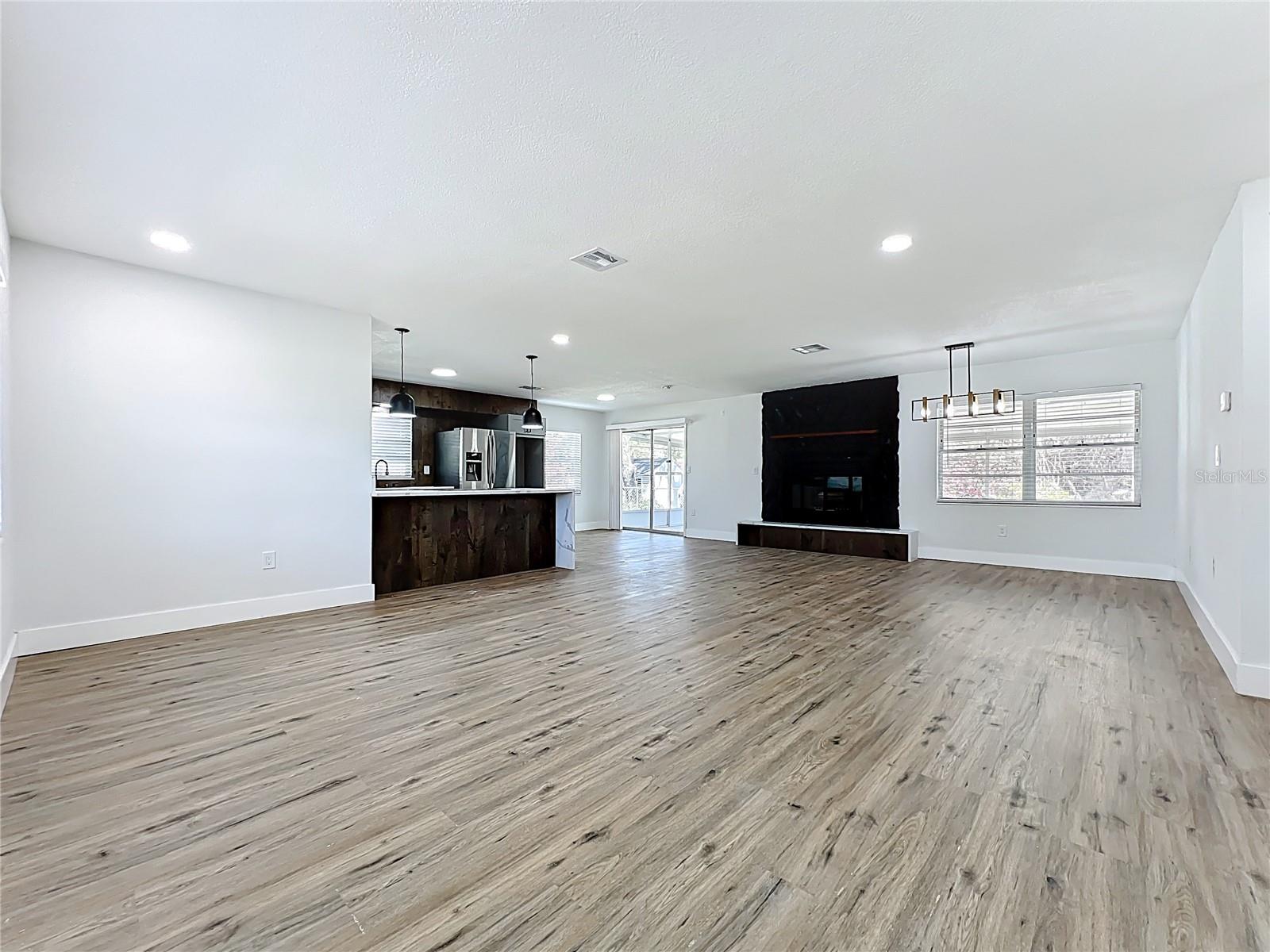 Fully renovated 4-bedroom, 2-bath home located in a quiet Titusville neighborhood on Florida’s Space Coast. This move-in ready property features an open floorplan with modern white, black, and wood-tone finishes, brand-new cabinets, stainless steel appliances, and luxury vinyl flooring throughout. The spacious living area includes a cozy wood-burning fireplace, perfect for everyday living and entertaining. Enjoy added privacy with no rear neighbors and a screened-in porch ideal for relaxing outdoors. The backyard offers a storage shed and plenty of space to enjoy. A covered carport and extended driveway provide ample parking. Conveniently located just minutes from Kennedy Space Center, Port Canaveral, area beaches, parks, shopping, dining, and easy access to Orlando—perfect for first-time buyers seeking value and location.