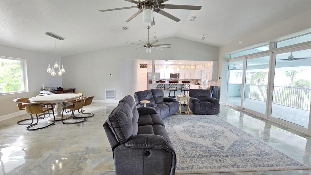 Auction Property. This spacious 4 bedroom, 3.5 bath home offers 4,776 sf under roof and 3,016 sf of living area, recently remodeled with high-end finishes and new A/C systems. The property includes a heated pool with a tiki bar, two stacked screened porches, and a three-bay metal building with six tall doors, ideal for contractor equipment, collector cars, or RV storage. Designed for scenic views, the home features pocket sliding doors that open onto screened porches, creating a seamless indoor/outdoor living experience. The luxurious master suite includes a double-head walk-in shower, soaking tub, and sitting area with oversized windows. Additional features include epoxy floors, upgraded kitchen, designer metal stairways, a gas fireplace with ambient lighting, hurricane impact windows, and a smart climate control system with a Google Nest thermostat. A 4 point inspection has been completed for this home. This property is one of four available on this coveted street and located just minutes from Playalinda Beach and 33± miles from the Orlando International Airport (MCO) and 42± miles from the Daytona Beach International Airport (DAB). Property #: DG1444. 10% Buyer's Premium.