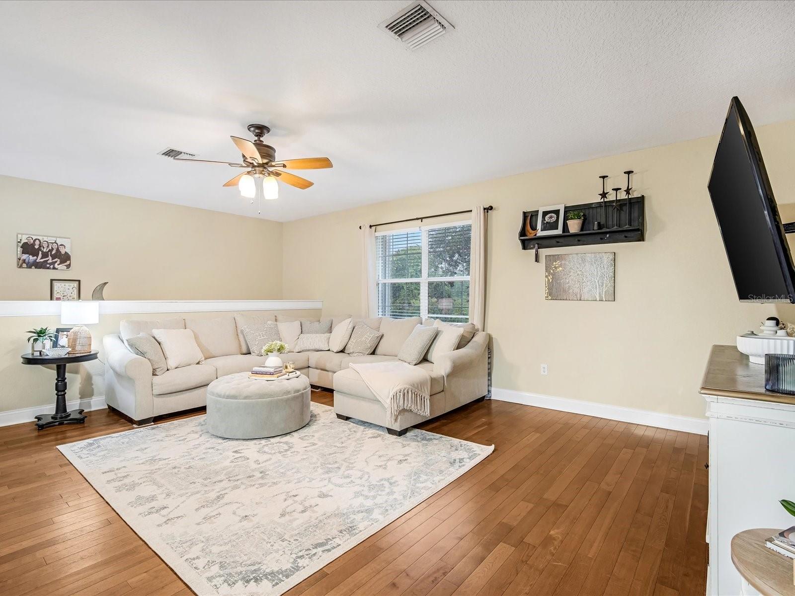Discover this custom-built solid concrete home with 6 bedrooms and 3 bathrooms, perfect for families seeking spacious living. The first floor features a well-appointed kitchen, a primary bedroom with an ensuite bath, a dining room, two additional bedrooms, and a family room, all highlighted by elegant red oak hardwood flooring. The lower level offers a basement feel with three more bedrooms, another family room, a dedicated theater room, and a secure poured concrete safe room. Modern smart technology is wired throughout the home. Additional highlights include the wooded area out back making it a private back yard, two-car garage on the main level and a convenient carport on the side. The roof and water heater were both updated in 2023. Ideally located close to I-95, schools, shopping, and beaches, with Orlando theme parks just a 40-minute drive away.