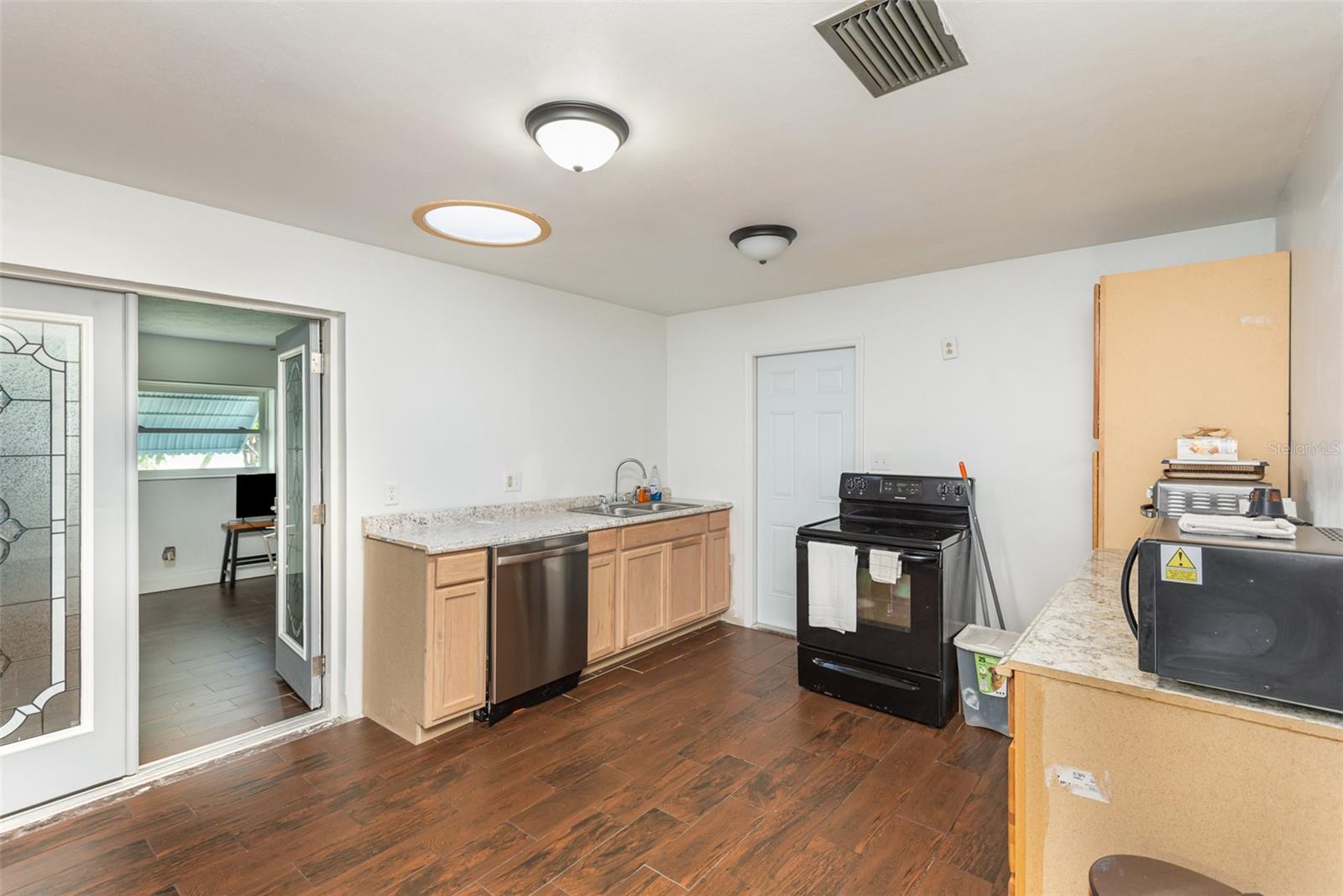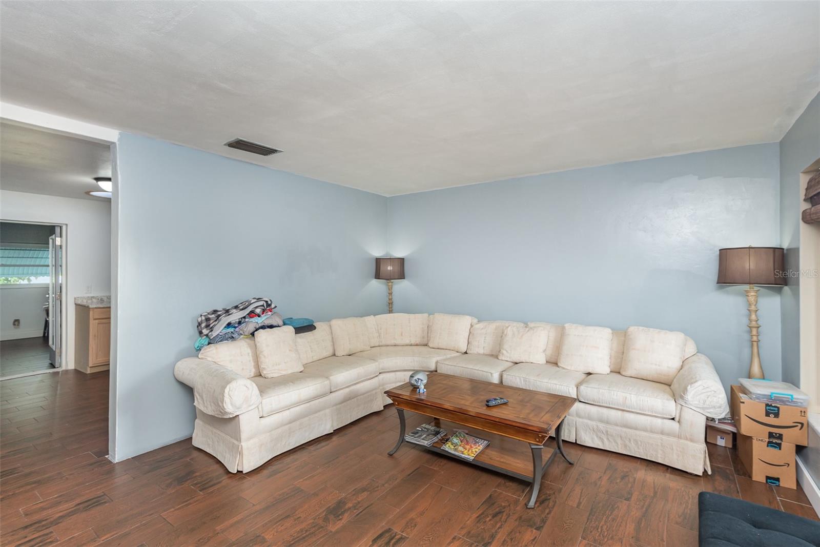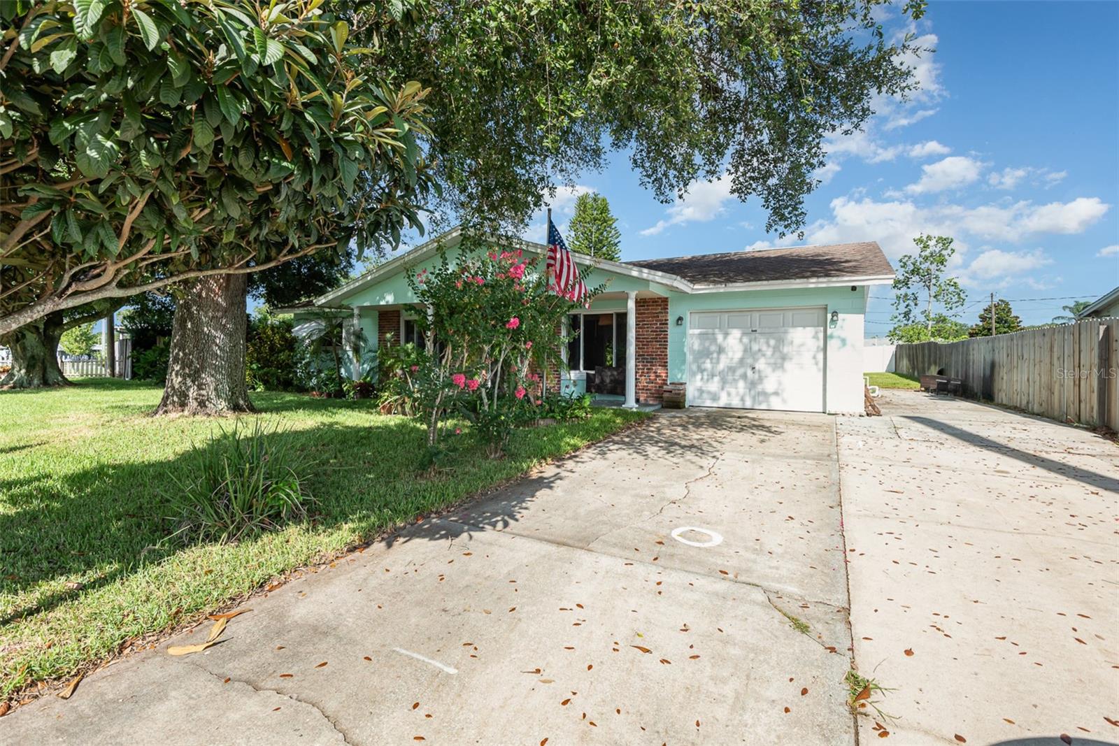 Welcome to this delightful 4-bedroom, 2-bathroom home nestled on a .25-acre lot in the heart of Titusville. This centrally located property offers a spacious living room and a versatile family room, currently utilized as a fourth bedroom complete with a large walk-in closet. The eat-in kitchen and ceramic tile flooring throughout enhance the home's welcoming atmosphere. Recent updates include a new roof (2019), A/C unit (2017), and fresh blown-in insulation (2022). All cast iron plumbing has been replaced with durable PVC, and new wood plank tile floors have been installed throughout. One bathroom has been tastefully remodeled for your convenience. Additional features include a sprinkler system on a well, a one-car garage, and a fenced yard providing privacy. The expansive yard is perfect for storing your RV or boat, and the garden is a true oasis, boasting two mango trees, avocado, banana, mandarin orange, blackberries, pineapple, & cilantro. Conveniently located near I95, Hw50 & US1