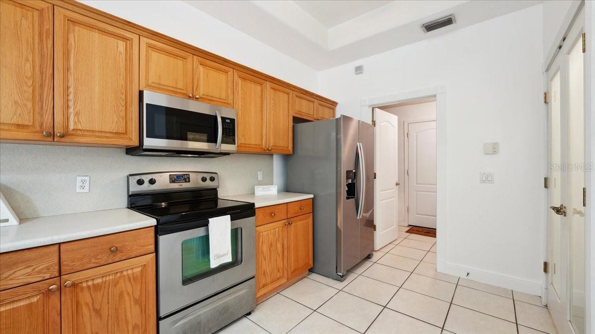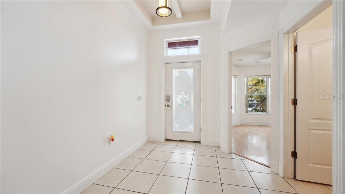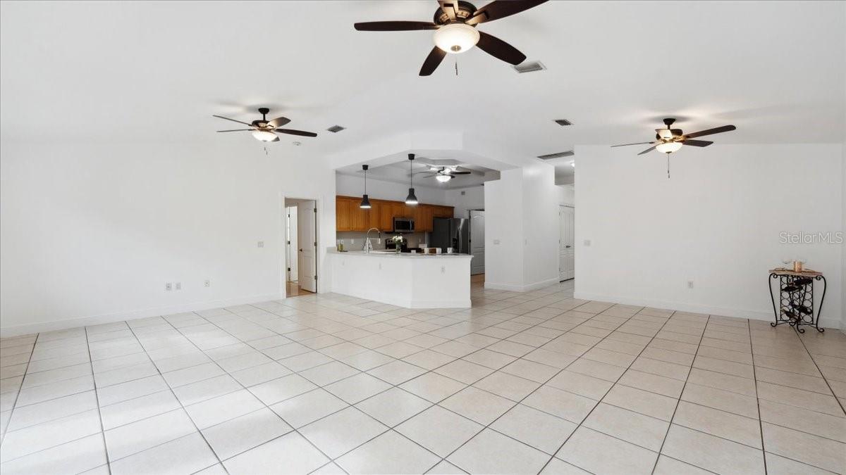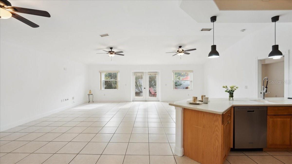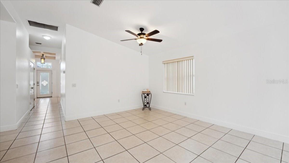 Damar built 3 bedroom 2 bathroom home tucked away in a cute community. Step through a stunning entrance featuring a transom window and etched glass, then look up at the coffered ceiling. Great room with vaulted ceilings is open to large kitchen. Kitchen boast a bar area for extra seating, stainless steel appliances and glass, etched, french door pantry. Gorgeous coffered ceilings in the kitchen adds depth and elegance. French doors off of the family room . Primary has jacuzzi tub, separate shower and walk in closet. NEW ROOF 2023 AND NEW AC (TRANE) 2022. OVERSIZED BOAT GARAGE (23X27) OR SMALL RV with custom built in storage loft. Inside laundry room. The back patio area is very quaint, you can sit around the cozy firepit .Paved driveway adds personality!! County water is very nice!!