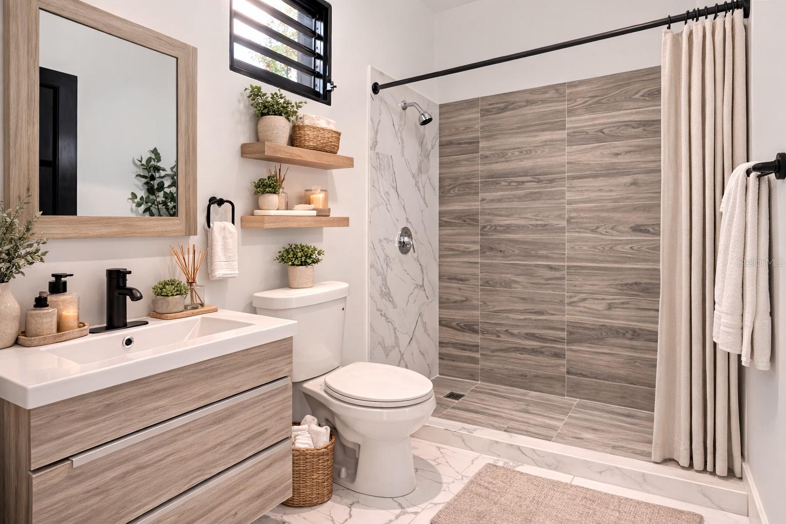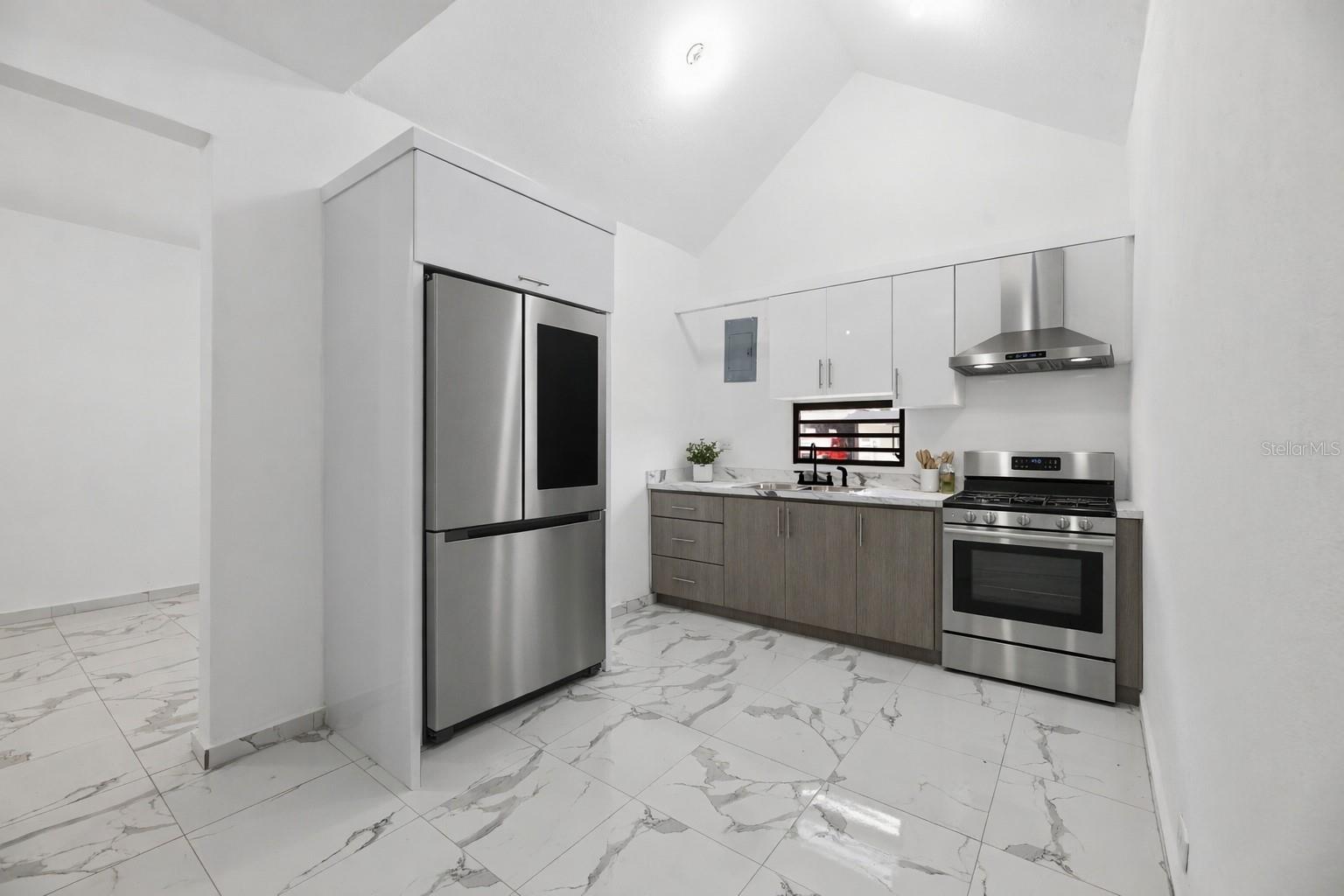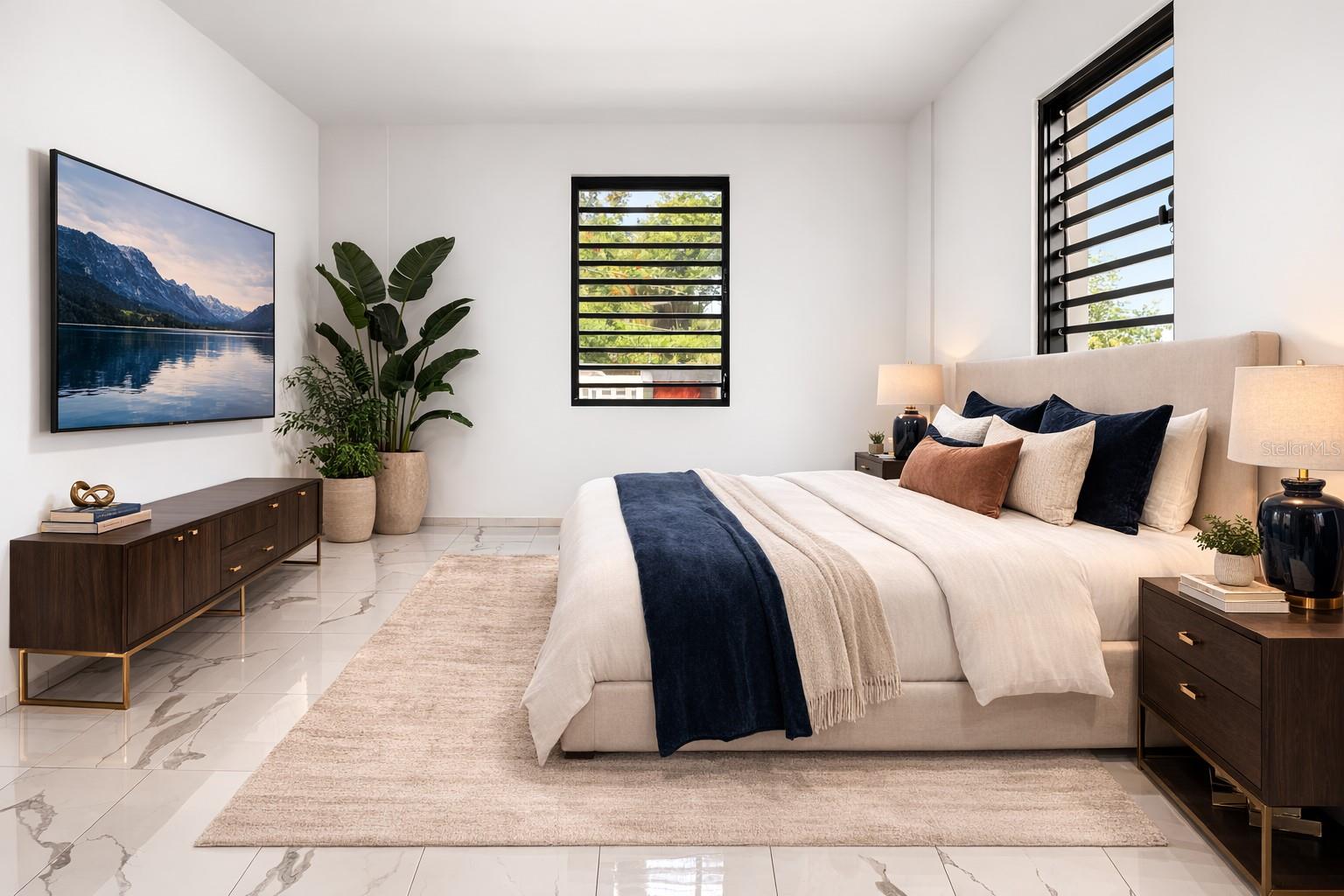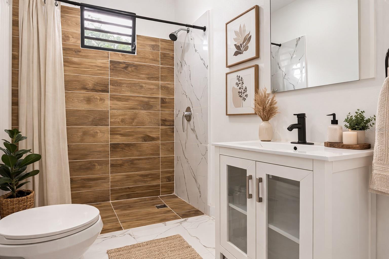 Modern Luxury in Toa Alta Experience contemporary living in this completely renovated residence. This move-in-ready home features a sleek aesthetic and updated infrastructure, including electrical systems and plumbing. The interior boasts expansive, oversized designer floor tiles throughout, complemented by new modern windows and stylish aluminum doors. The kitchen and bathrooms feature custom cabinetry and vanities, accented by premium hardware and fixtures. Each bedroom includes new mirrored closet doors to maximize natural light. Outdoor features include a covered carport and a spacious, reinforced concrete terrace. The home is equipped with a new inline water heater and high-end finishes from floor to ceiling. Note: Some images are digitally staged with furniture and appliances for illustrative purposes only.