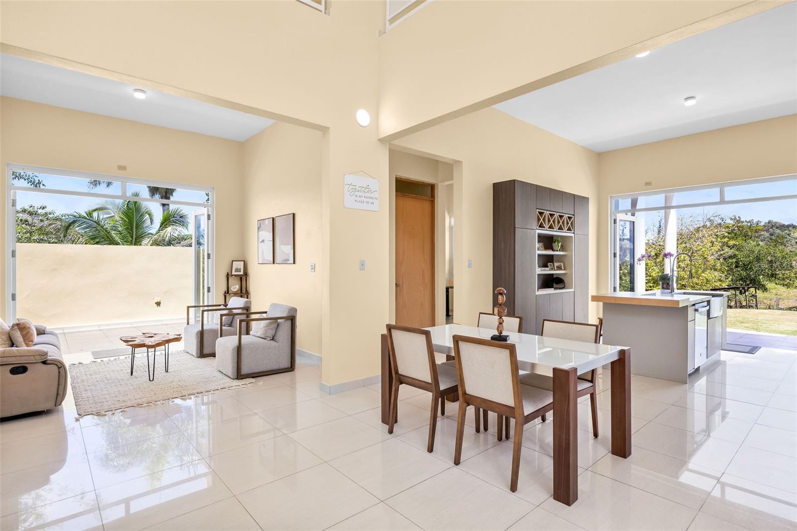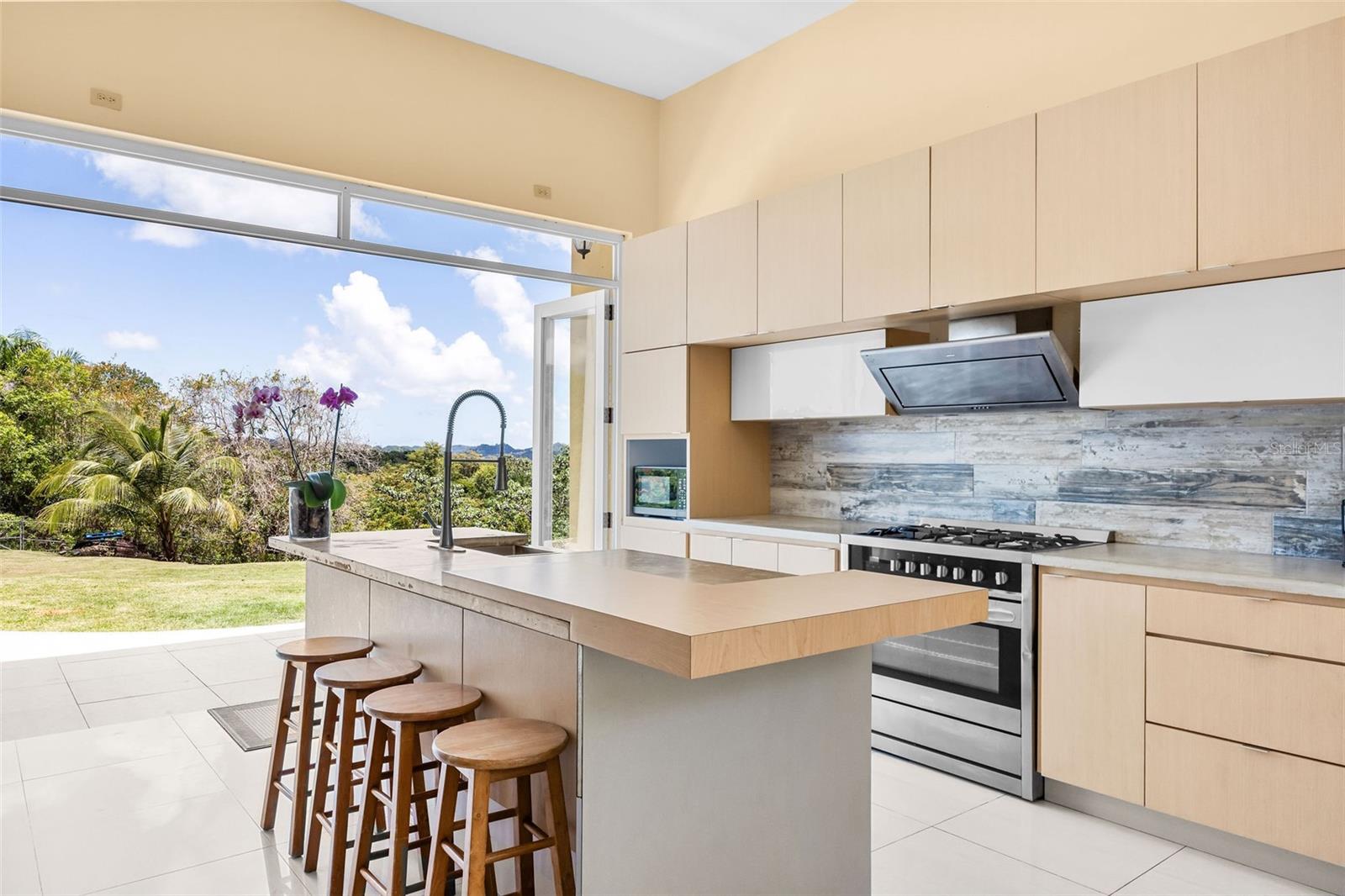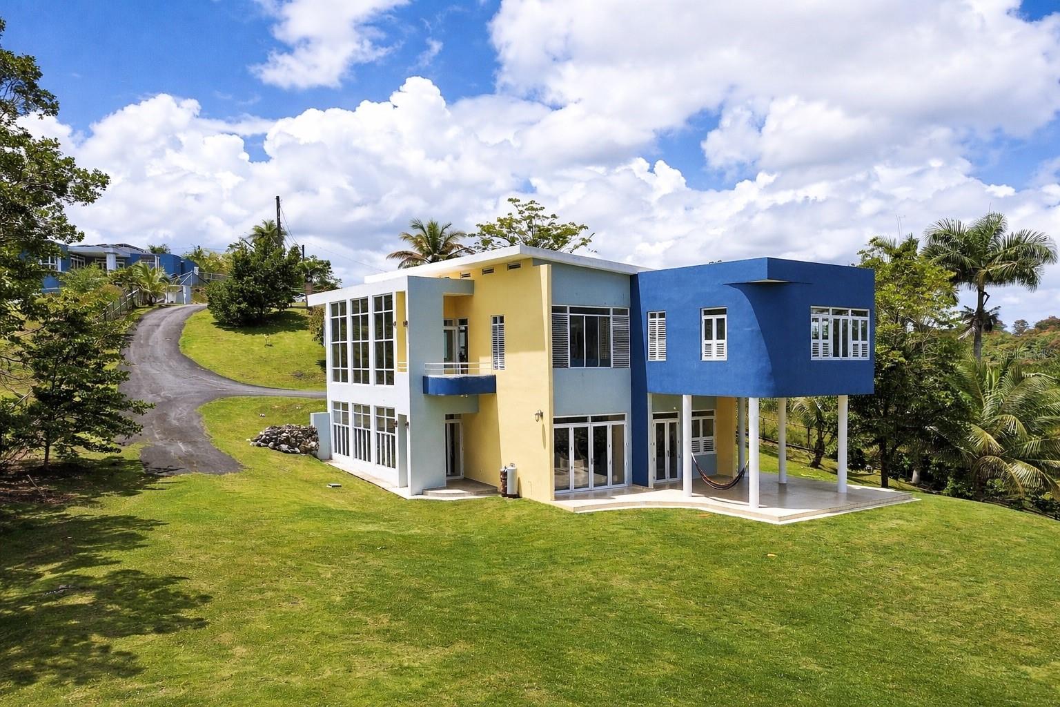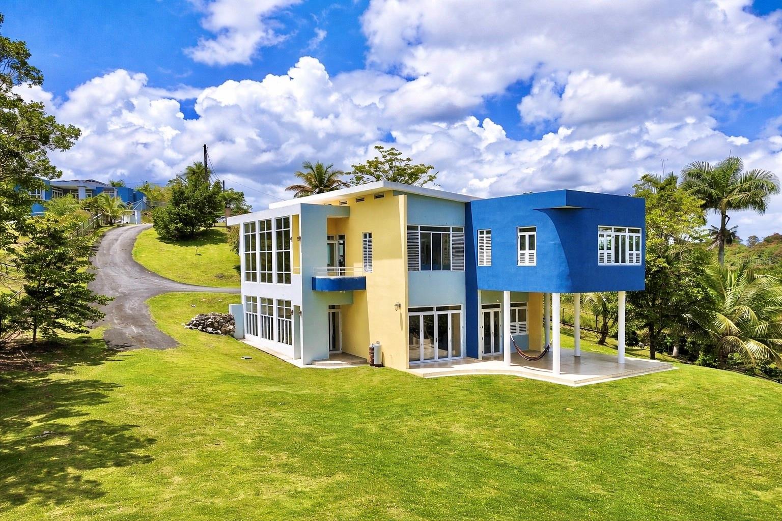 Discover a unique blend of modern design, sustainability, and privacy in this stunning 2015 residence set on 1.47 acres (5,934.89 m²) with breathtaking panoramic mountain views. Boasting over 3,200 square feet of living space, this home features 4 bedrooms and 3 full bathrooms, designed to maximize comfort, natural light, and energy efficiency. From the moment you enter, you’re welcomed by impressive 30-foot ceilings and an open-concept layout that seamlessly connects indoor and outdoor living. The home’s eco-conscious architecture incorporates folding doors, strategically placed high-set windows for heat dissipation, and cross-ventilation—resulting in remarkably low energy consumption, with an average electric bill of approximately $90/month. The property offers two spacious living/family rooms, along with a versatile office or indoor gym space, ideal for today’s flexible lifestyle. The main suite is a private retreat featuring his and hers walk-in closets, while the convenience of a laundry room on the same level as the bedrooms enhances everyday functionality. Step outside and enjoy your own private oasis, complete with a variety of fruit trees including plantain, banana, mango, breadfruit, and coconut, all set against a serene natural backdrop. Additional features includes: a smart home–ready infrastructure with pre-installed cable routing, whole-house surge protection, propane hot water backup, an 800-gallon cistern with demand-driven backup pump, and a solar-powered automatic gate with battery backup. The home is being sold fully equipped with all kitchen and laundry appliances included, along with recent upgrades such as new light fixtures, dishwasher, and refrigerator, making it truly move-in ready. A rare opportunity to own a thoughtfully designed, energy-efficient home that offers space, privacy, and a connection to nature—without sacrificing modern conveniences.