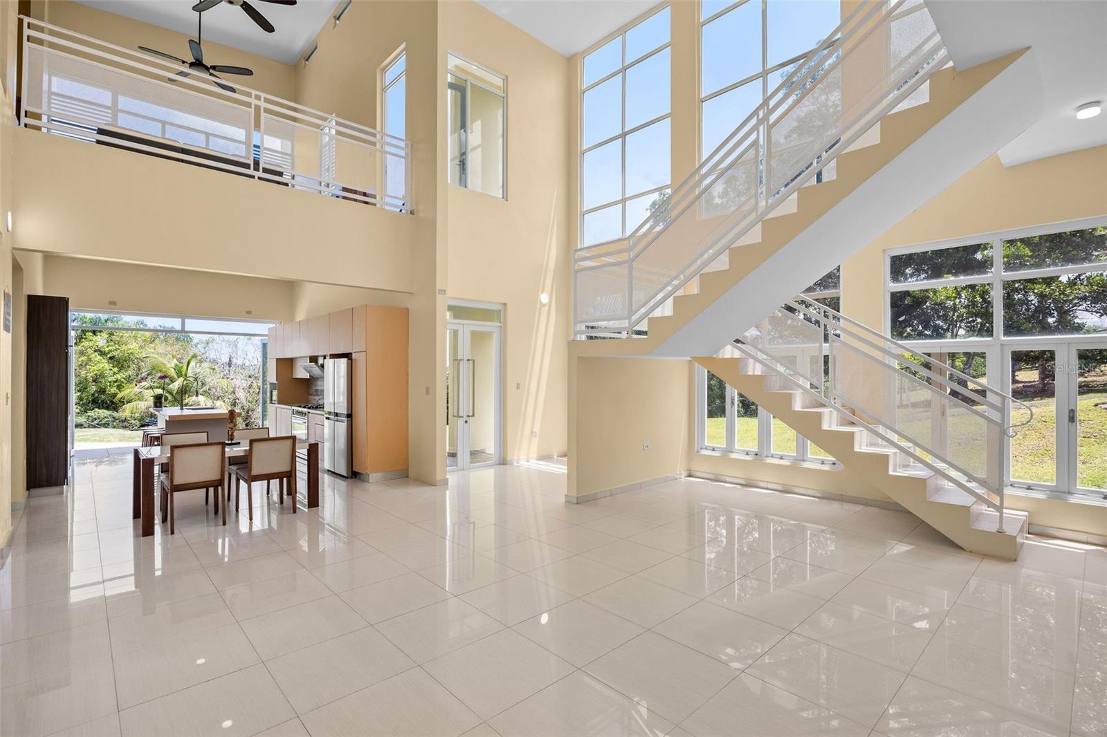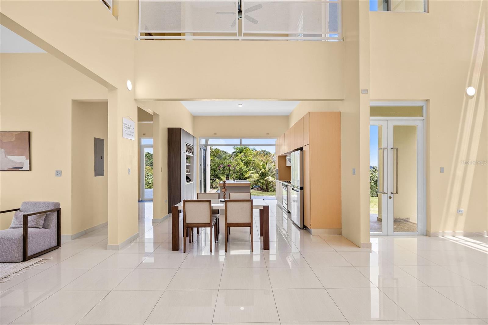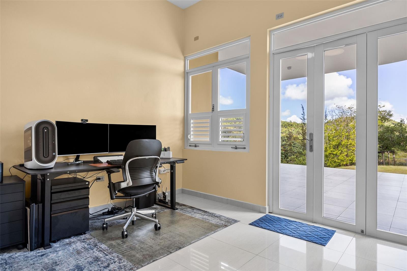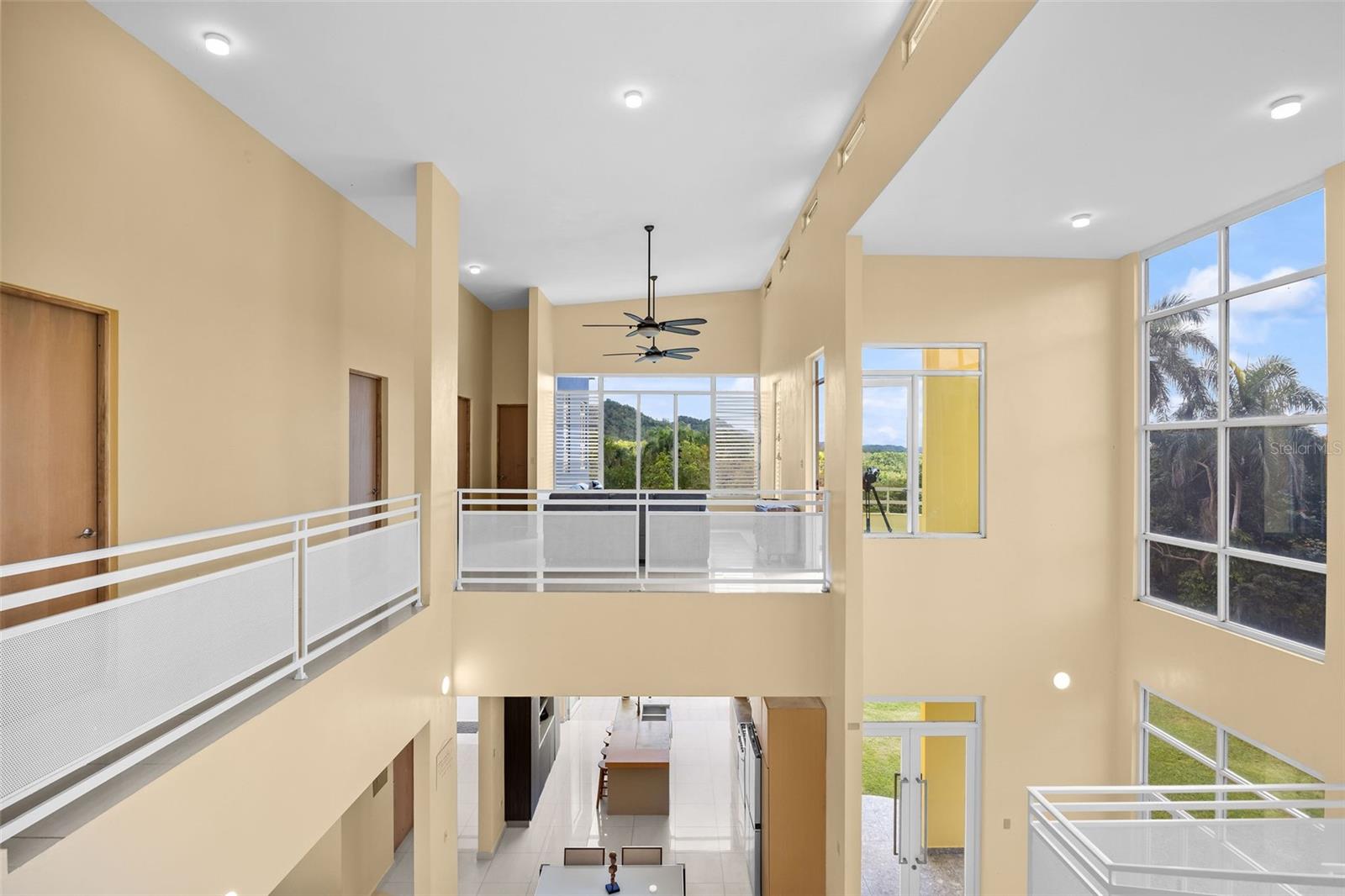 Discover a unique blend of modern design, sustainability, and privacy in this stunning 2015 residence set on 1.47 acres (5,934.89 m²) with breathtaking panoramic mountain views. Boasting over 3,200 square feet of living space, this home features 4 bedrooms and 3 full bathrooms, designed to maximize comfort, natural light, and energy efficiency. From the moment you enter, you’re welcomed by impressive 30-foot ceilings and an open-concept layout that seamlessly connects indoor and outdoor living. The home’s eco-conscious architecture incorporates folding doors, strategically placed high-set windows for heat dissipation, and cross-ventilation—resulting in remarkably low energy consumption, with an average electric bill of approximately $90/month. The property offers two spacious living/family rooms, along with a versatile office or indoor gym space, ideal for today’s flexible lifestyle. The main suite is a private retreat featuring his and hers walk-in closets, while the convenience of a laundry room on the same level as the bedrooms enhances everyday functionality. Step outside and enjoy your own private oasis, complete with a variety of fruit trees including plantain, banana, mango, breadfruit, and coconut, all set against a serene natural backdrop. Additional features includes: a smart home–ready infrastructure with pre-installed cable routing, whole-house surge protection, propane hot water backup, an 800-gallon cistern with demand-driven backup pump, and a solar-powered automatic gate with battery backup. The home is being sold fully equipped with all kitchen and laundry appliances included, along with recent upgrades such as new light fixtures, dishwasher, and refrigerator, making it truly move-in ready. A rare opportunity to own a thoughtfully designed, energy-efficient home that offers space, privacy, and a connection to nature—without sacrificing modern conveniences.