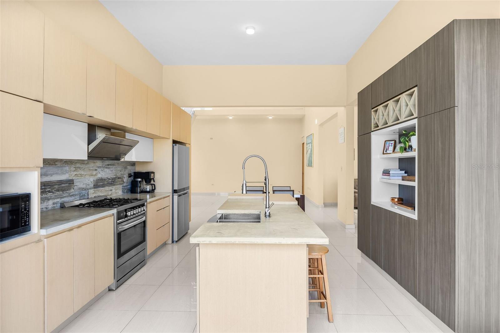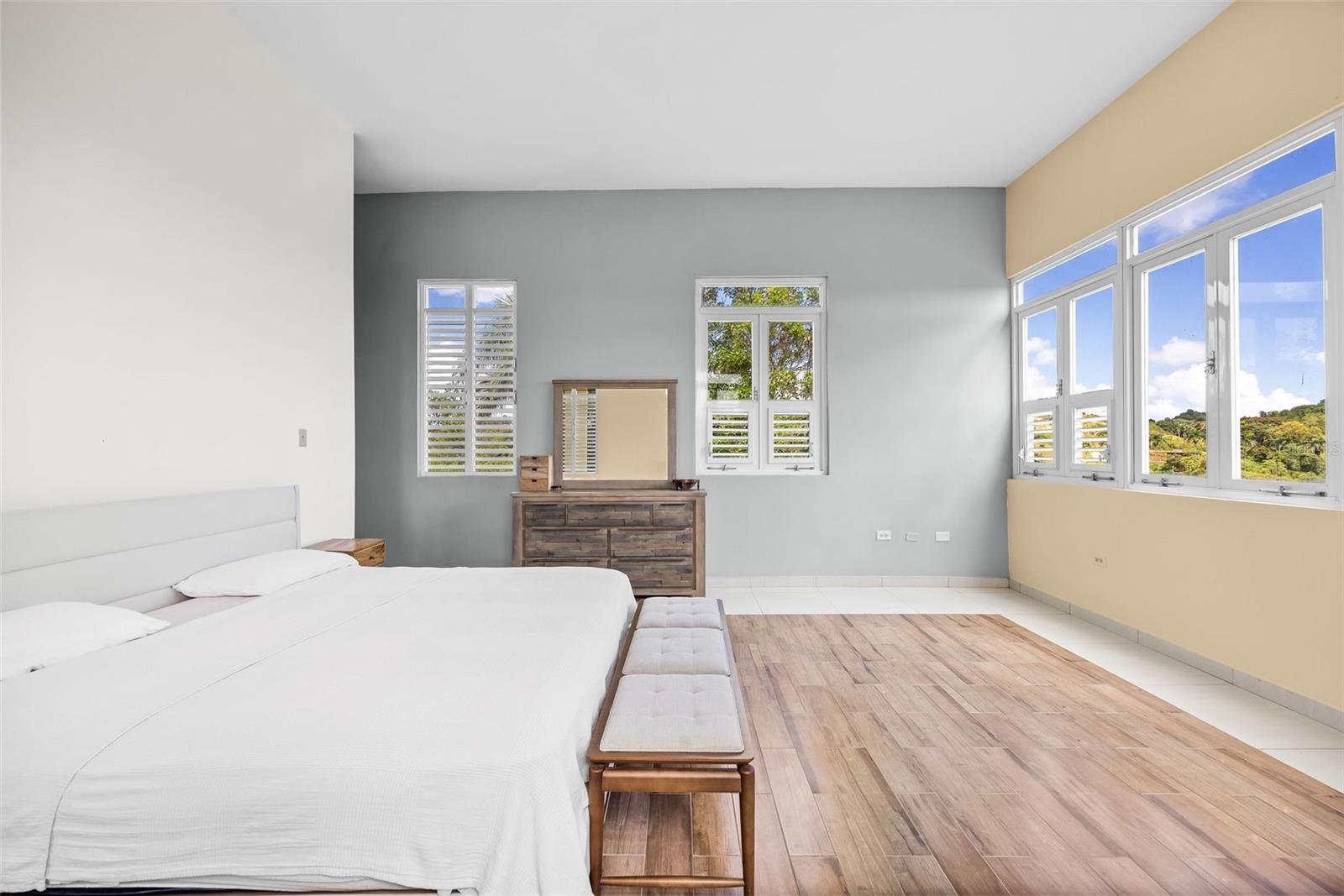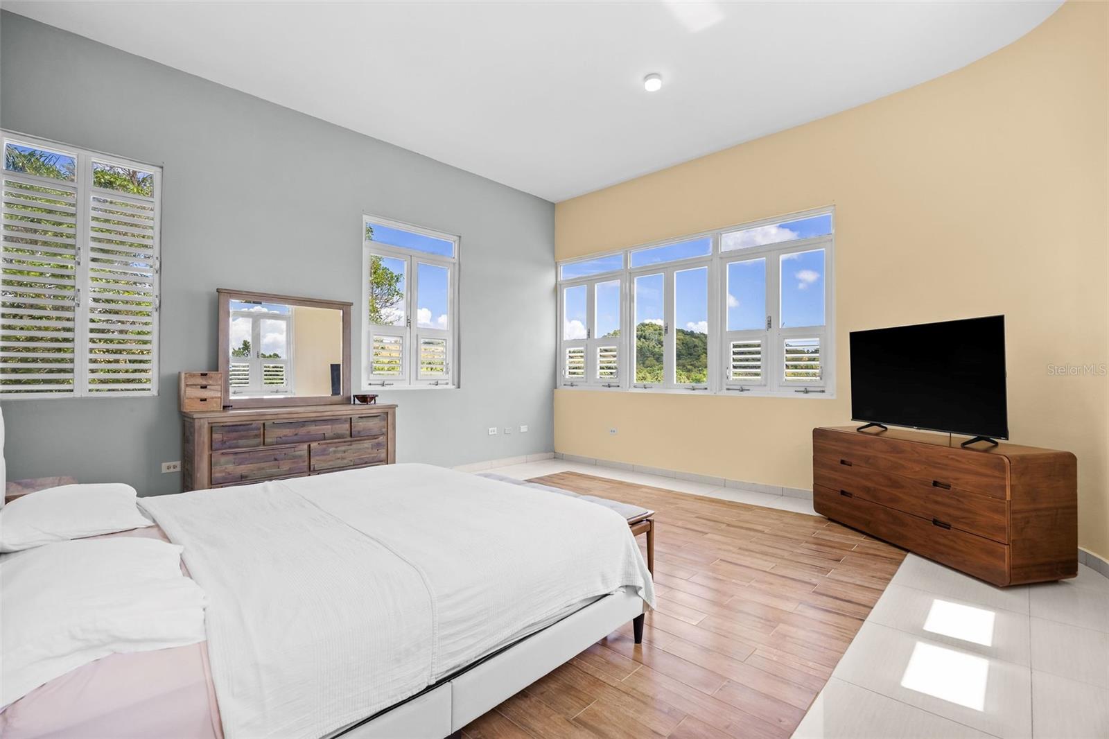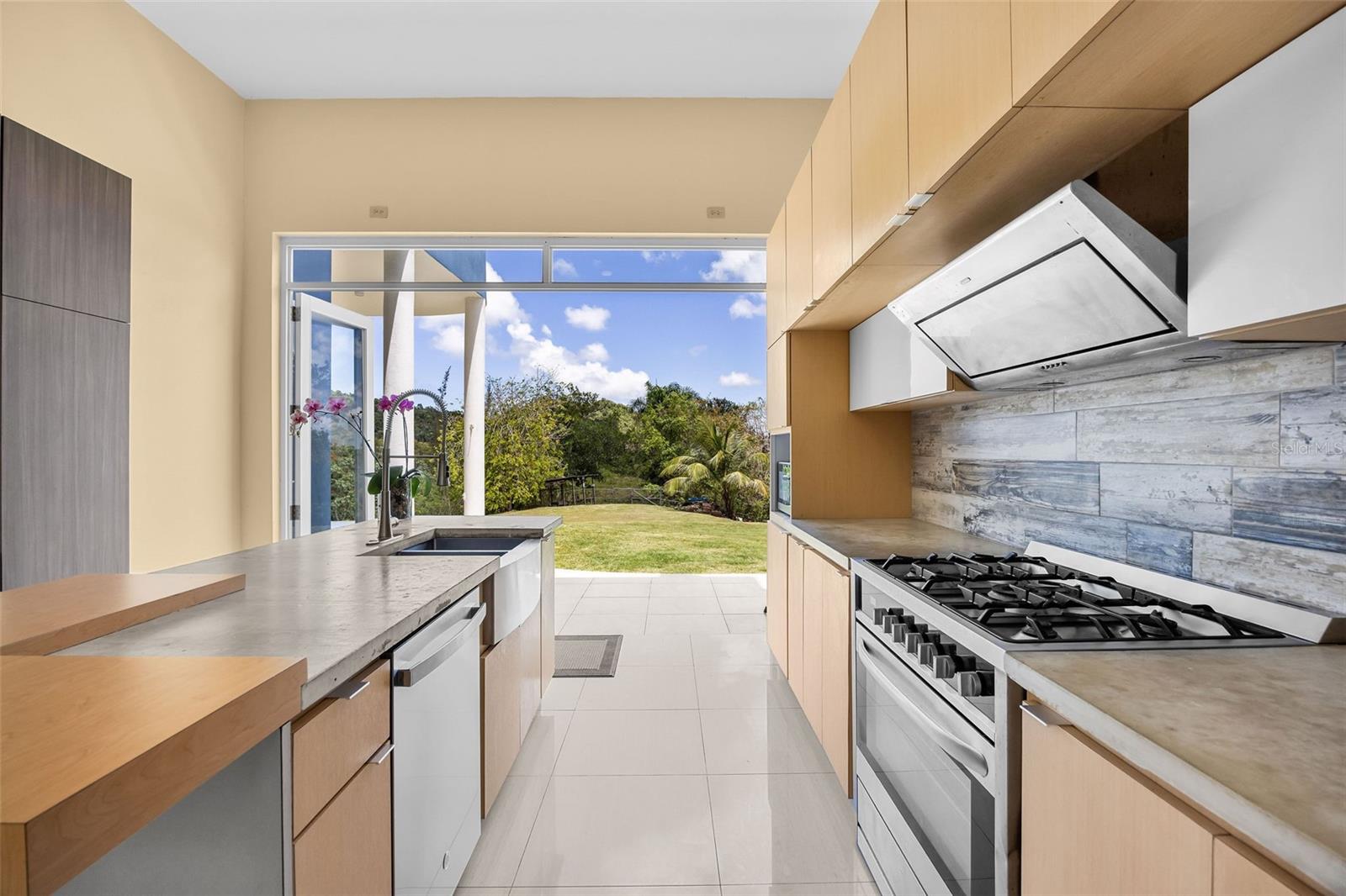 Discover a unique blend of modern design, sustainability, and privacy in this stunning 2015 residence set on 1.47 acres (5,934.89 m²) with breathtaking panoramic mountain views. Boasting over 3,200 square feet of living space, this home features 4 bedrooms and 3 full bathrooms, designed to maximize comfort, natural light, and energy efficiency. From the moment you enter, you’re welcomed by impressive 30-foot ceilings and an open-concept layout that seamlessly connects indoor and outdoor living. The home’s eco-conscious architecture incorporates folding doors, strategically placed high-set windows for heat dissipation, and cross-ventilation—resulting in remarkably low energy consumption, with an average electric bill of approximately $90/month. The property offers two spacious living/family rooms, along with a versatile office or indoor gym space, ideal for today’s flexible lifestyle. The main suite is a private retreat featuring his and hers walk-in closets, while the convenience of a laundry room on the same level as the bedrooms enhances everyday functionality. Step outside and enjoy your own private oasis, complete with a variety of fruit trees including plantain, banana, mango, breadfruit, and coconut, all set against a serene natural backdrop. Additional features includes: a smart home–ready infrastructure with pre-installed cable routing, whole-house surge protection, propane hot water backup, an 800-gallon cistern with demand-driven backup pump, and a solar-powered automatic gate with battery backup. The home is being sold fully equipped with all kitchen and laundry appliances included, along with recent upgrades such as new light fixtures, dishwasher, and refrigerator, making it truly move-in ready. A rare opportunity to own a thoughtfully designed, energy-efficient home that offers space, privacy, and a connection to nature—without sacrificing modern conveniences.