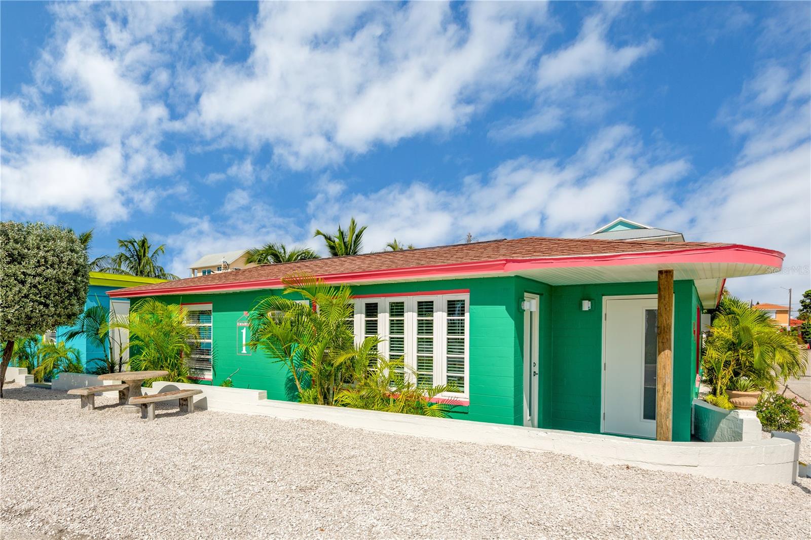 This brightly colored duplex named Cabana 1 & 2 offers two one-bedroom, one-bathroom units. The exterior features Googie style architecture and the interior is decorated in a Googie decor with space age touches. Directly across the street is Sunset Beach. From this duplex you can enjoy beach views and Gulf breezes. Cabana 1 can comfortably sleep 5 and Cabana 2 can sleep 4. New water heaters, new kitchen cabinets and new kitchen appliances make this duplex maintenance free. Delicious food and tiki bars are very nearby. Guests will love the few steps to the sand and multitude of entertainment options close by like dolphin tours, pirate ship tour, sunset sailing. Guests will also love the close proximity to John's Pass Village & Boardwalk, Pinellas County's #1 tourist attraction- it's only an 8 minute drive or short trolley ride away. Guests will rave over the 100+ merchants with unique retail shops, restaurants, shelling and fishing tours, boat and jet ski rentals, and parasailing. This duplex can be purchased in tandem with 4 cottages and 1 vacant lot or separately. The Sunset Inn currently manages the vacation rentals and is willing to continue, if needed.