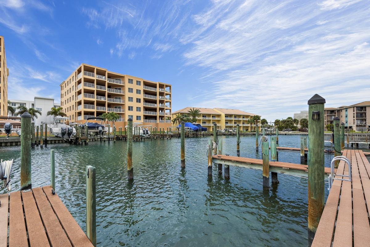 LOCATION-LOCATION-LOCATION-ON THE WATER WITH BOAT DOCK SLIP - walk 2 blocks to beach, walk to restaurants, bars, shopping and grocery stores. 2 story boutique condominium in 10-Unit building. The new Florida Condo Safety Law going into effect on Jan 1, 2025 does not apply to this building. The new law applies to all condo buildings 3 stories and higher and requires full structural inspections and all repairs completed within 1 year. Additionally, all reserve funds must be fully funded as well. As such, 2 story building units are in HIGH DEMAND. Condo is fully furnished turn-key and ready to rent or move in, includes all amenities in the unit. Condo is located on a navigable waterway minutes by water to John’s Pass inlet to the Gulf of Mexico and 2 blocks to Treasure Island beach. Includes permanently assigned boat dock slip #4, reserved parking space and lockable storage space. Condo common areas include heated pool, bike rack, huge patio with picnic tables on the water, coin-operated laundry room, docks for fishing and boat slips. Watch the dolphins and manatees swim by. Central HVAC cooling / heating system replaced in 2020. The condo is in RM15 zoning which allows for 6 change-overs (7 guests) per rolling 12 months. There are no rental restrictions in the condo by-laws. Very rare to find 650sf of living space on the water, 2 blocks to beach with a dedicated boat slip and heated pool.