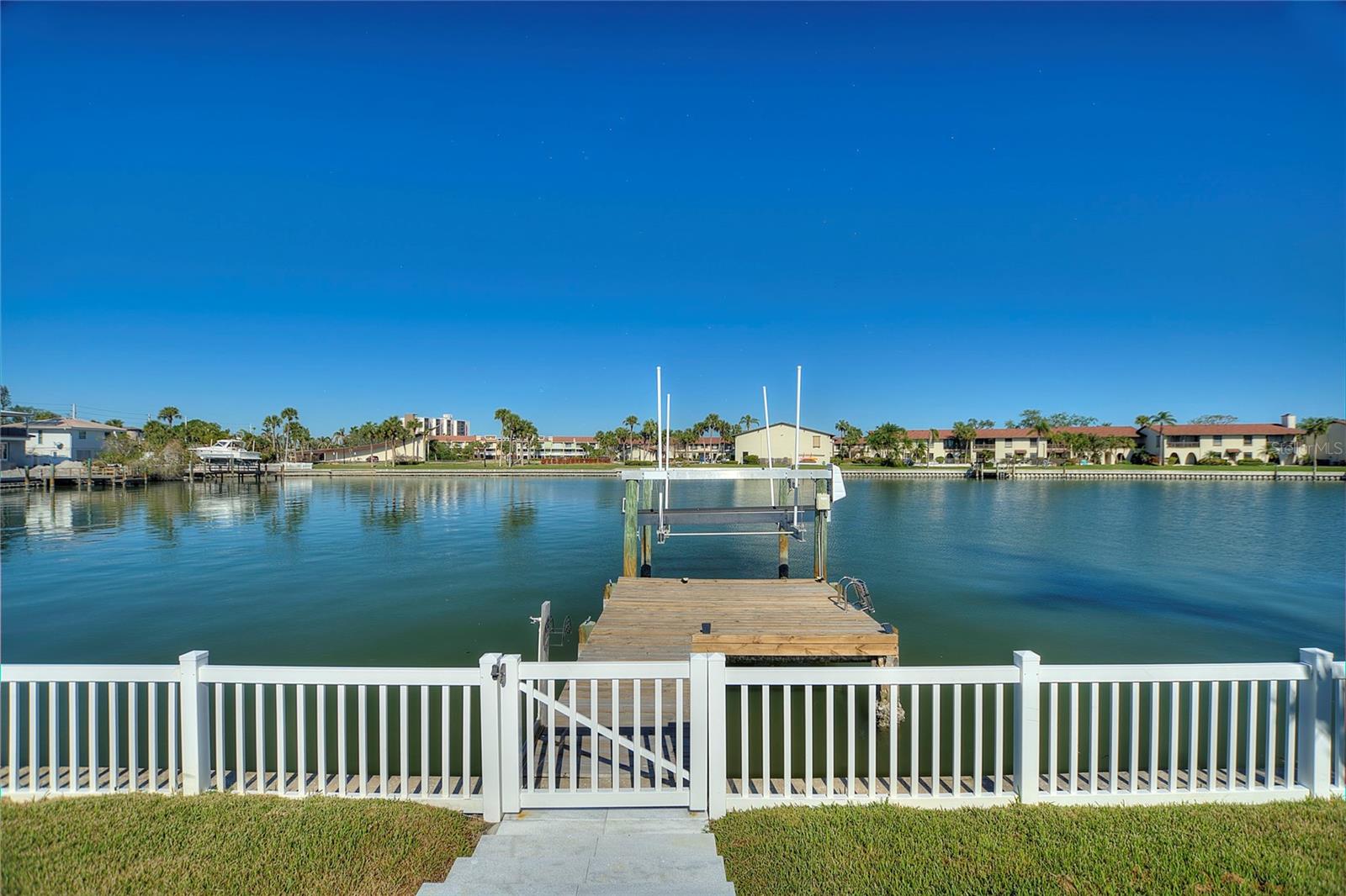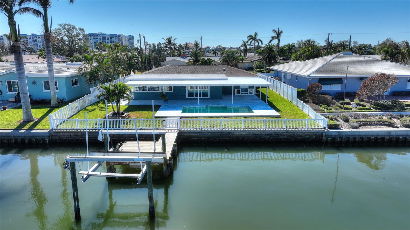 Waterfront Paradise on Treasure Island—don’t miss this incredible opportunity to own a highly desirable waterfront property. Situated on a generous 75’x130’ lot, this 3-bedroom, 2-bathroom home offers the ideal setting for coastal living. With 75 feet of direct deep-water access, it’s a boater’s dream, featuring a resurfaced dock with newer posts, water and electricity connections, and a 10,000-lb boat lift. The stunning saltwater pool, built in 2021, showcases exquisite glass tiles, multi-colored lighting, and a cool-to-the-touch travertine deck—perfect for outdoor relaxation and entertaining. Before Hurricane Helene, the home underwent significant upgrades, including a remodeled kitchen with European soft-close cabinetry, quartz waterfall countertops, and updated fixtures. Additional enhancements include impact windows and doors, a new HVAC system, upgraded electrical, and a tankless water heater. While the home is being sold AS IS due to hurricane impacts, all affected areas have been remediated, and the HVAC system has been inspected. This property offers a unique chance to design and build your dream waterfront home or explore renovation possibilities in this sought-after location. Nestled on Paradise Island, the home is conveniently close to restaurants, shops, and beautiful beaches, offering the ultimate in waterfront living. Don’t miss the opportunity to own your slice of Treasure Island paradise