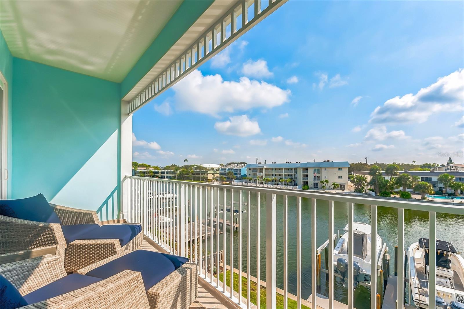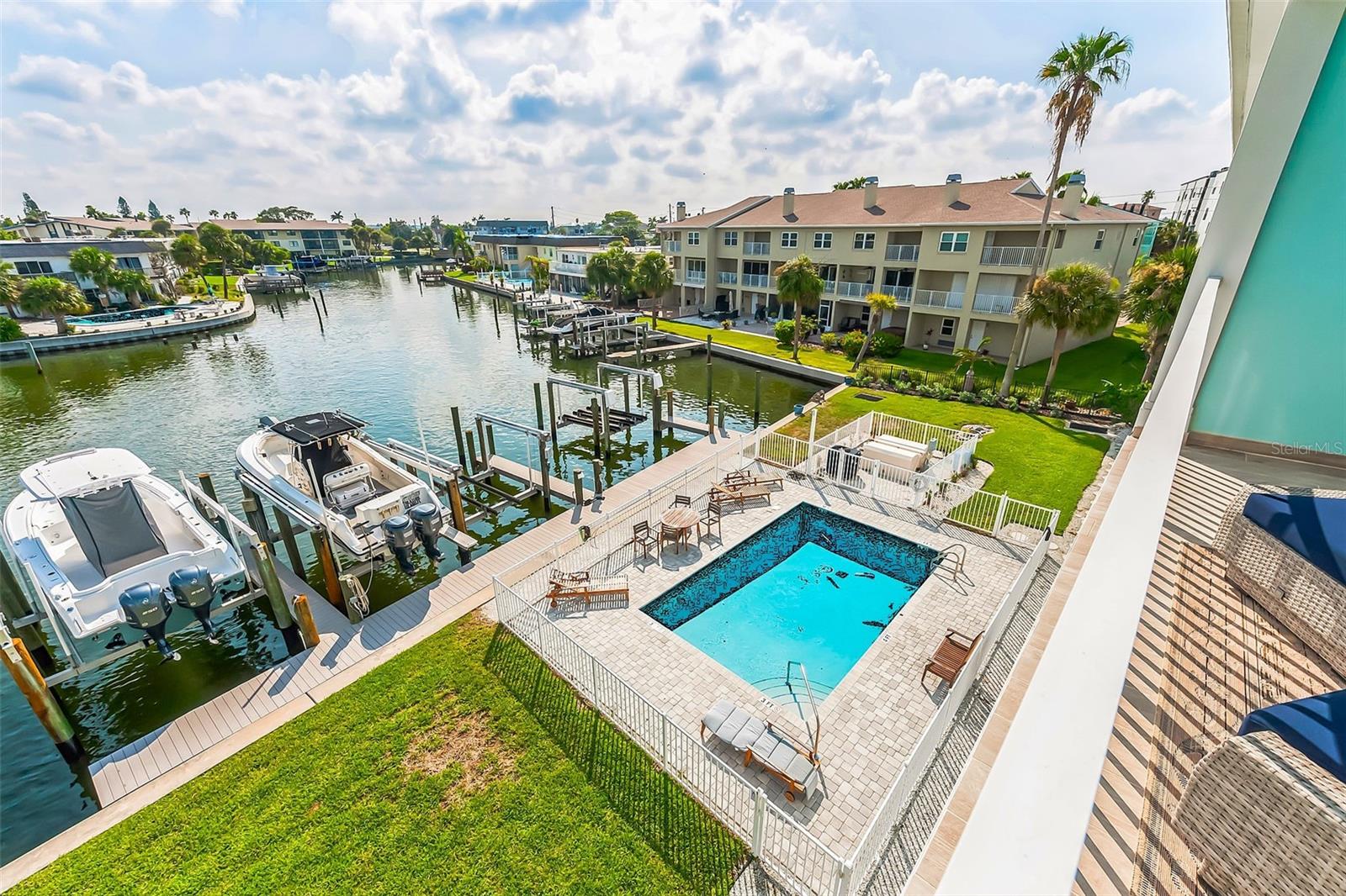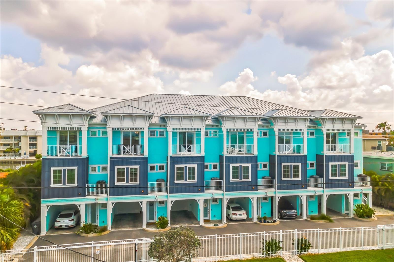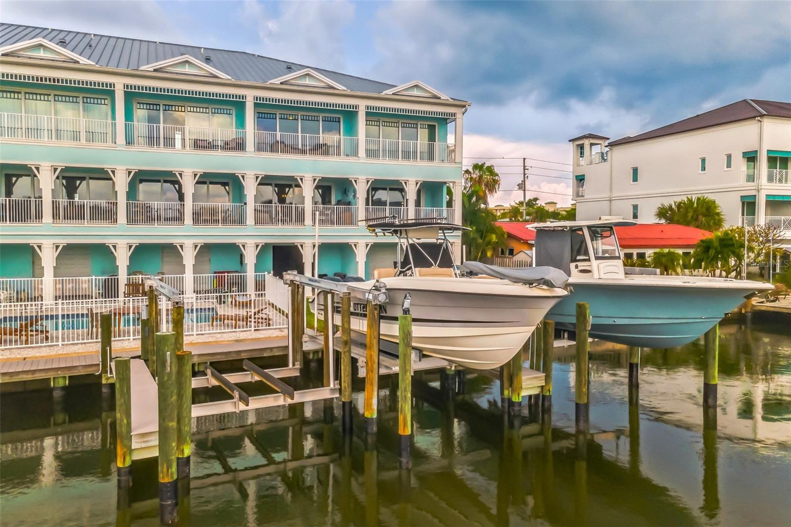 Welcome to your Key West style townhome with views of the intercoastal waterways and the Gulf from every window. Your private elevator leads to rooms where naural light abounds, accentuated by a neutral color palette with vibrant pops of color. The second floor boasts a gourmet kitchen outfitted with floor-to-ceiling cabinets, custom pullout shelves, under-cabinet lighting, lovely, upgraded granite, a beautiful glass-tiled backsplash, and an oversized island with a large walk-in pantry. High-end appliances, including a gas cooktop and built-in double ovens, make this kitchen a chef's dream. Continuing with an open concept, the dining area flows effortlessly to the living room out to the massive balcony overlooking the pool and intracoastal waters. Custom made electric blinds and hurricane-rated sliding doors keep your lanai comfortable. Upgraded porcelain tile floors, designed to mimic wood, seamlessly extend to both the rear and front balconies. The second floor offers a versatile bedroom or office space connected to a full bathroom. On the third floor, the master suite features 10-foot sliding doors with custom electric blinds, offering seamless water views and access to a private, oversized balcony. The luxurious master bath includes designer tile flooring, quartz countertops with dual sinks, two walk-in closets with upgraded organization systems, and a large walkable attic for additional storage. Indulge in the spa-like double shower, complete with dual showerheads, a built-in seat, and a stunning river rock floor. A third bedroom, located on the front side of this floor, offers Gulf views, a private balcony, and an ensuite bath. Conveniently located just outside the master suite is the laundry room, equipped with custom cabinetry and a laundry sink. The ground floor offers an enormous garage with built in cabinets and workshop space. The lower-level carport, garage, and patio are beautifully finished with pavers, and a back garage door provides easy access to the dock and heated pool. The sugary beaches of Treasure Island, fun restaurants, entertainment and stores are just blocks away. The 100’ composite dock has water and electricity. Take advantage of the captain’s walk where you can store your boat on the 16,000lb boat lift with adjustable stop level. John's Pass is just minutes away where you have access to some of the best fishing in the world! Additional features include a Ring Doorbell, professional wiring with repeaters for strong internet coverage, a water softener, and a whole-house filtration system. This home truly captures the essence of Florida living at its finest.