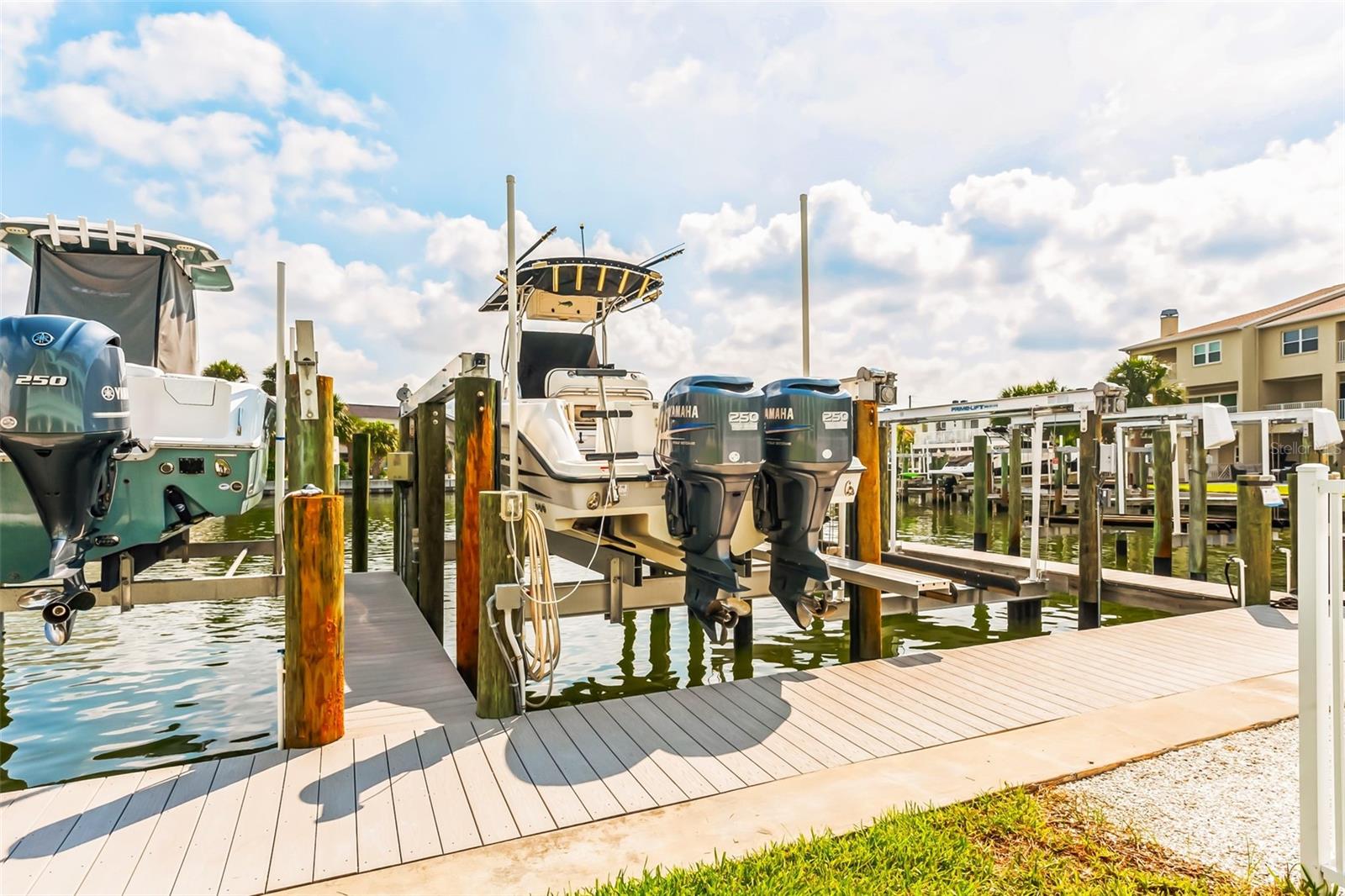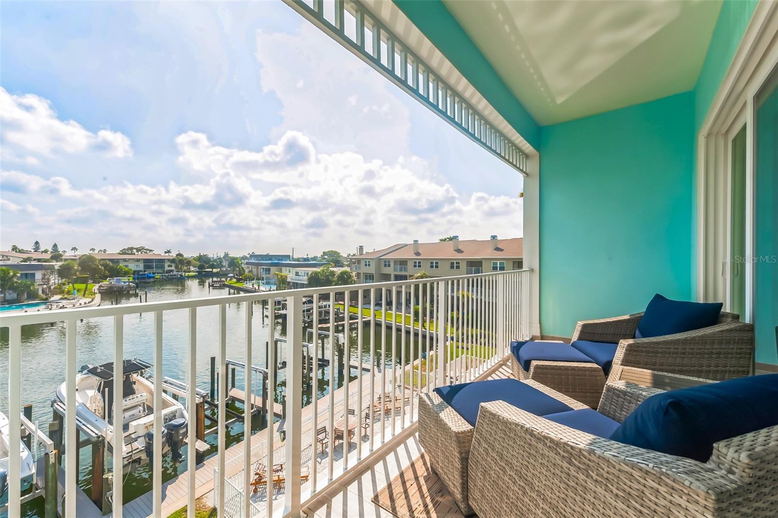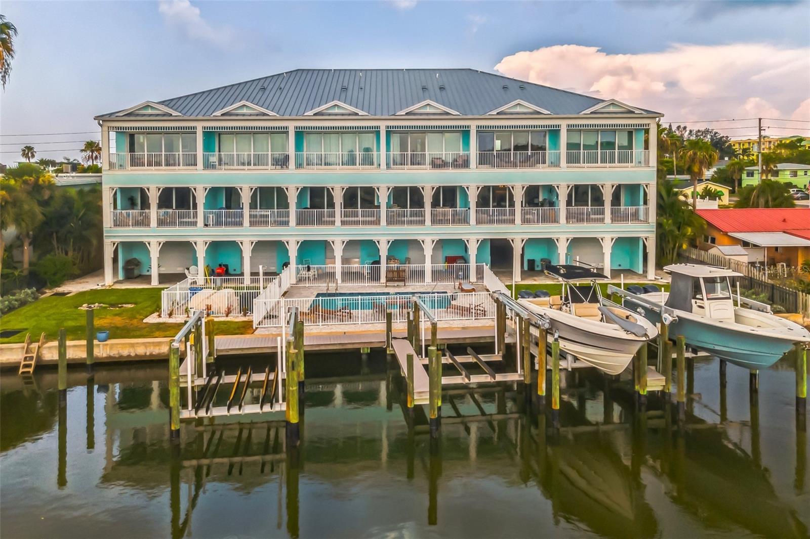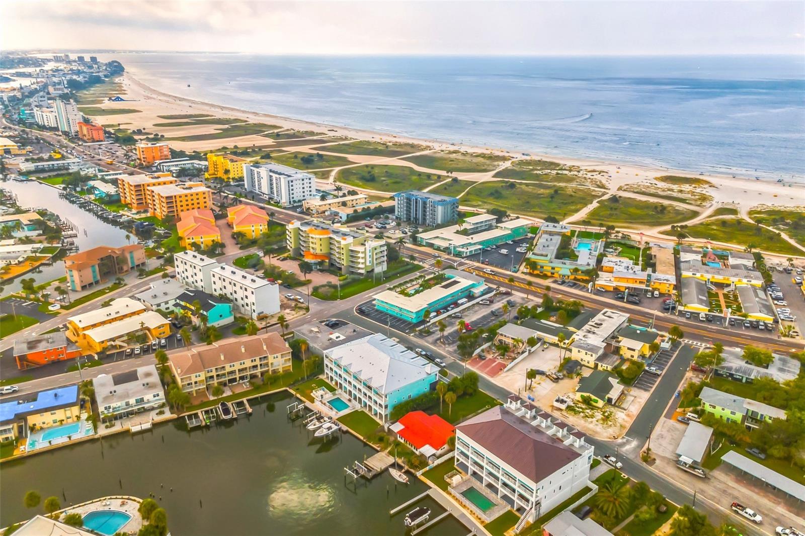Welcome to your Key West style townhome with views of the intercoastal waterways and the Gulf from every window. Your private elevator leads to rooms where naural light abounds, accentuated by a neutral color palette with vibrant pops of color. The second floor boasts a gourmet kitchen outfitted with floor-to-ceiling cabinets, custom pullout shelves, under-cabinet lighting, lovely, upgraded granite, a beautiful glass-tiled backsplash, and an oversized island with a large walk-in pantry. High-end appliances, including a gas cooktop and built-in double ovens, make this kitchen a chef's dream. Continuing with an open concept, the dining area flows effortlessly to the living room out to the massive balcony overlooking the pool and intracoastal waters. Custom made electric blinds and hurricane-rated sliding doors keep your lanai comfortable. Upgraded porcelain tile floors, designed to mimic wood, seamlessly extend to both the rear and front balconies. The second floor offers a versatile bedroom or office space connected to a full bathroom. On the third floor, the master suite features 10-foot sliding doors with custom electric blinds, offering seamless water views and access to a private, oversized balcony. The luxurious master bath includes designer tile flooring, quartz countertops with dual sinks, two walk-in closets with upgraded organization systems, and a large walkable attic for additional storage. Indulge in the spa-like double shower, complete with dual showerheads, a built-in seat, and a stunning river rock floor. A third bedroom, located on the front side of this floor, offers Gulf views, a private balcony, and an ensuite bath. Conveniently located just outside the master suite is the laundry room, equipped with custom cabinetry and a laundry sink. The ground floor offers an enormous garage with built in cabinets and workshop space. The lower-level carport, garage, and patio are beautifully finished with pavers, and a back garage door provides easy access to the dock and heated pool. The sugary beaches of Treasure Island, fun restaurants, entertainment and stores are just blocks away. The 100’ composite dock has water and electricity. Take advantage of the captain’s walk where you can store your boat on the 16,000lb boat lift with adjustable stop level. John's Pass is just minutes away where you have access to some of the best fishing in the world! Additional features include a Ring Doorbell, professional wiring with repeaters for strong internet coverage, a water softener, and a whole-house filtration system. This home truly captures the essence of Florida living at its finest.