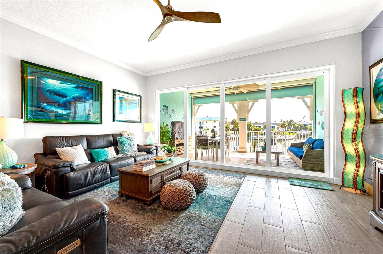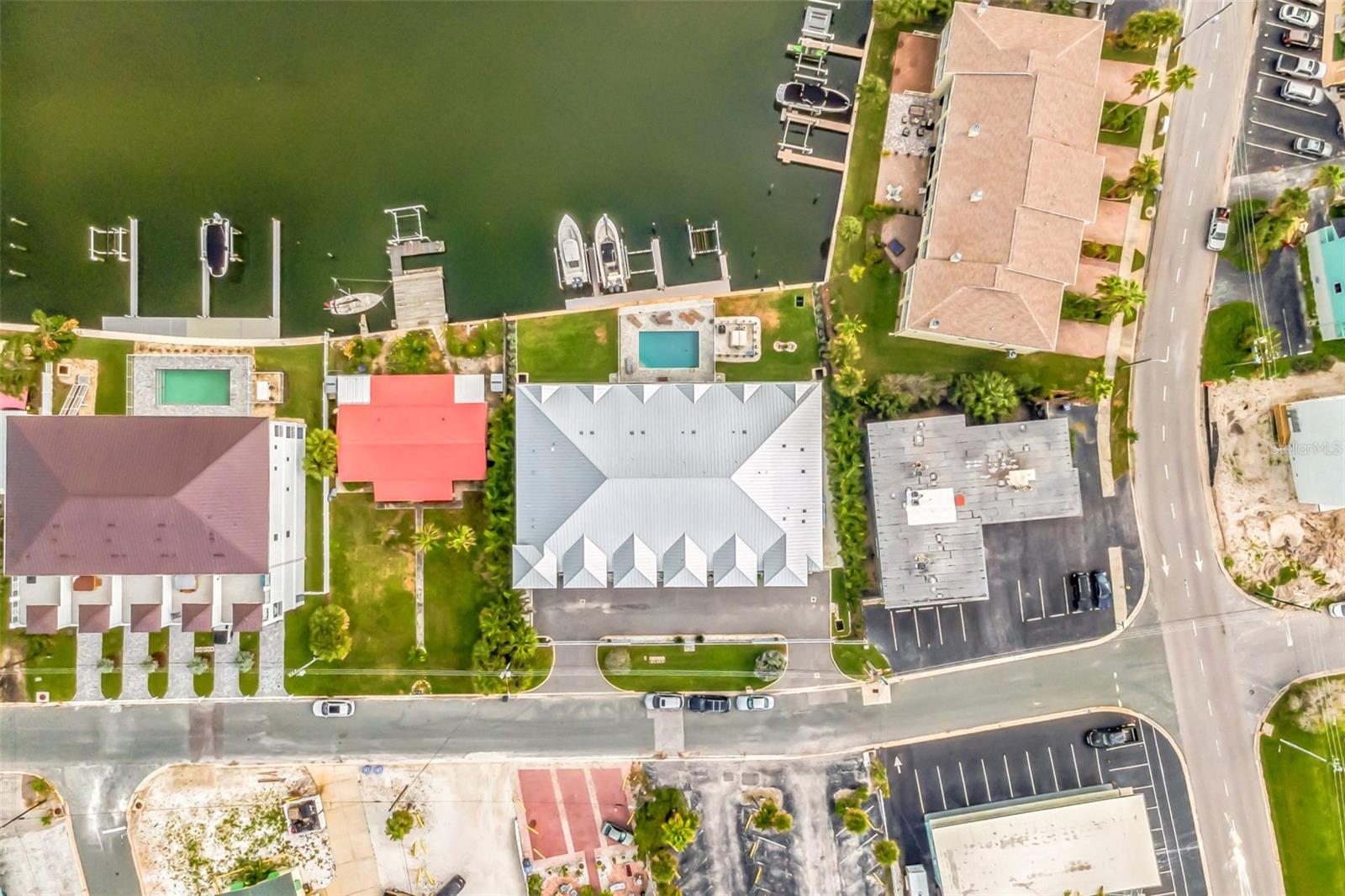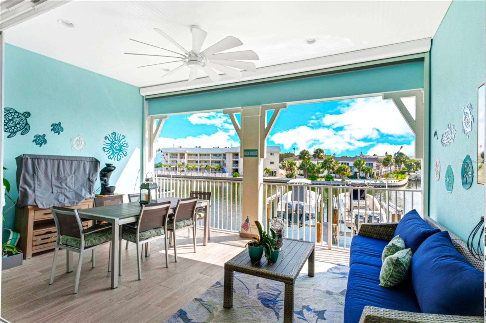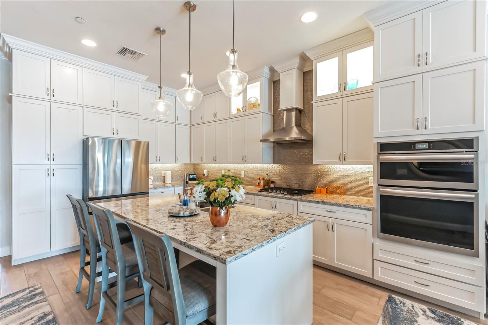 Welcome to your Key West style townhome with views of the intercoastal waterways and the Gulf from every window. Your private elevator leads to rooms where naural light abounds, accentuated by a neutral color palette with vibrant pops of color. The second floor boasts a gourmet kitchen outfitted with floor-to-ceiling cabinets, custom pullout shelves, under-cabinet lighting, lovely, upgraded granite, a beautiful glass-tiled backsplash, and an oversized island with a large walk-in pantry. High-end appliances, including a gas cooktop and built-in double ovens, make this kitchen a chef's dream. Continuing with an open concept, the dining area flows effortlessly to the living room out to the massive balcony overlooking the pool and intracoastal waters. Custom made electric blinds and hurricane-rated sliding doors keep your lanai comfortable. Upgraded porcelain tile floors, designed to mimic wood, seamlessly extend to both the rear and front balconies. The second floor offers a versatile bedroom or office space connected to a full bathroom. On the third floor, the master suite features 10-foot sliding doors with custom electric blinds, offering seamless water views and access to a private, oversized balcony. The luxurious master bath includes designer tile flooring, quartz countertops with dual sinks, two walk-in closets with upgraded organization systems, and a large walkable attic for additional storage. Indulge in the spa-like double shower, complete with dual showerheads, a built-in seat, and a stunning river rock floor. A third bedroom, located on the front side of this floor, offers Gulf views, a private balcony, and an ensuite bath. Conveniently located just outside the master suite is the laundry room, equipped with custom cabinetry and a laundry sink. The ground floor offers an enormous garage with built in cabinets and workshop space. The lower-level carport, garage, and patio are beautifully finished with pavers, and a back garage door provides easy access to the dock and heated pool. The sugary beaches of Treasure Island, fun restaurants, entertainment and stores are just blocks away. The 100’ composite dock has water and electricity. Take advantage of the captain’s walk where you can store your boat on the 16,000lb boat lift with adjustable stop level. John's Pass is just minutes away where you have access to some of the best fishing in the world! Additional features include a Ring Doorbell, professional wiring with repeaters for strong internet coverage, a water softener, and a whole-house filtration system. This home truly captures the essence of Florida living at its finest.