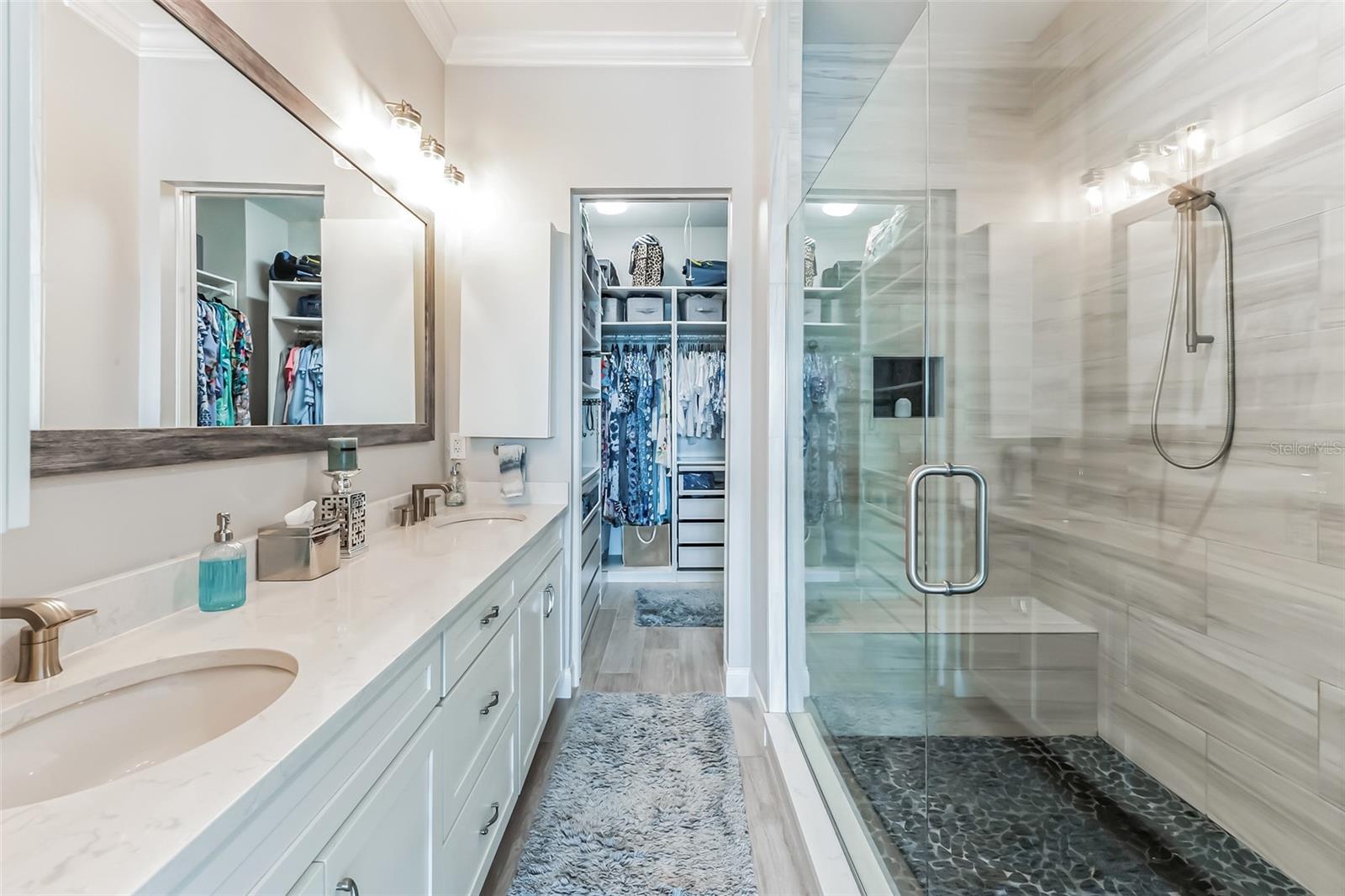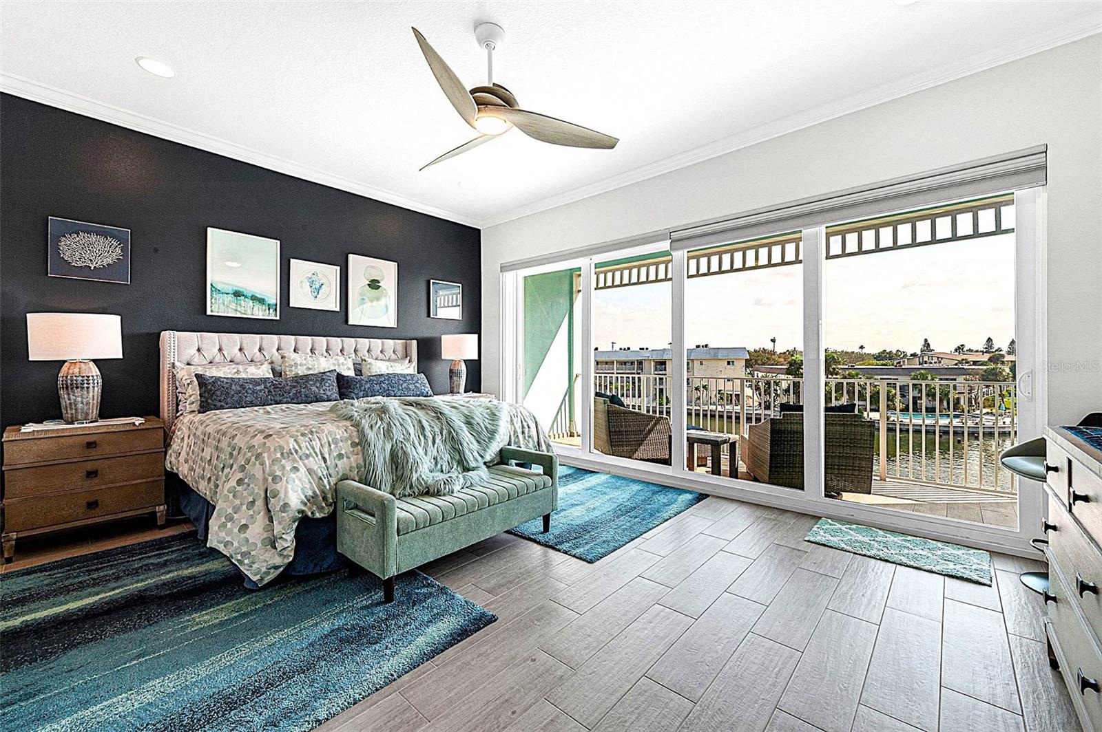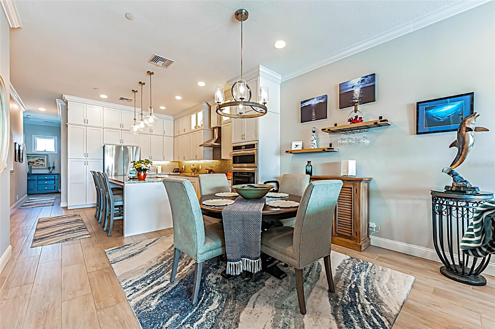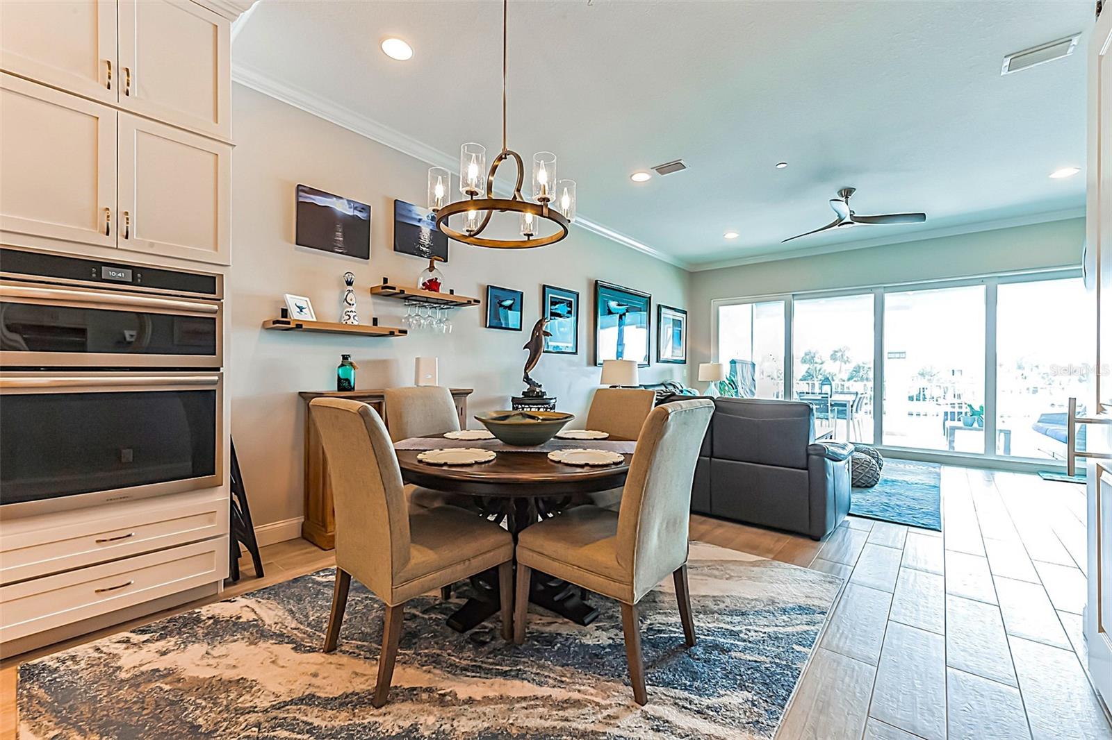 Welcome to your Key West style townhome with views of the intercoastal waterways and the Gulf from every window. Your private elevator leads to rooms where naural light abounds, accentuated by a neutral color palette with vibrant pops of color. The second floor boasts a gourmet kitchen outfitted with floor-to-ceiling cabinets, custom pullout shelves, under-cabinet lighting, lovely, upgraded granite, a beautiful glass-tiled backsplash, and an oversized island with a large walk-in pantry. High-end appliances, including a gas cooktop and built-in double ovens, make this kitchen a chef's dream. Continuing with an open concept, the dining area flows effortlessly to the living room out to the massive balcony overlooking the pool and intracoastal waters. Custom made electric blinds and hurricane-rated sliding doors keep your lanai comfortable. Upgraded porcelain tile floors, designed to mimic wood, seamlessly extend to both the rear and front balconies. The second floor offers a versatile bedroom or office space connected to a full bathroom. On the third floor, the master suite features 10-foot sliding doors with custom electric blinds, offering seamless water views and access to a private, oversized balcony. The luxurious master bath includes designer tile flooring, quartz countertops with dual sinks, two walk-in closets with upgraded organization systems, and a large walkable attic for additional storage. Indulge in the spa-like double shower, complete with dual showerheads, a built-in seat, and a stunning river rock floor. A third bedroom, located on the front side of this floor, offers Gulf views, a private balcony, and an ensuite bath. Conveniently located just outside the master suite is the laundry room, equipped with custom cabinetry and a laundry sink. The ground floor offers an enormous garage with built in cabinets and workshop space. The lower-level carport, garage, and patio are beautifully finished with pavers, and a back garage door provides easy access to the dock and heated pool. The sugary beaches of Treasure Island, fun restaurants, entertainment and stores are just blocks away. The 100’ composite dock has water and electricity. Take advantage of the captain’s walk where you can store your boat on the 16,000lb boat lift with adjustable stop level. John's Pass is just minutes away where you have access to some of the best fishing in the world! Additional features include a Ring Doorbell, professional wiring with repeaters for strong internet coverage, a water softener, and a whole-house filtration system. This home truly captures the essence of Florida living at its finest.