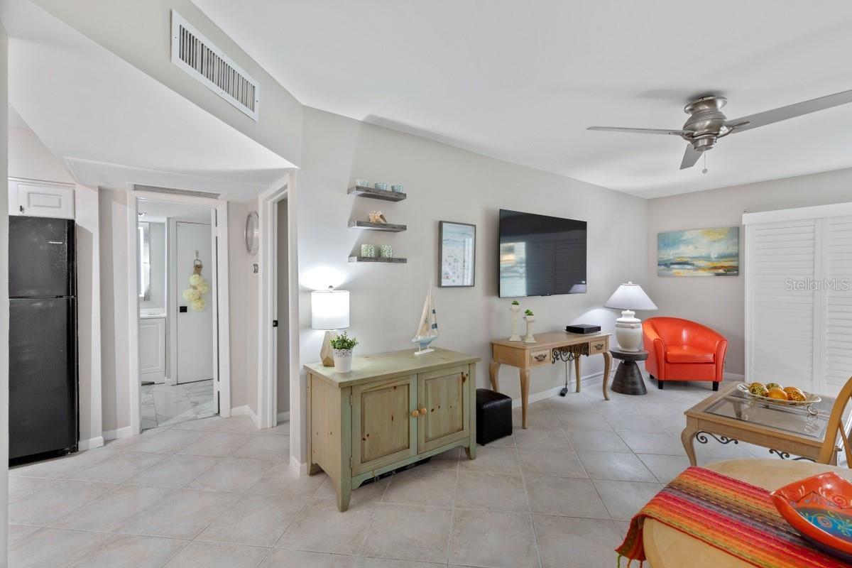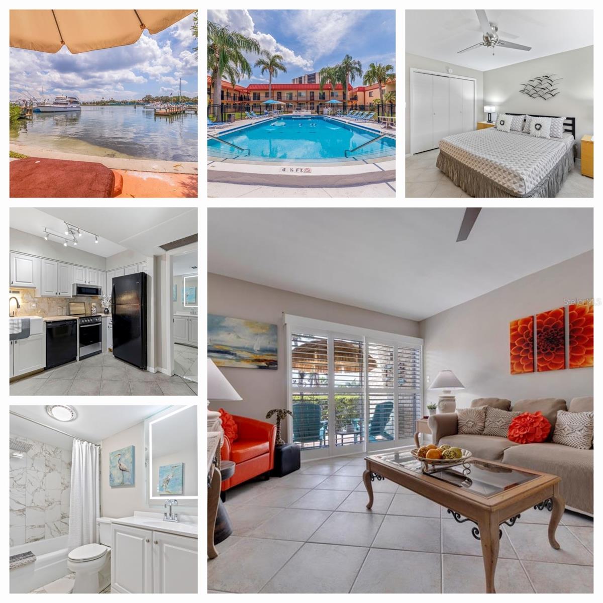 Recently renovated.This 1 bedroom /1 bathroom is a real One of a kind Paradise.Free designated parking by the unit. The Lobby offers an additional private and secure entrance to the apartment , access to the condo can also be obtained via patio doors. Remodeled interior , new water heater , new vanity with back lit mirror and bathtub rain shower, new whirlpool high tech microwave ,dishwasher, refrigerator and stove. Large farmhouse kitchen sink with butcher block counter tops. Ceramic tile trough out .The plantation shutters give the unit a stylish look. Beautifully decorated. Situated on waterways of Paradise Island by Treasure Island bridge with walking distance to Treasure Island beach . The complex has a fishing pier and open dock with mooring on the waterways, BBQ designated area and laundry facility large heated pool is in the center of the community with sun loungers and umbrellas. The Condo fees include Water, cable and internet. Public tennis courts and golf club within short distance "The Club" next to the community is open to the public with bar , restaurant and water sports/boating.****NO VIRTUAL STAGING HERE,just real decorating skills****