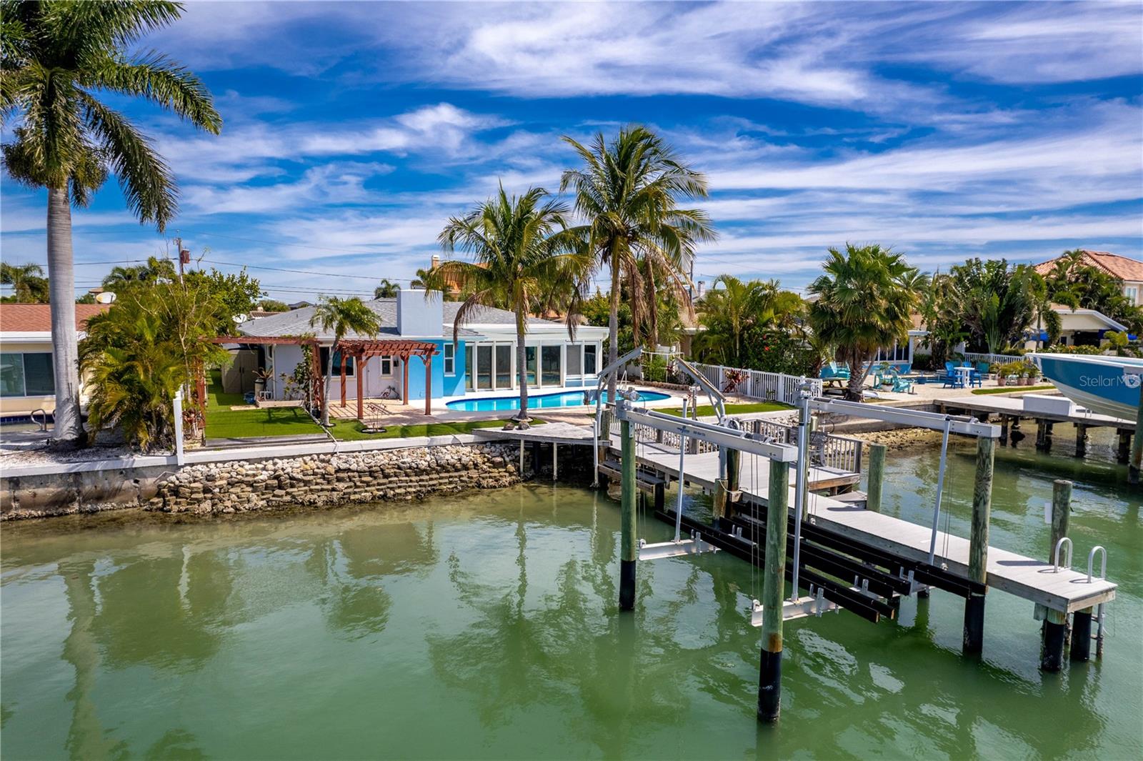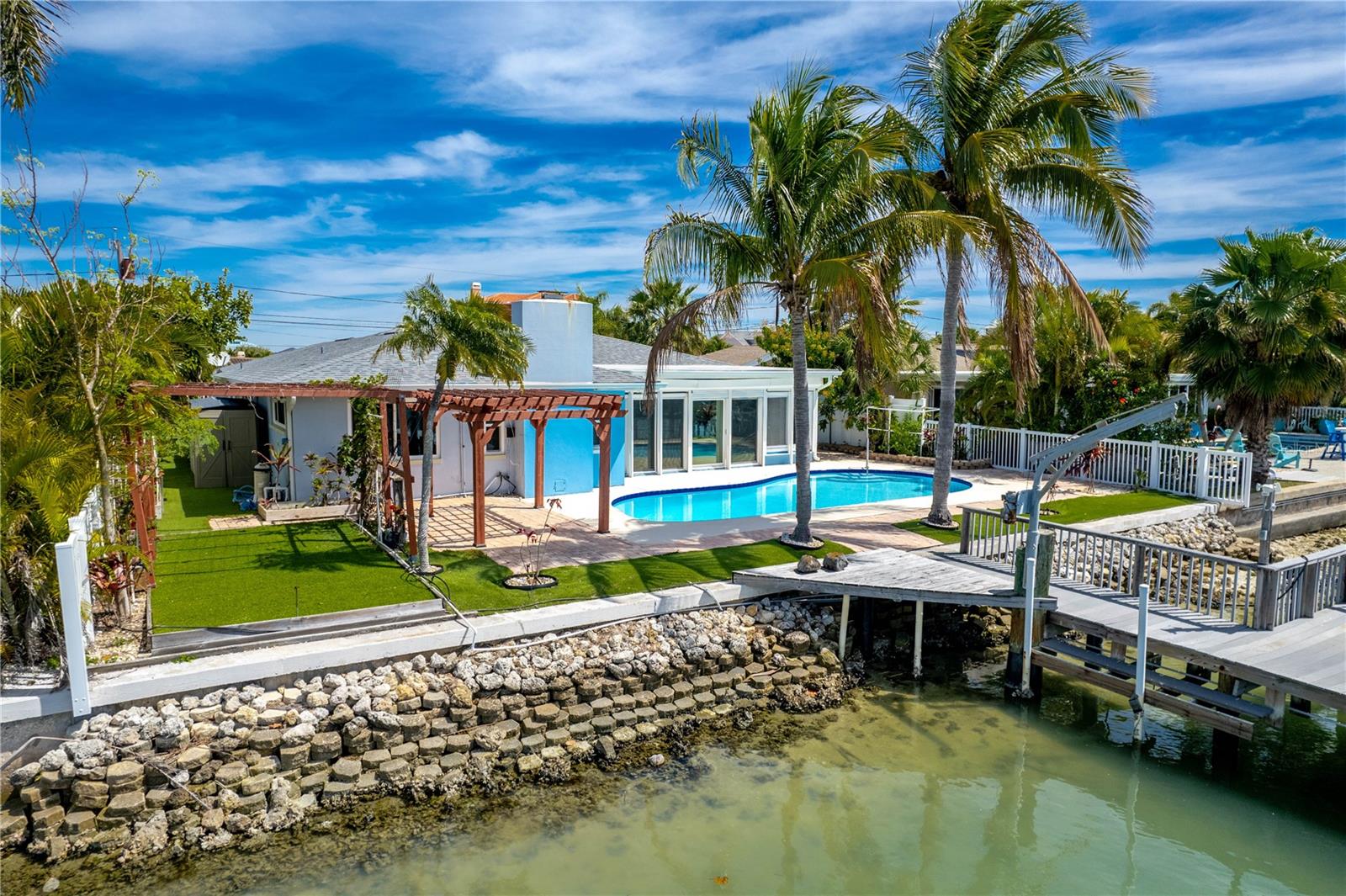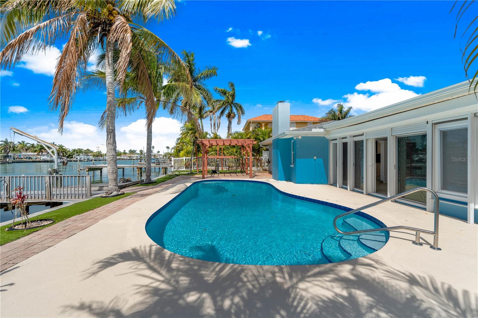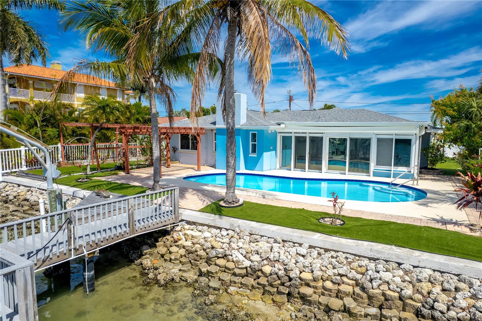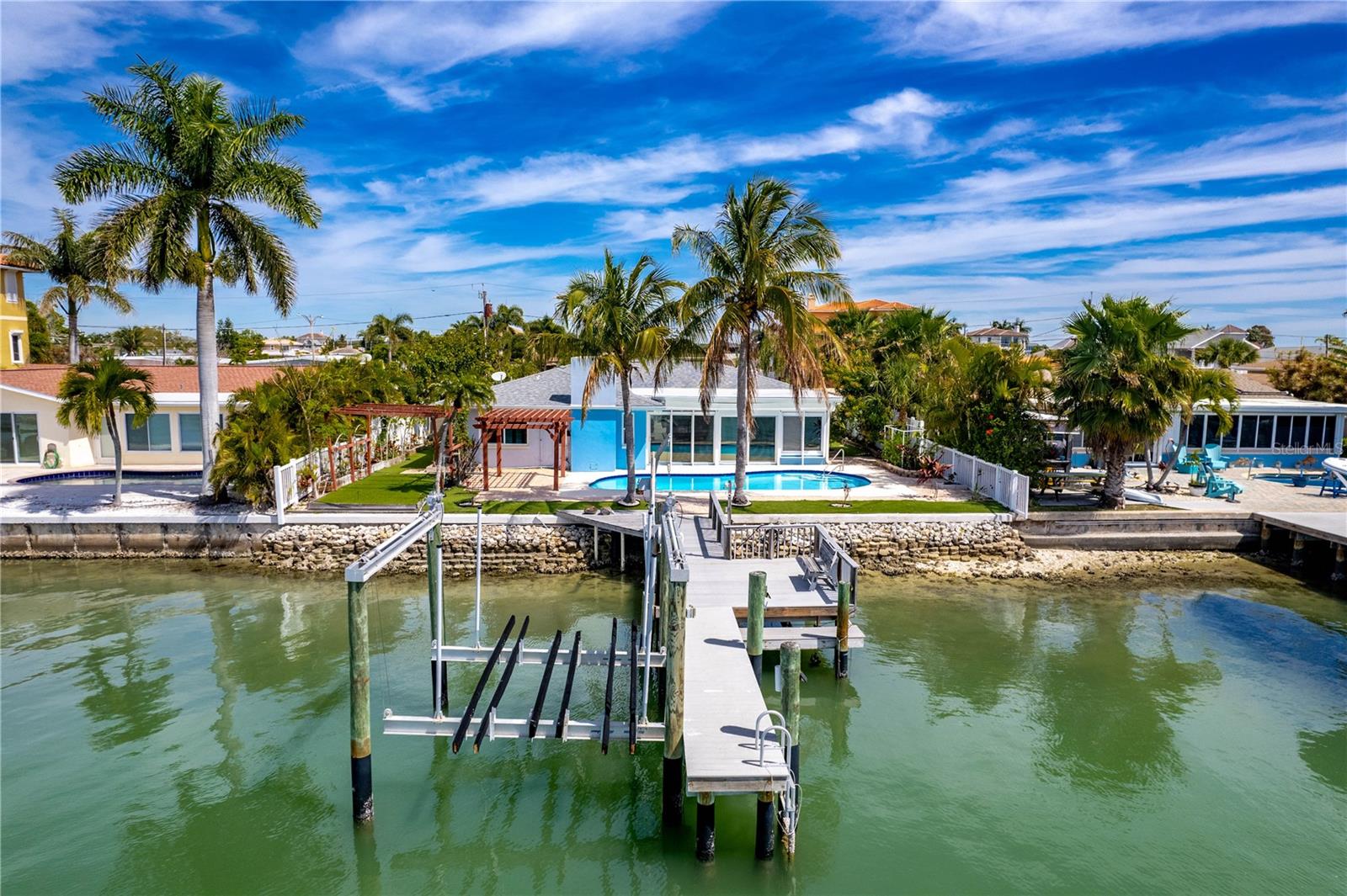 Welcome to paradise in Treasure Island, Florida! This stunning 4-bedroom, 3-bathroom pool home with an office boasts breathtaking waterfront views. Situated on an extra-large canal, this home offers wide water views and direct access to the Gulf of Mexico. As you enter, you're greeted by an open and spacious living area with wall-to-wall tile and elegant finishes throughout. The gourmet kitchen features upgraded appliances, granite countertops, and a breakfast bar, perfect for entertaining guests or enjoying a quiet meal. From the kitchen step into your own private oasis, where the beauty of the outdoors seamlessly merges with the comfort of indoor living. This fully enclosed glass Florida room offers an unparalleled experience, boasting unobstructed water views. As the sun begins its descent, the room is bathed in a warm, golden glow, casting a serene ambiance that is perfect for relaxation or entertainment. The floor-to-ceiling windows provide an uninterrupted vista of your water view, allowing you to enjoy breathtaking sunsets from the comfort of your home. The room is spacious and bright, with natural light flooding in from every angle. Whether you're enjoying a morning coffee or hosting a dinner party, this room provides the perfect backdrop for any occasion. With it’s stunning water views and unbeatable sunsets, this fully enclosed glass Florida room is more than just a space – it's a lifestyle. The master suite is a true retreat, offering a serene view of the water, a large walk-in closet, with a soaking tub and separate shower. The expansive pool deck and Pergola overlooks both the sparkling pool and water view. The well-appointed dock features a boat lift and jet ski lift, providing the perfect setting for outdoor gatherings or simply relaxing and enjoying the picturesque sunsets. This home also features a 2-car garage, hurricane-rated windows and doors, hurricane shutters, roof tie-downs and upgraded electrical panel to meet current code requirements, artificial grass for easy maintenance, an energy-efficient pool pump, pool and pool deck resurfaced (2023), new AC, and a new hot water heater (2023). Located in the heart of Treasure Island, this home is just minutes away from white sandy beaches, top-rated restaurants, shopping, and entertainment. Don't miss your chance to own this piece of paradise!